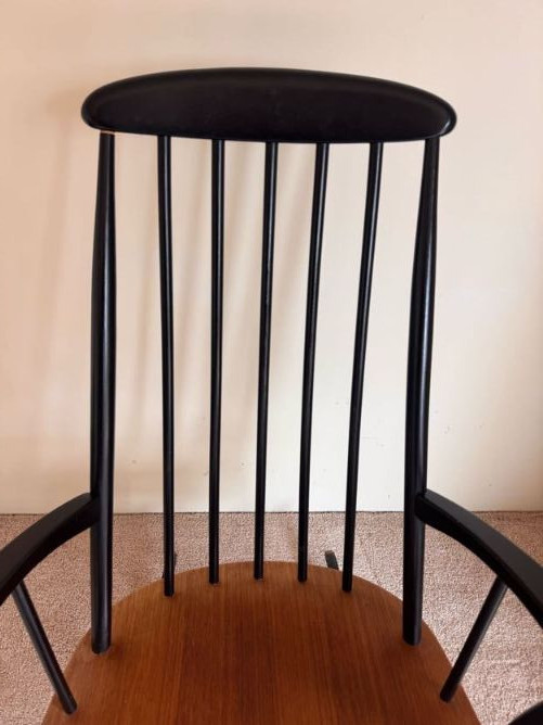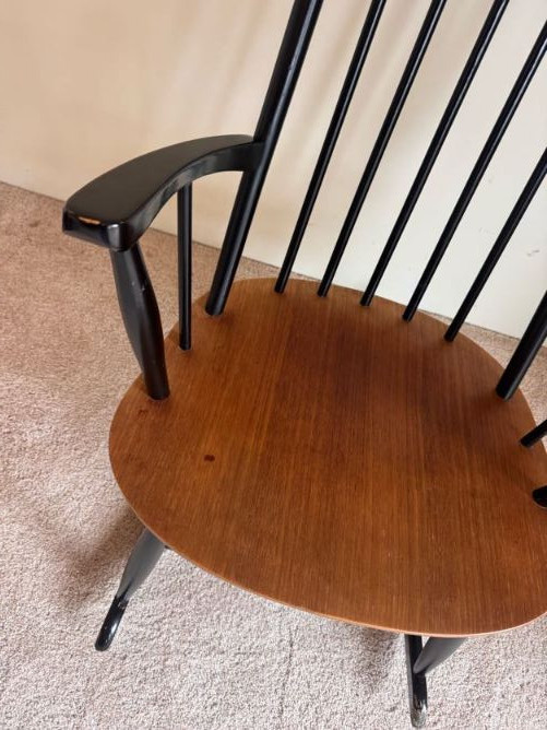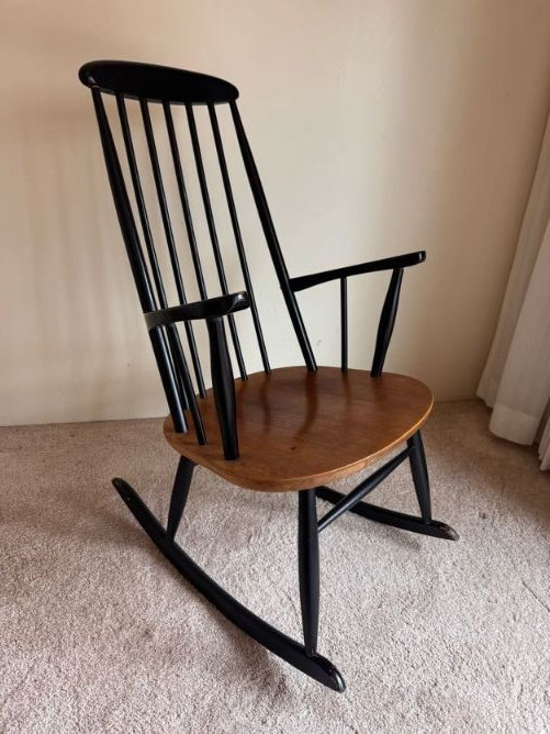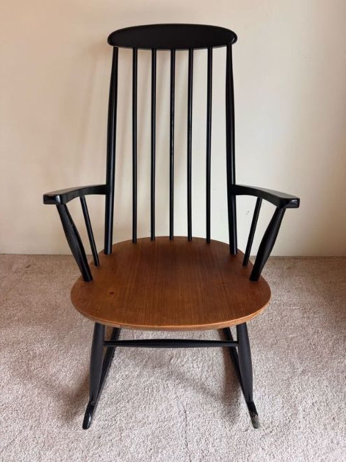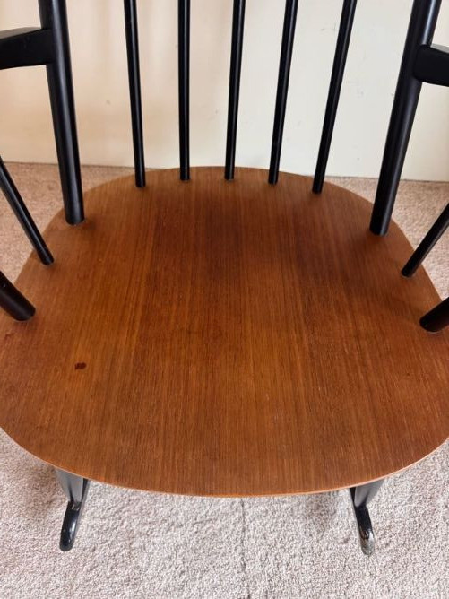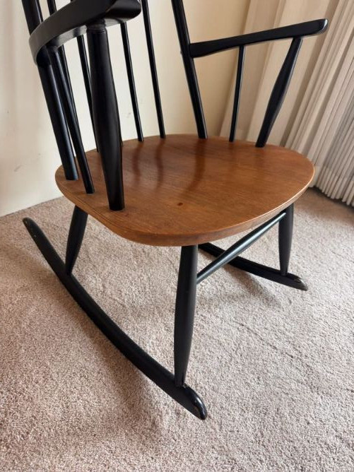 Wood & Black Spindle Back Rocking Chair w/ Armrests.