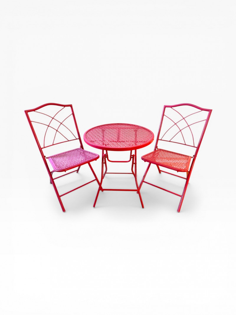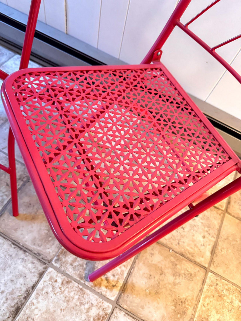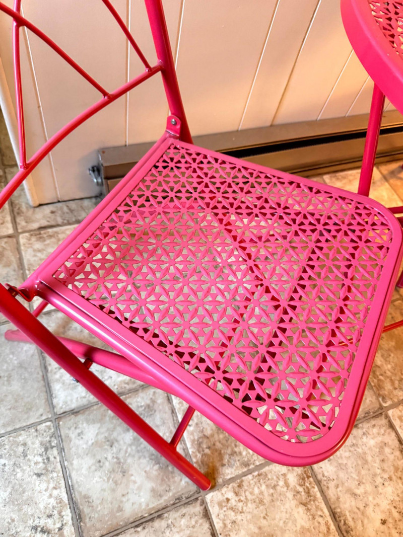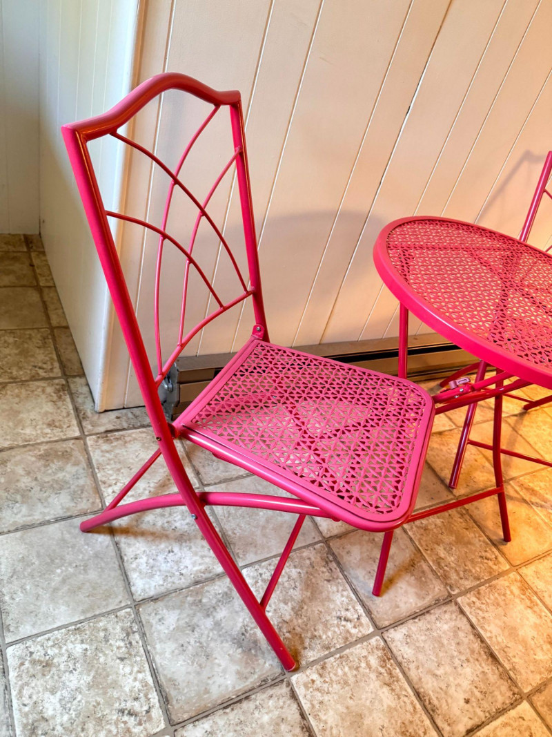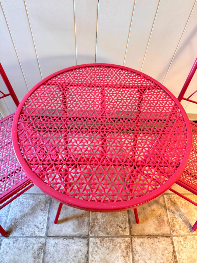 Vintage Pink Folding Patio Set - Table & 2 Chairs Metal Bistro.