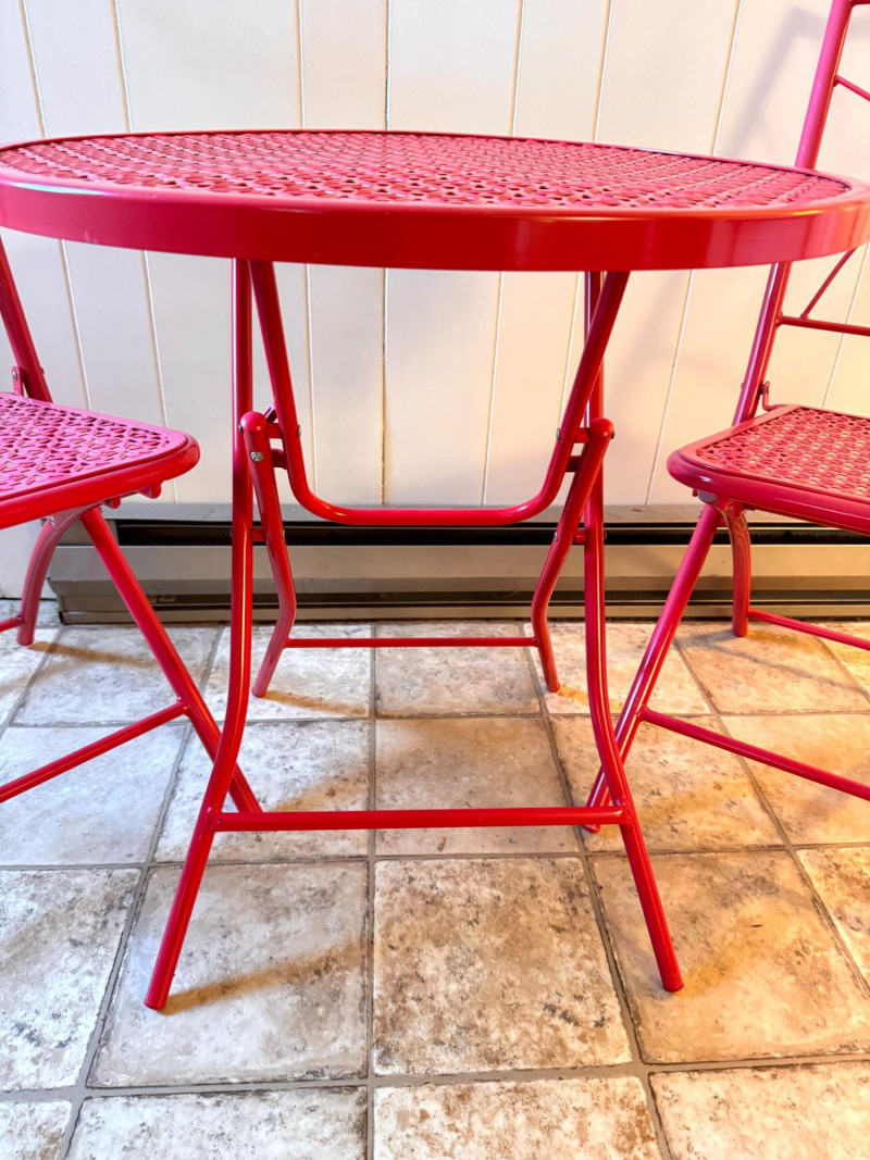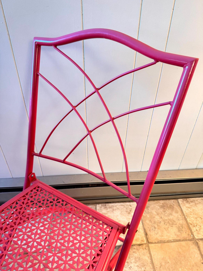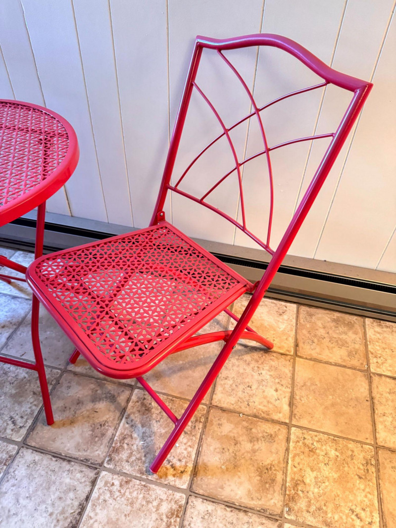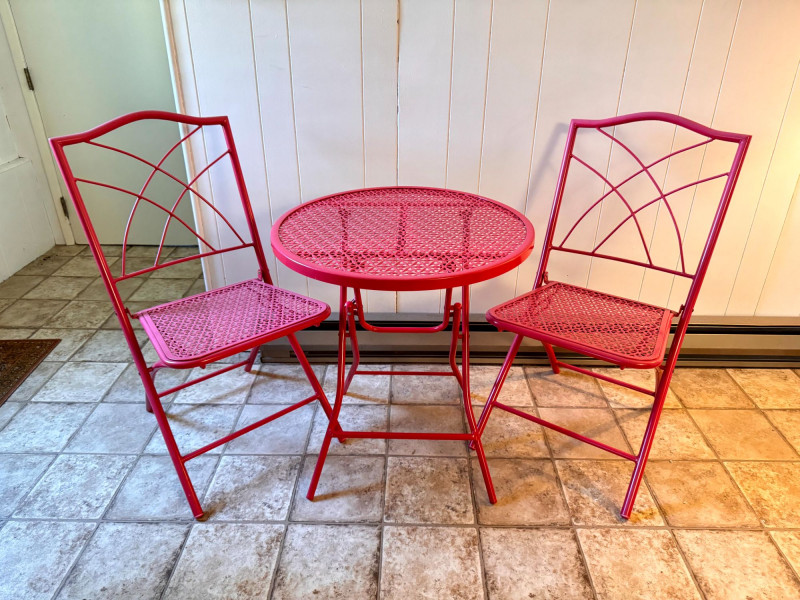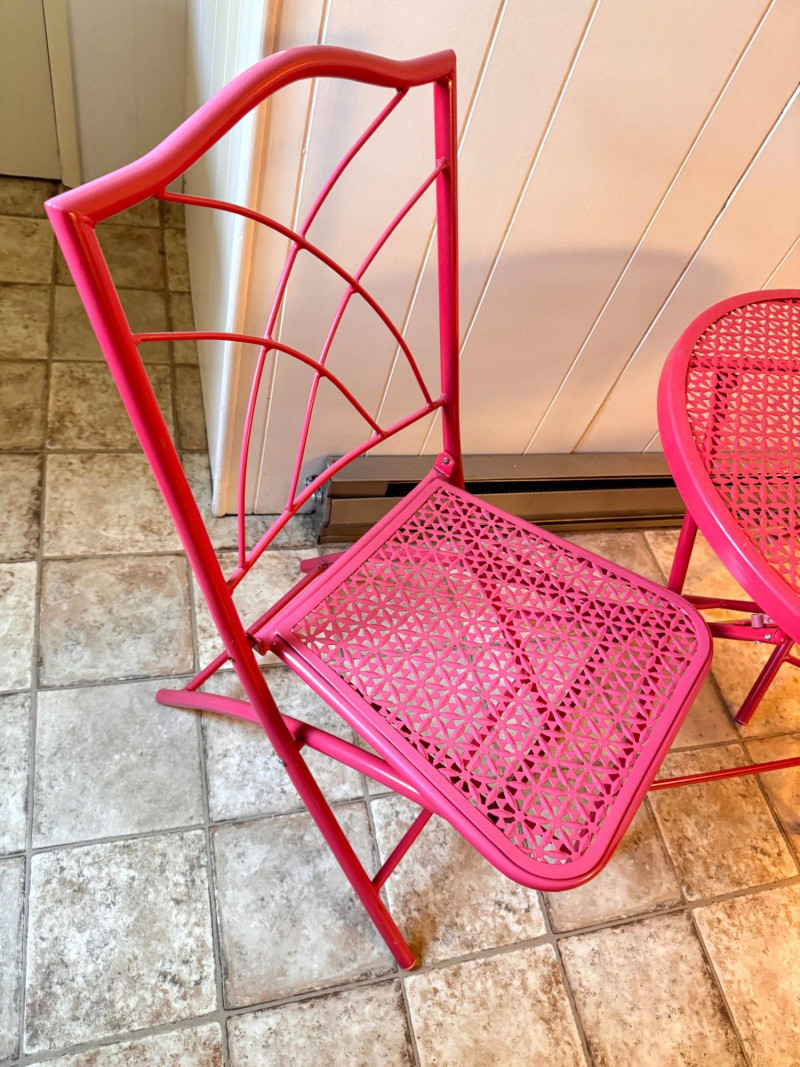 Lot # 10 - Vintage Pink Folding Patio Set - Table & 2 Chairs Metal Bistro