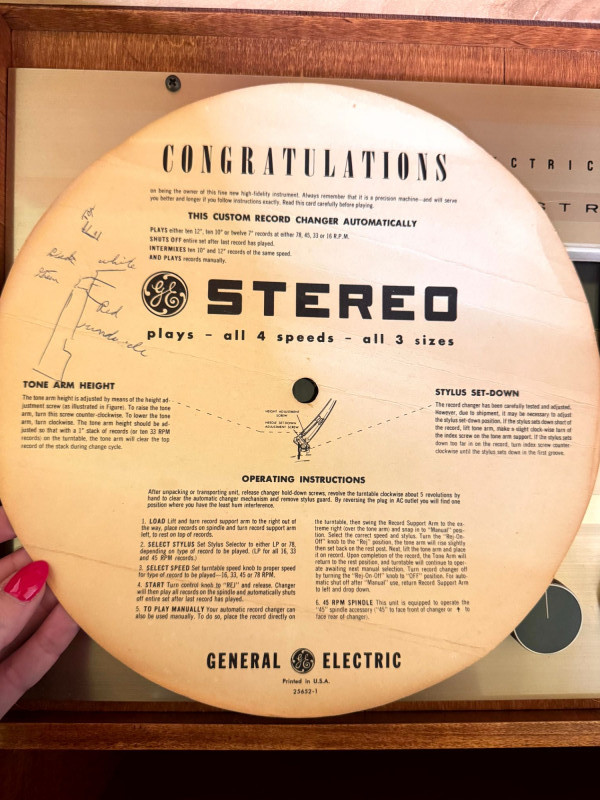Vintage General Electric Console Stereo Record Player w/ Radio.