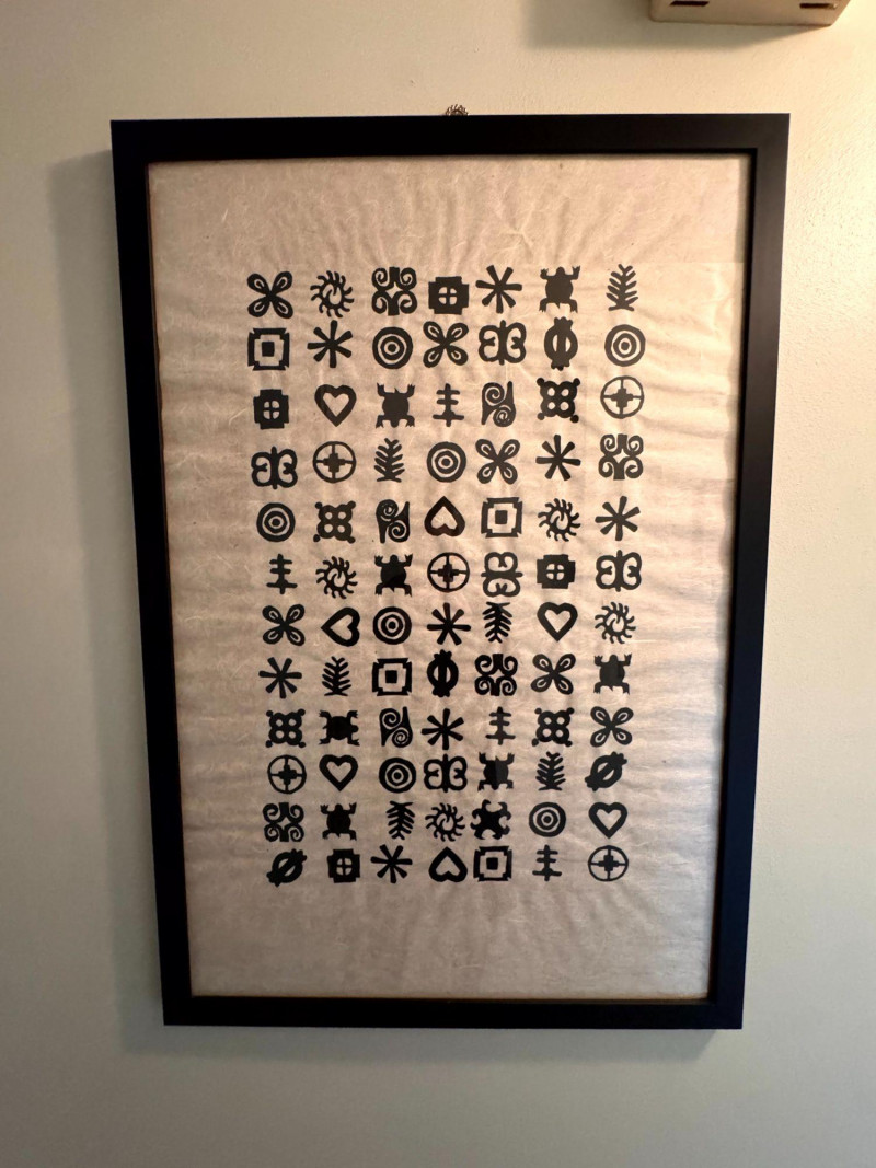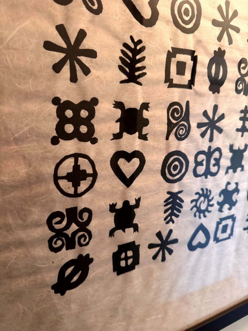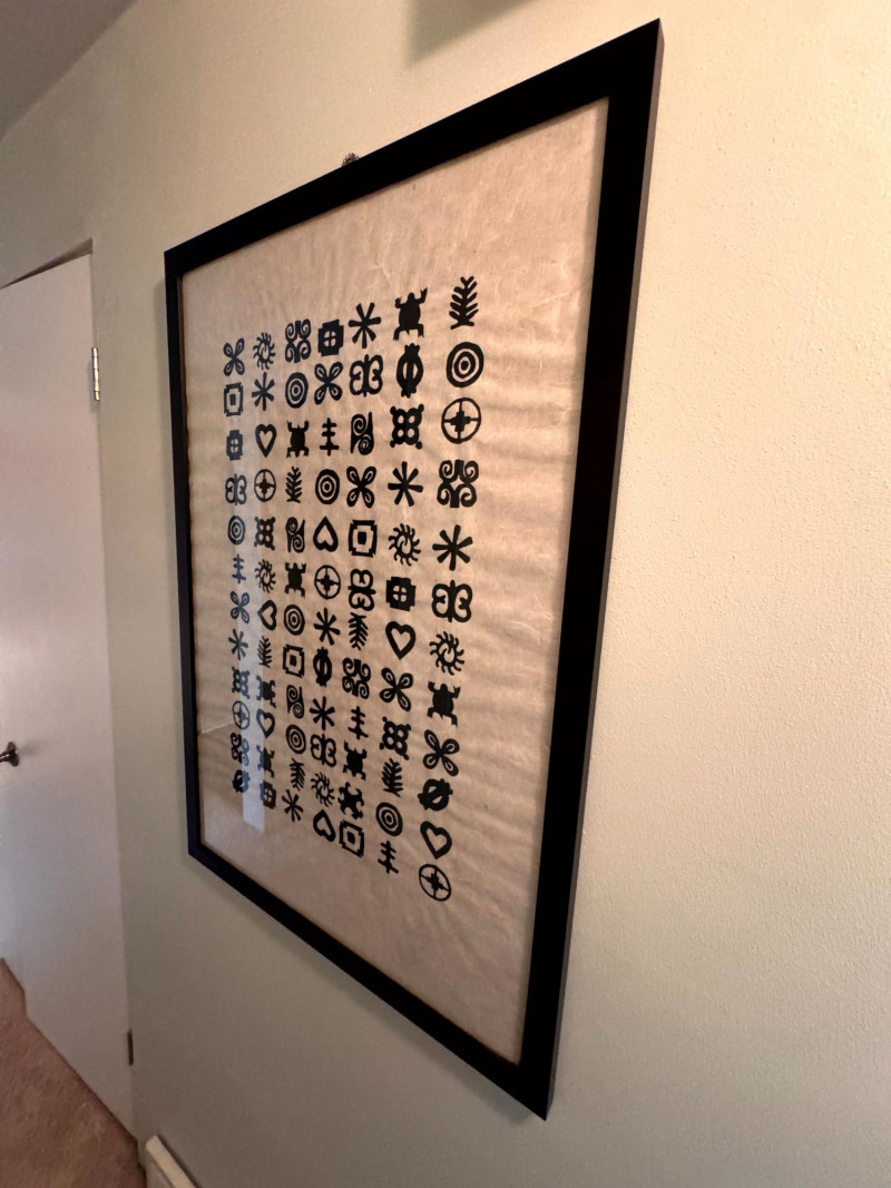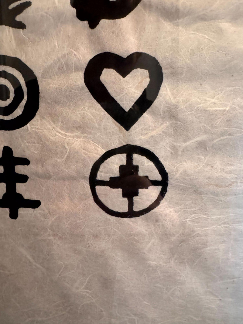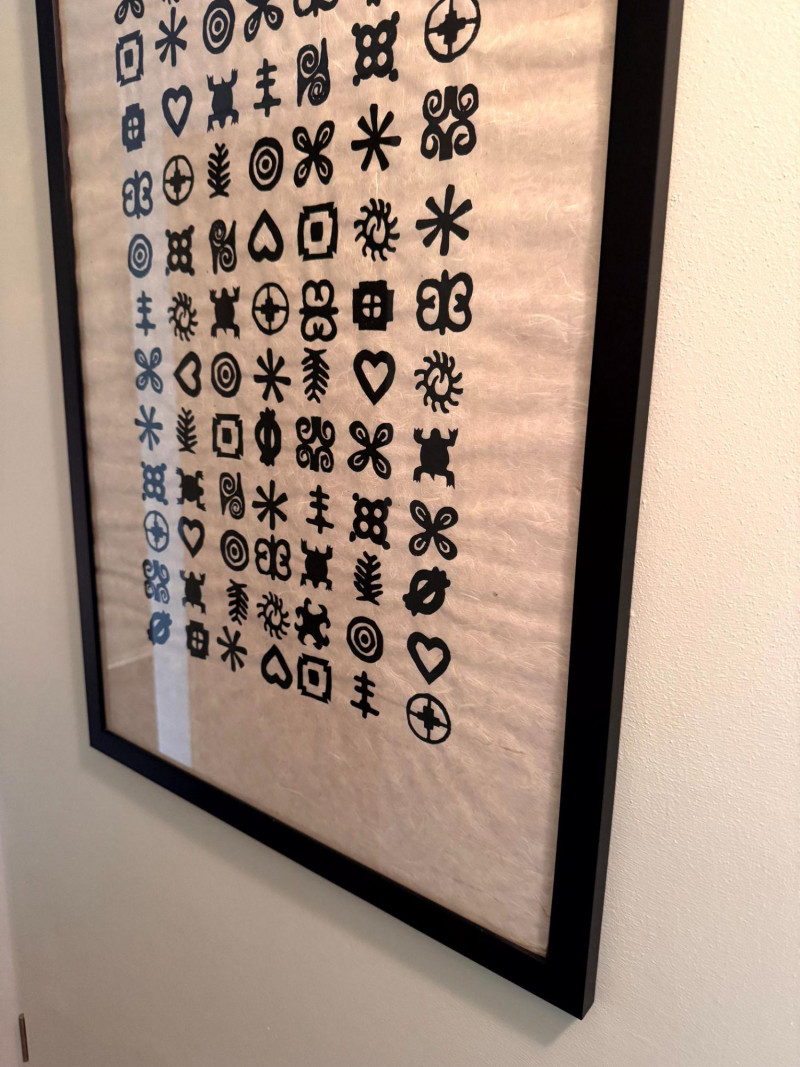 Framed Abstract Symbol Artwork On Textured Fiber Paper.