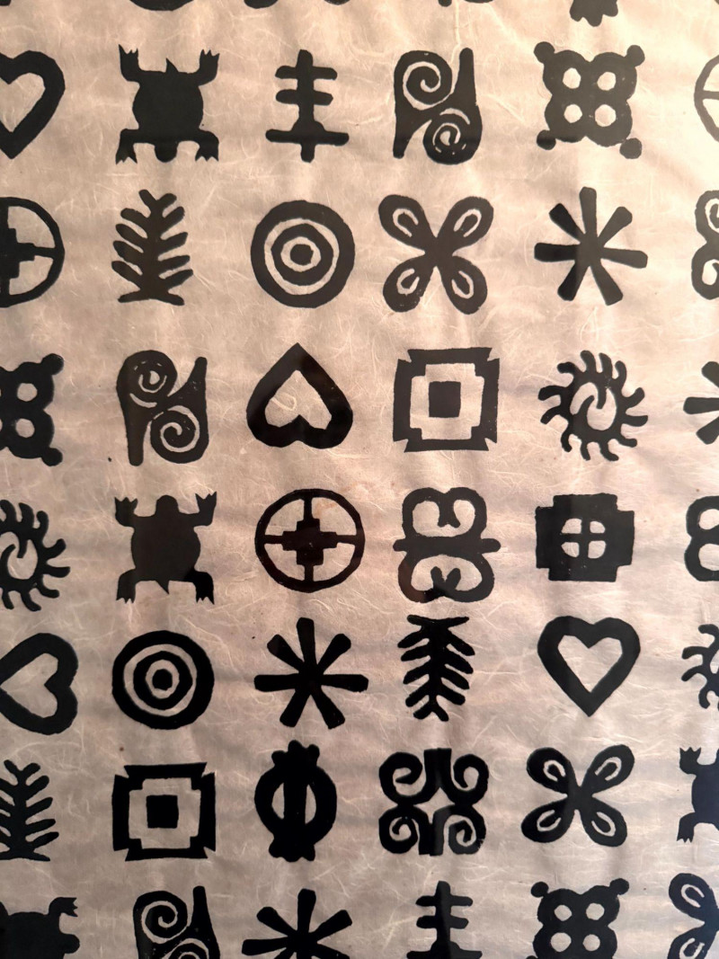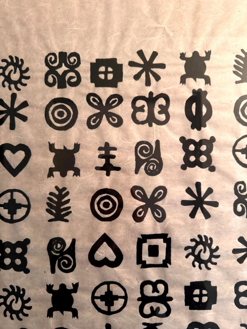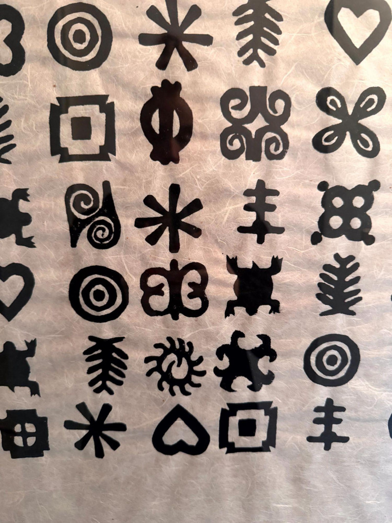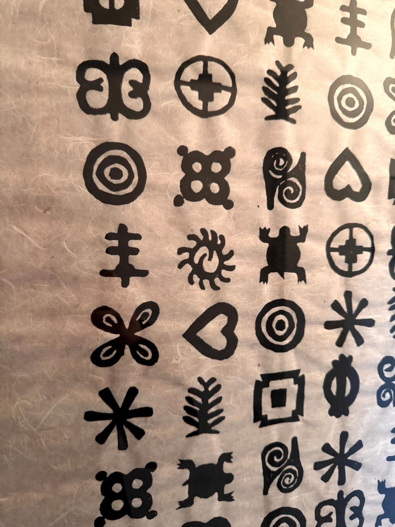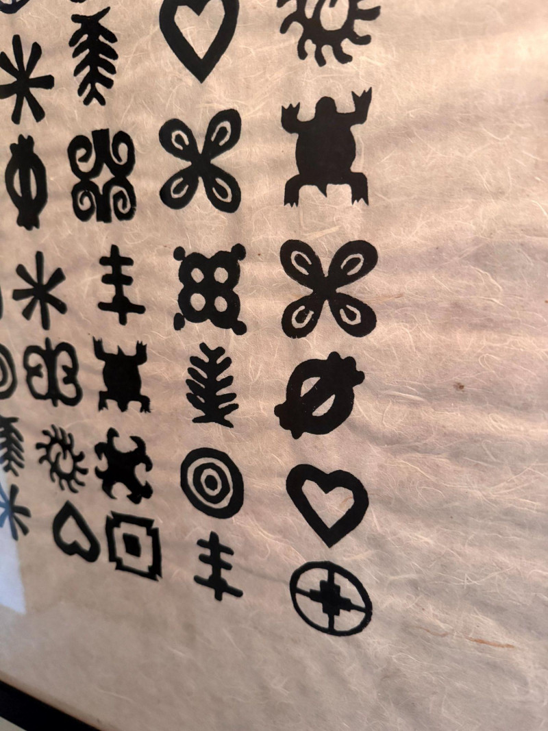 Framed Abstract Symbol Artwork On Textured Fiber Paper.