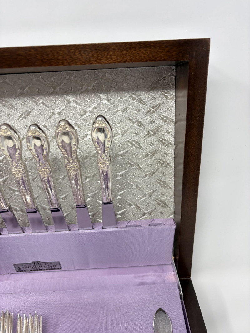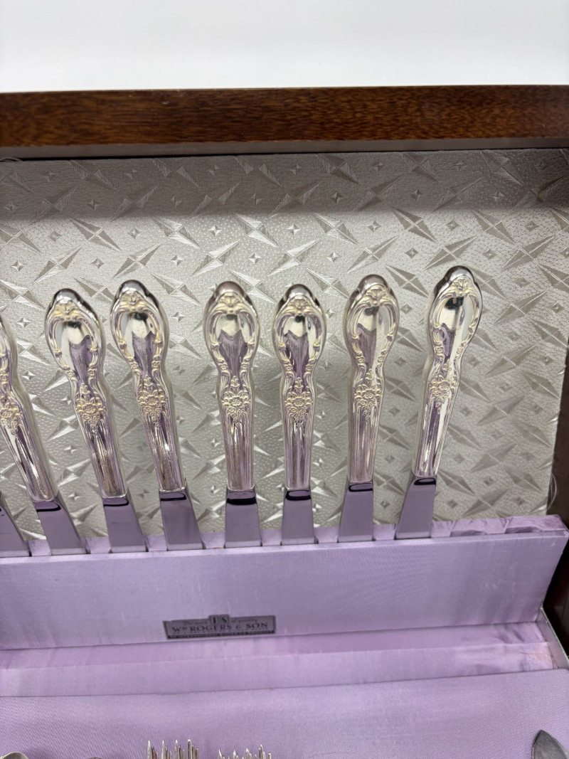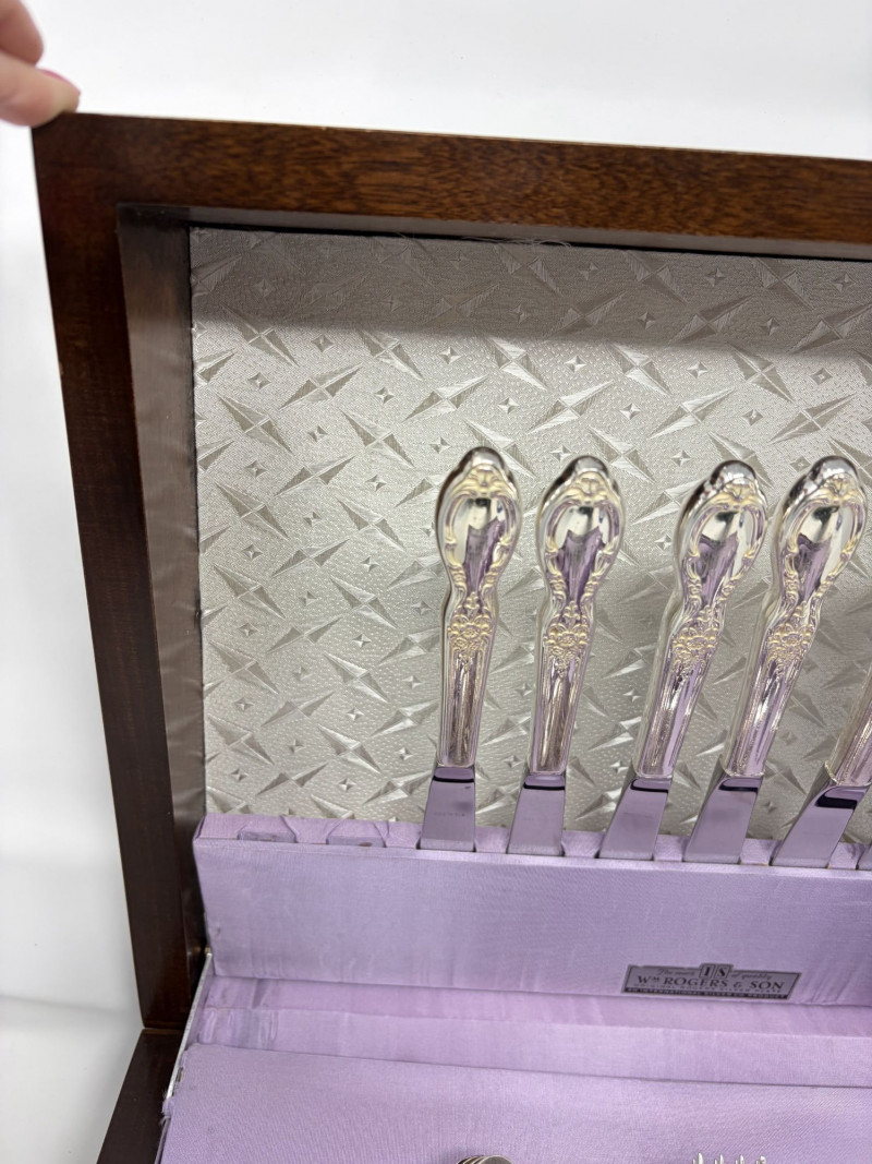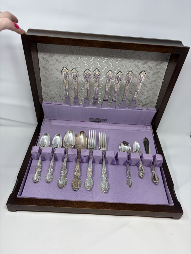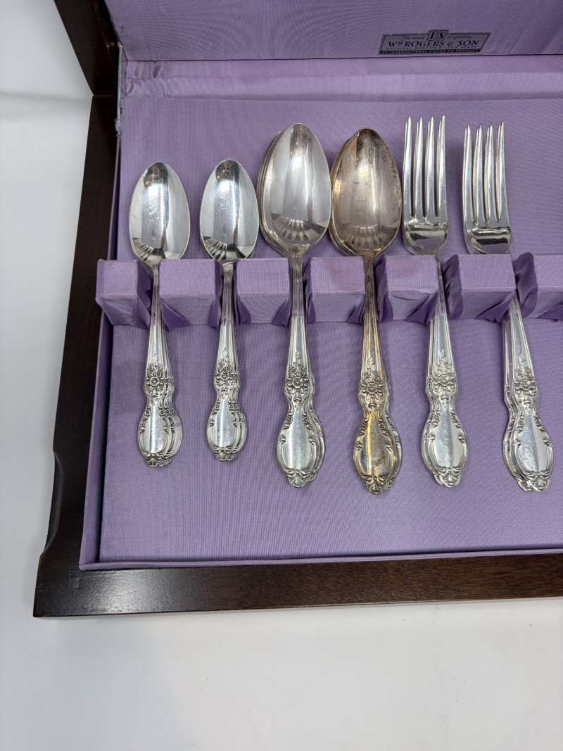 Wm Rogers & Son Silverplate Victorian Rose Flatware, Service For 8.