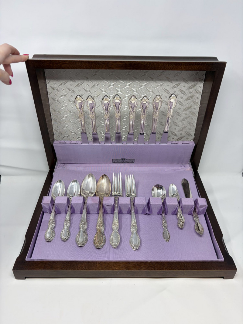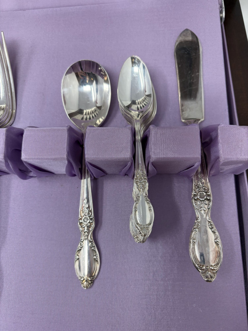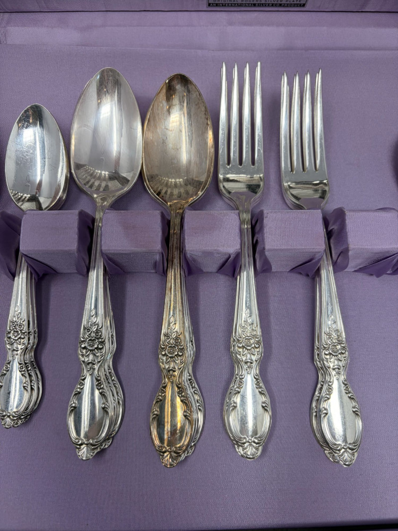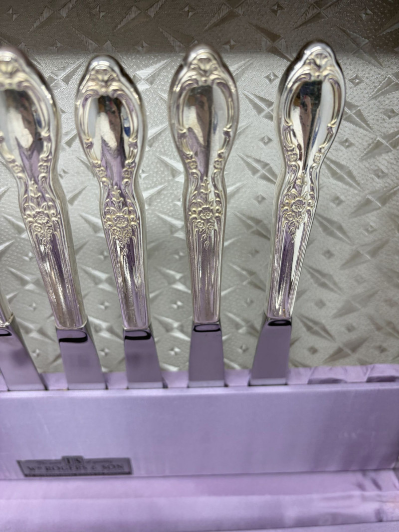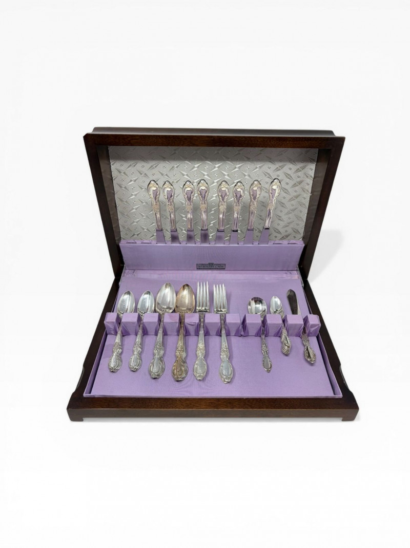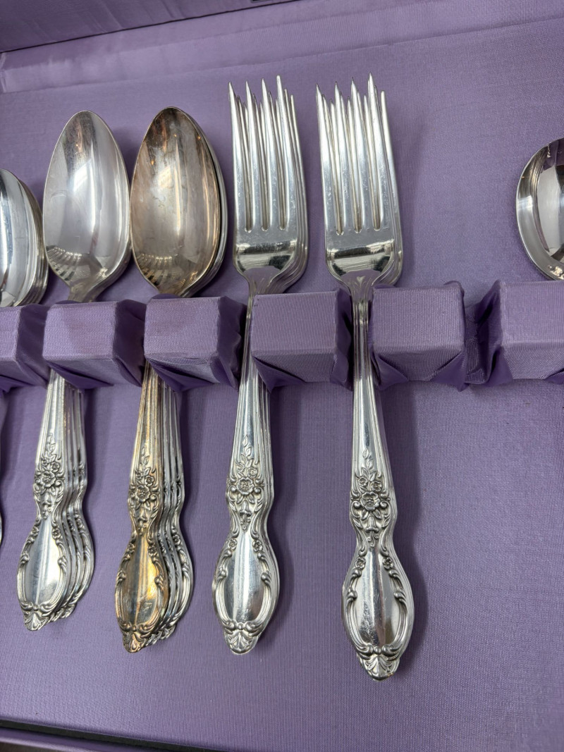 Wm Rogers & Son Silverplate Victorian Rose Flatware, Service For 8.