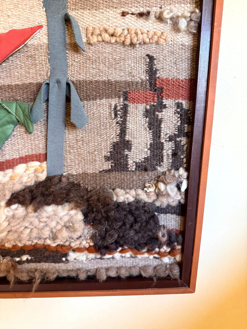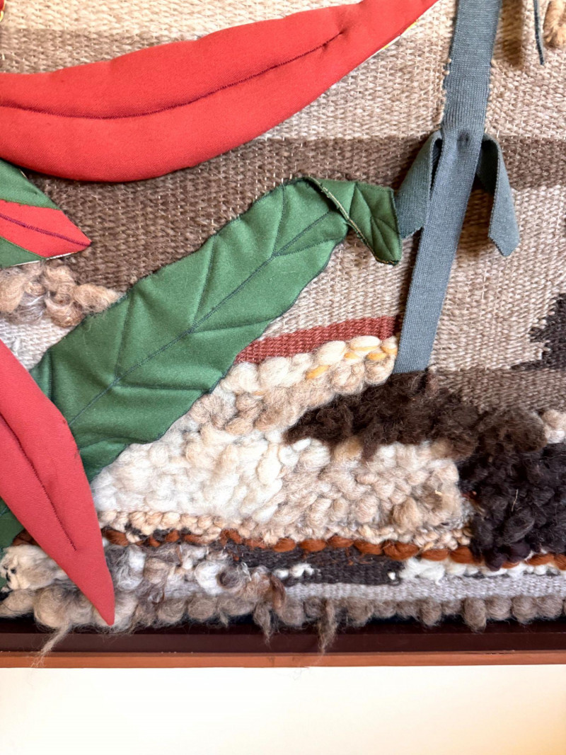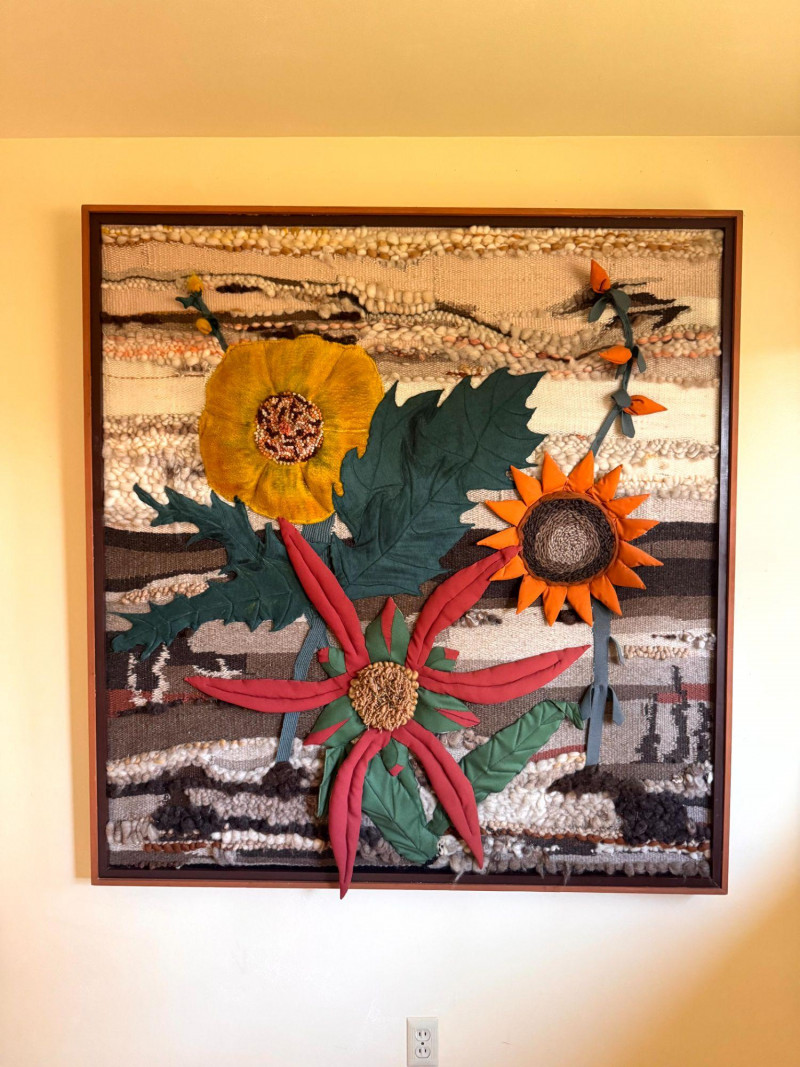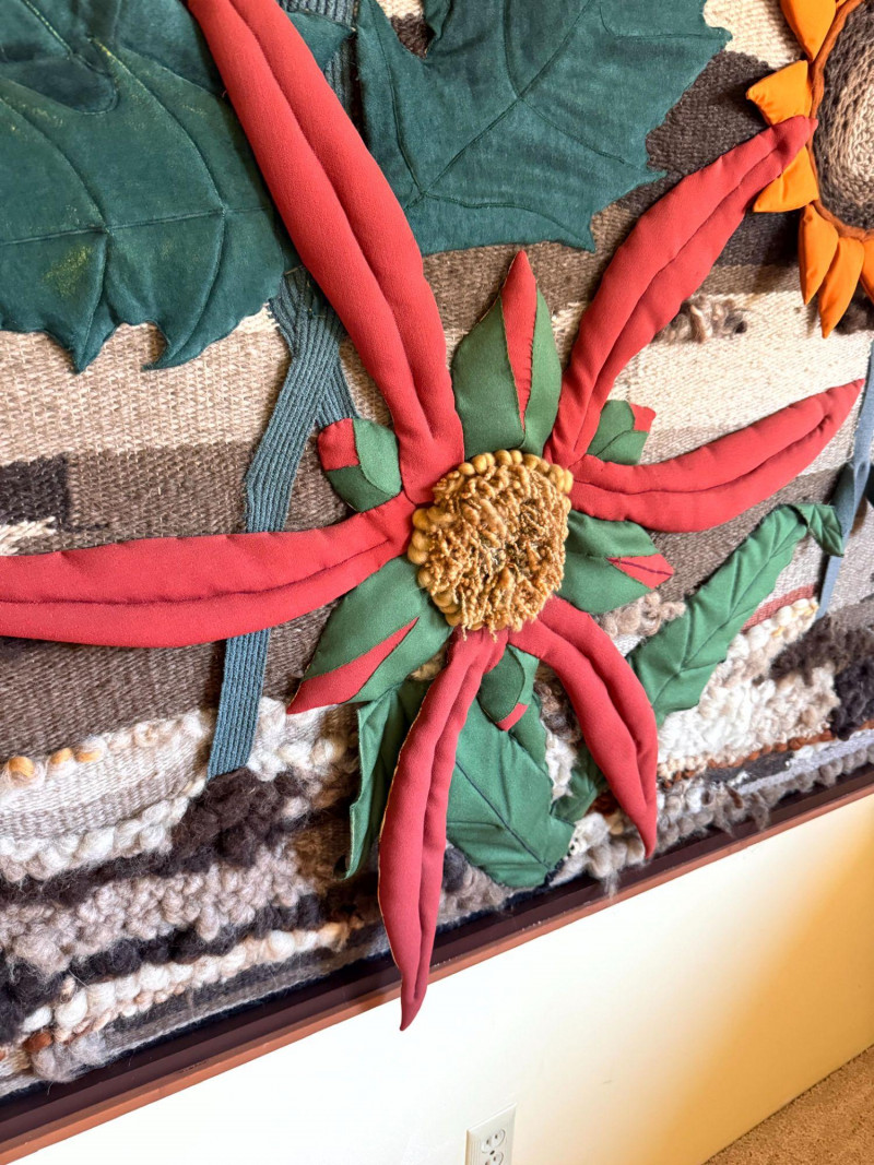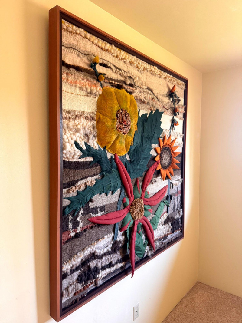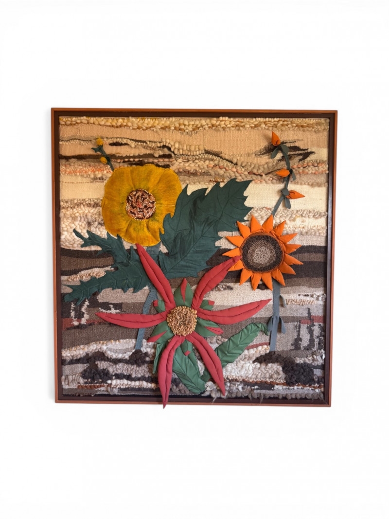 Lot # 33 - Vintage Large Textile Fabric Collage - Floral Wall Art, Framed