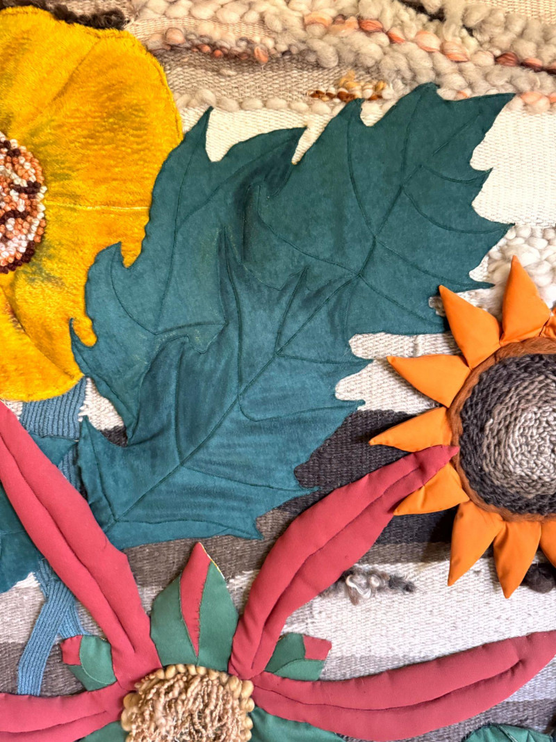 Vintage Large Textile Fabric Collage - Floral Wall Art, Framed.