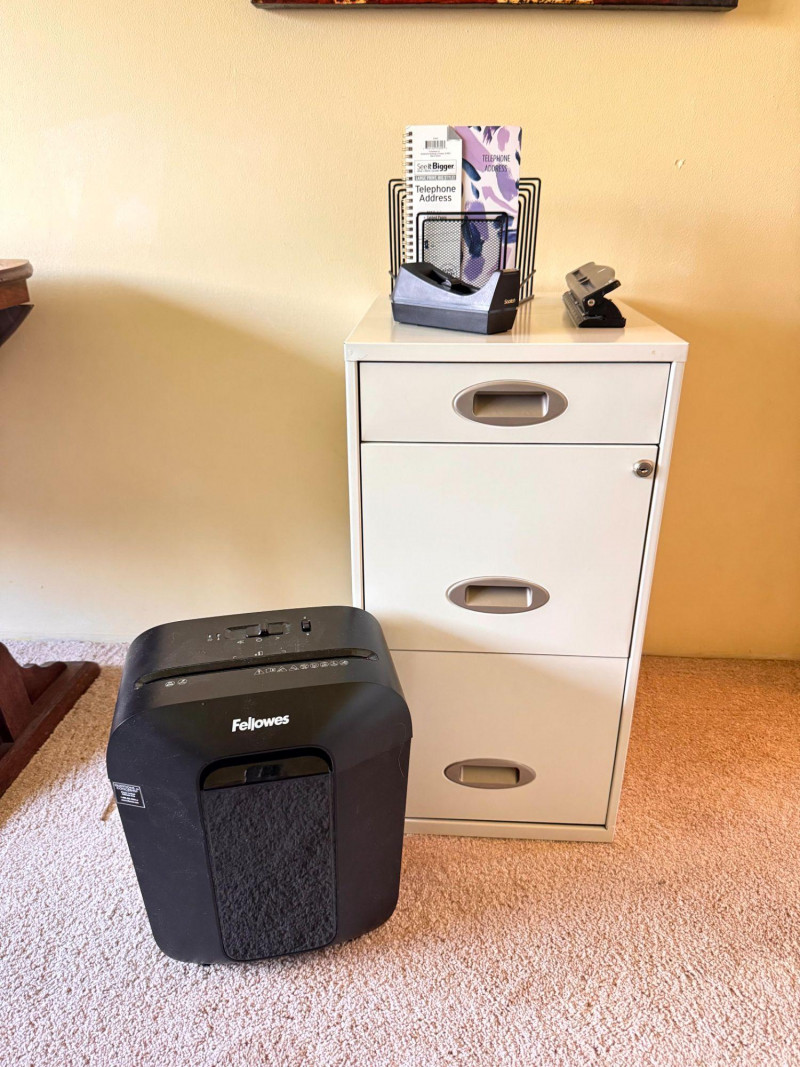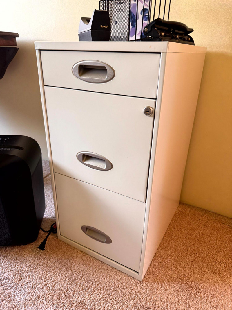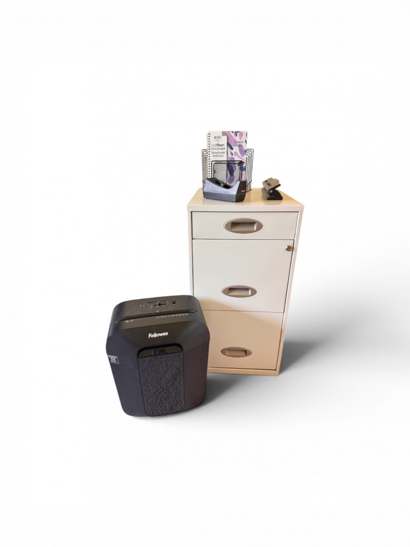 Office Filing Cabinet w/ Key, Shredder & Desk Organizer Set.