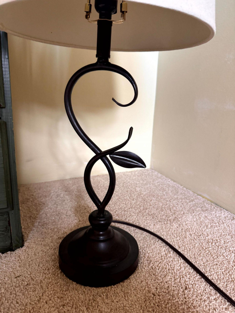 Lot # 47 - Vintage Green Painted 5 Drawer Dresser w/ Curved Metal Base Table Lamp