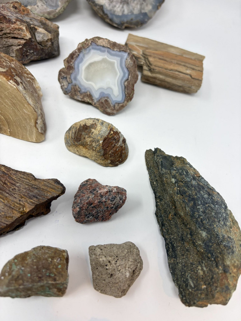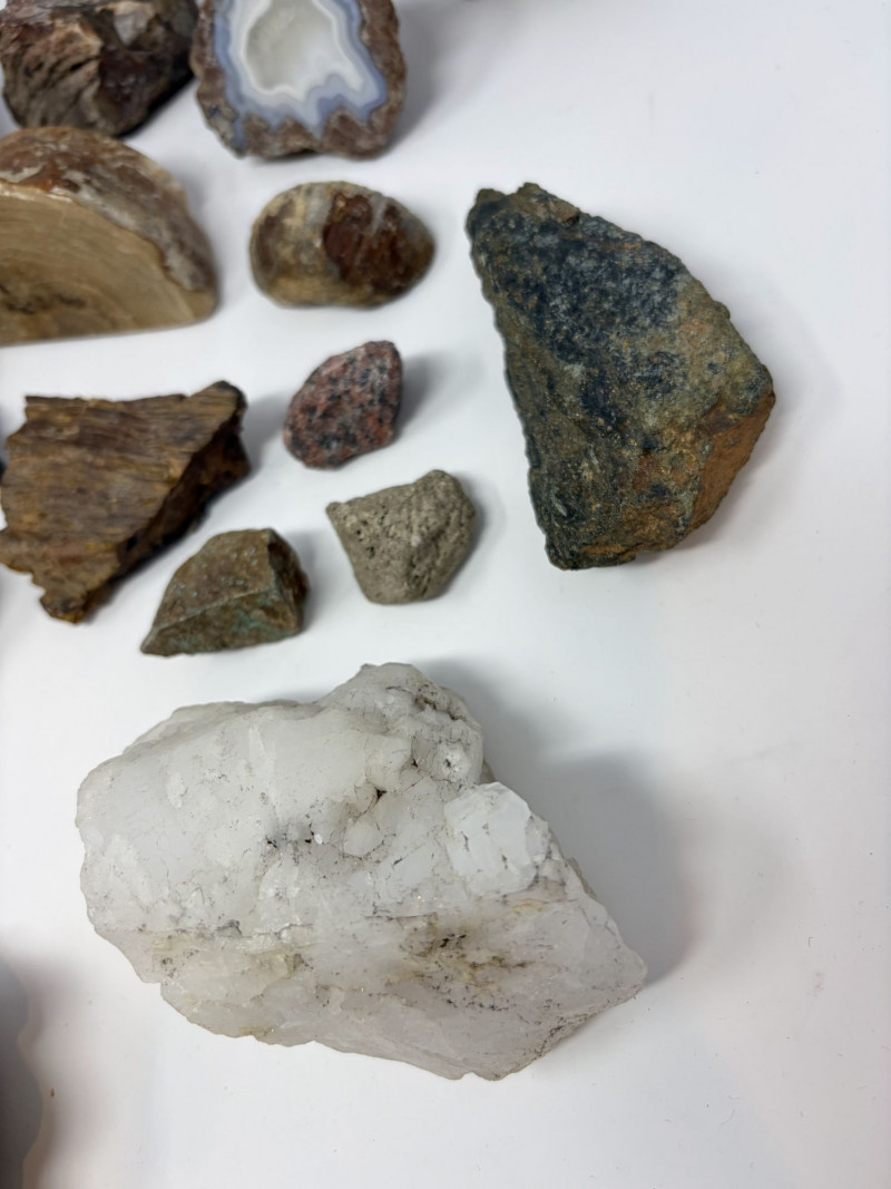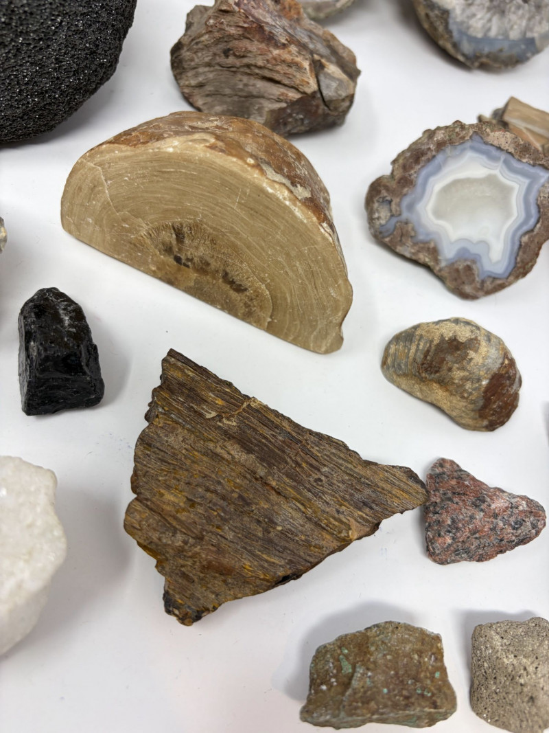 Large Fossil, Rock & Crystal Collection w/ Ammonite & Petrified Wood.