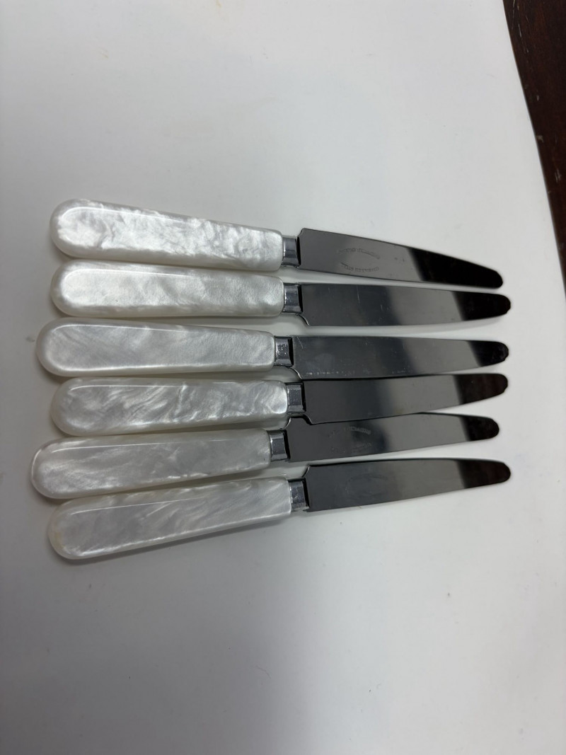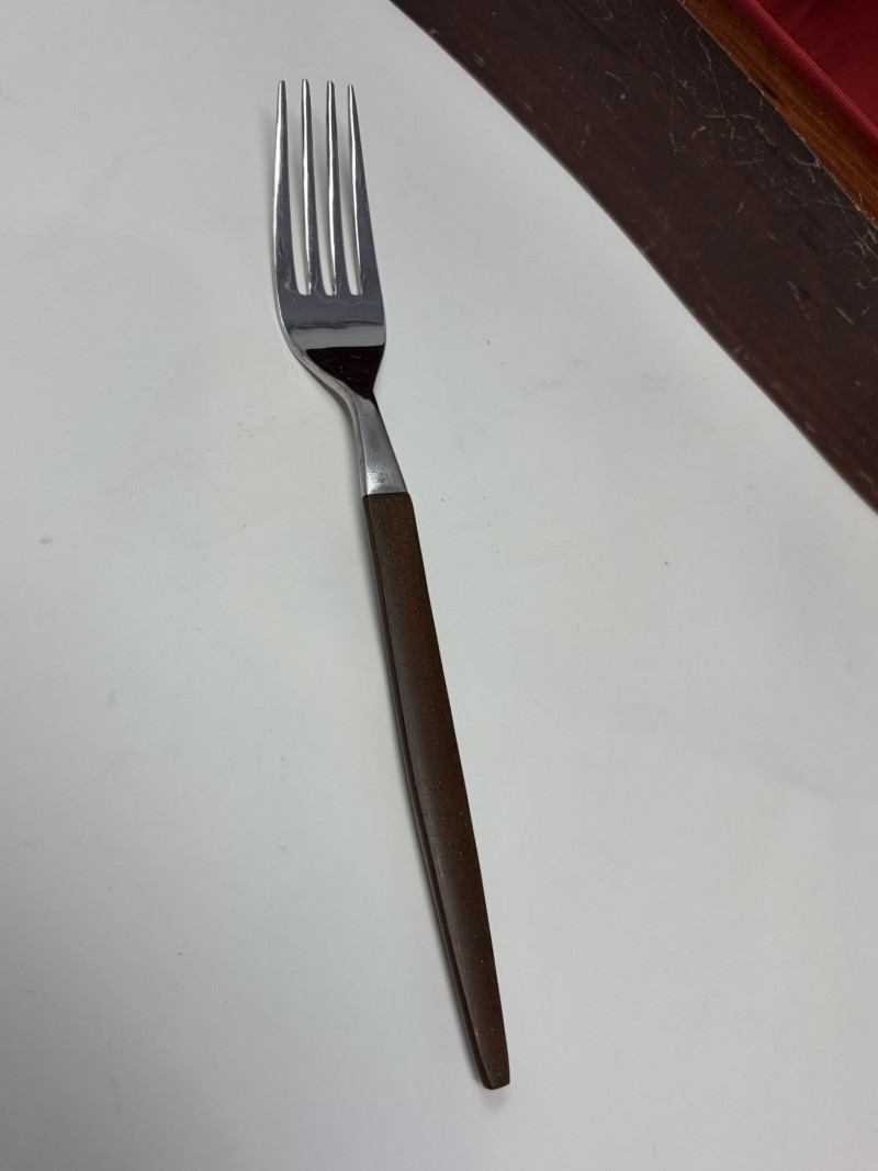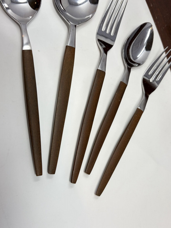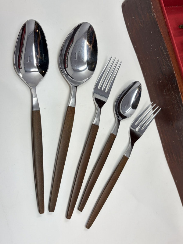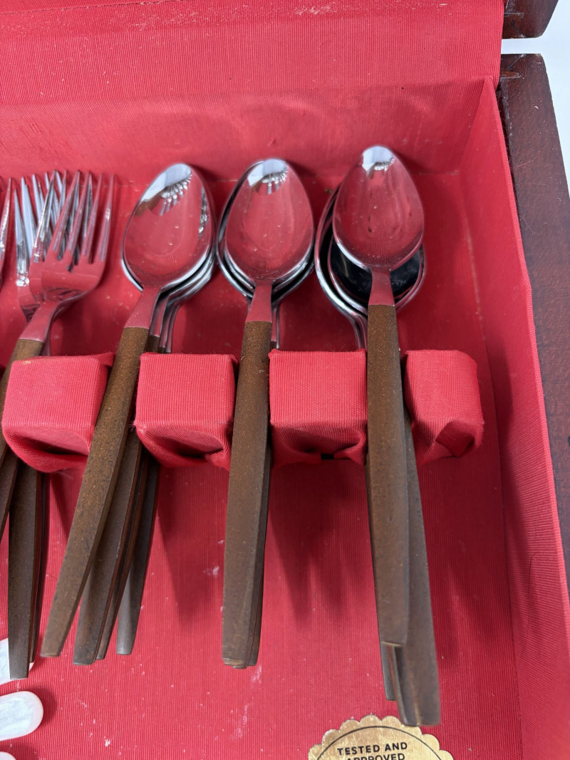Lot # 60 - Vintage MCM Flatware Set for 8 w/ Wood Handles & Serving Pieces