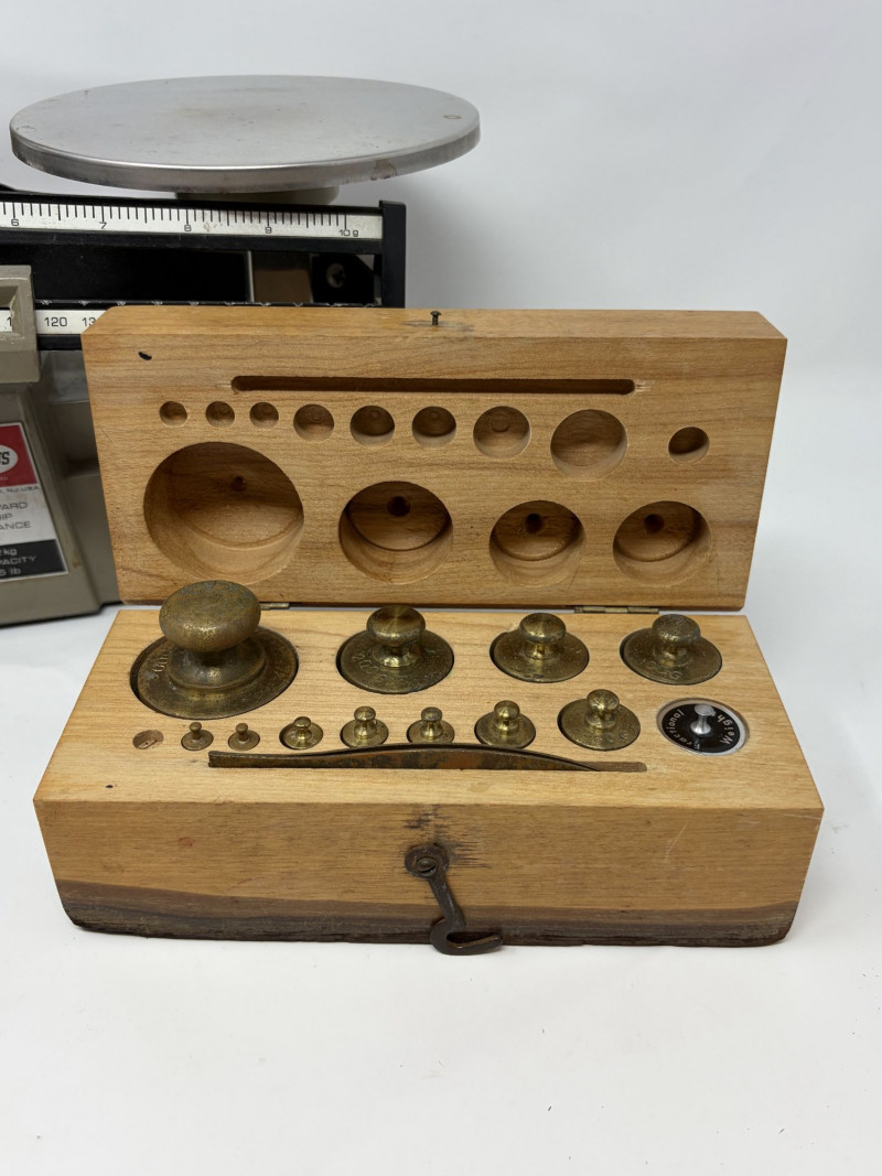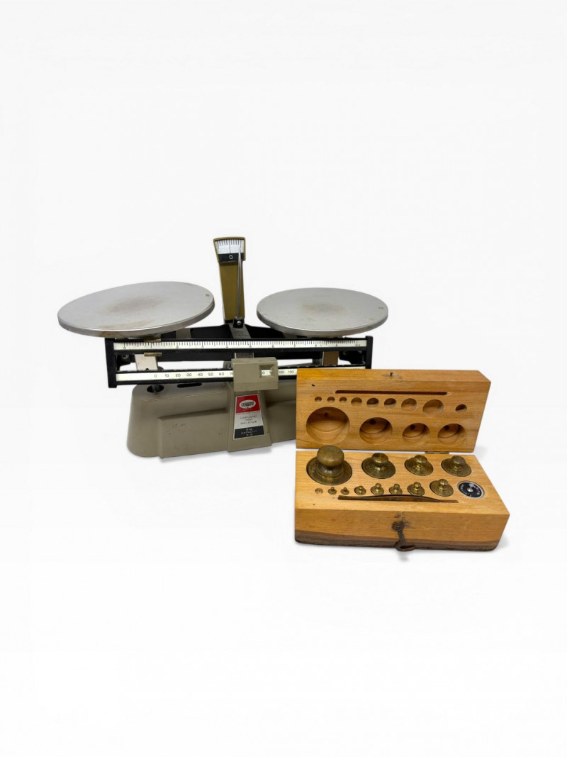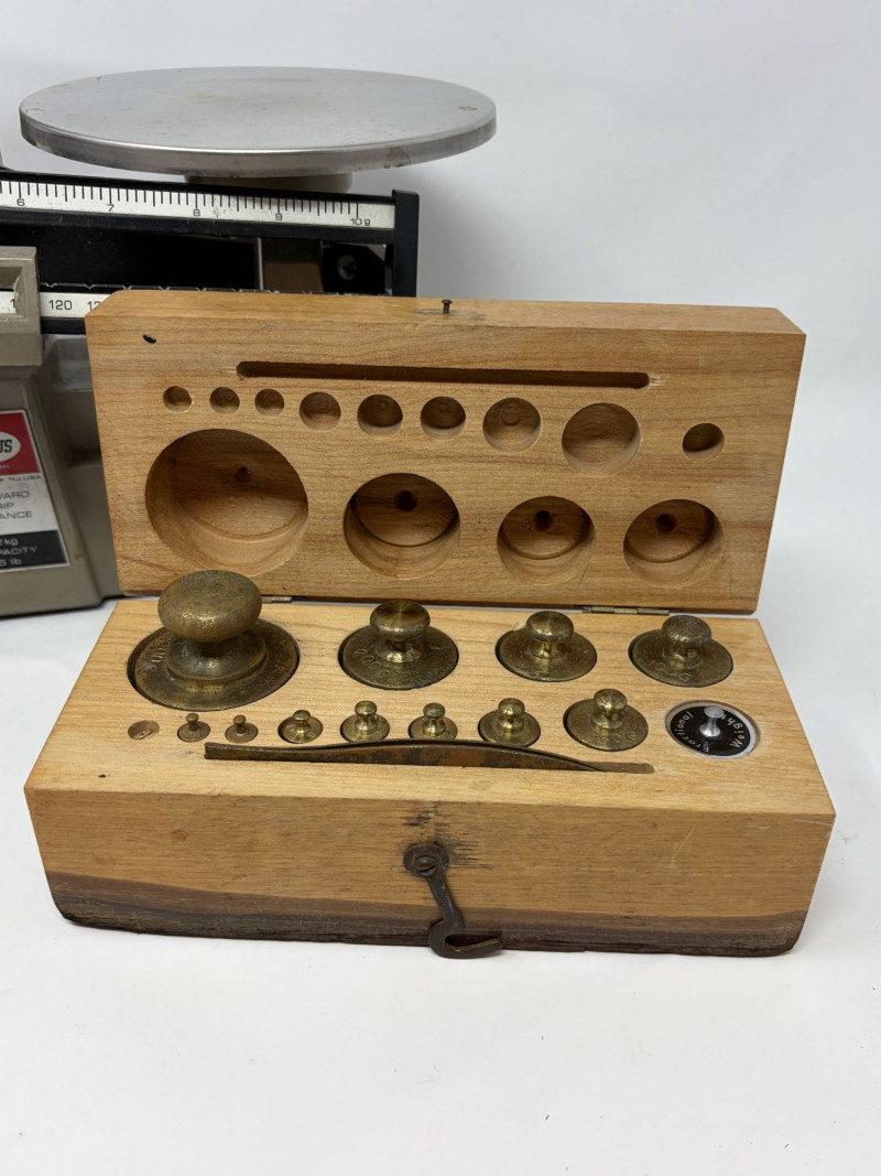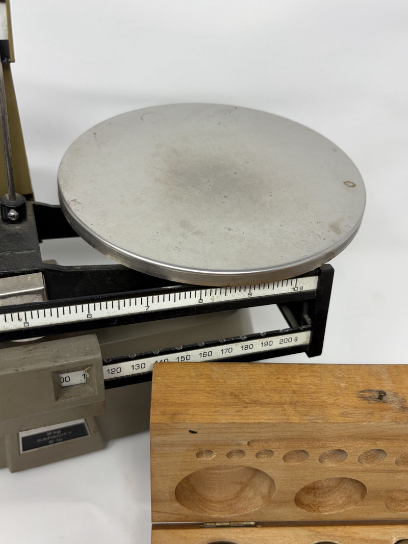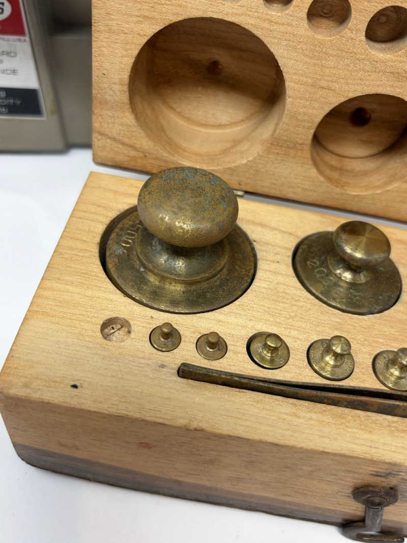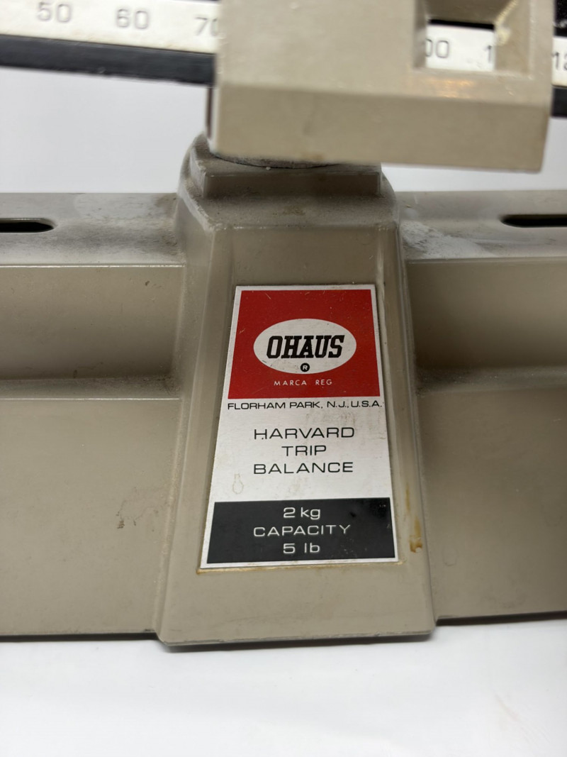 Vintage Ohaus Harvard Trip Balance Scale w/ Brass Weights & Wood Case.