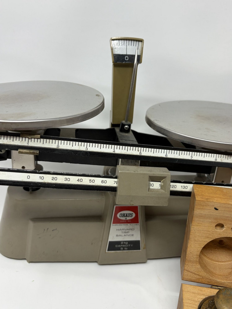 Lot # 61 - Vintage Ohaus Harvard Trip Balance Scale w/ Brass Weights & Wood Case