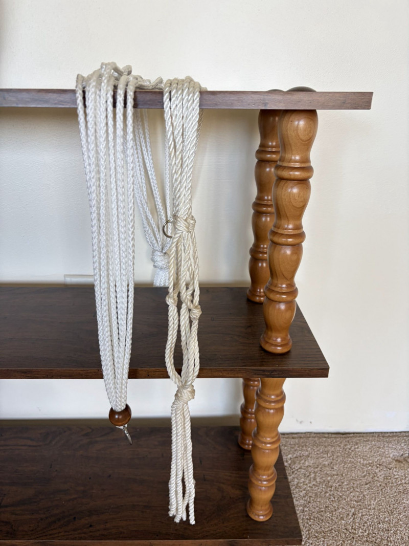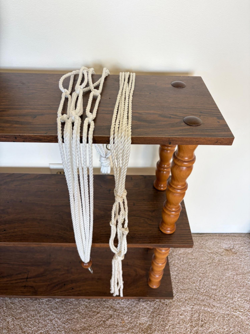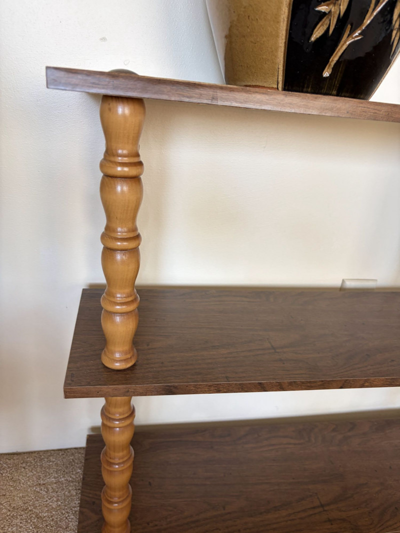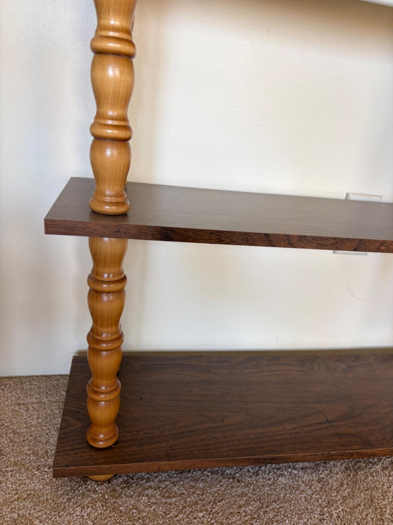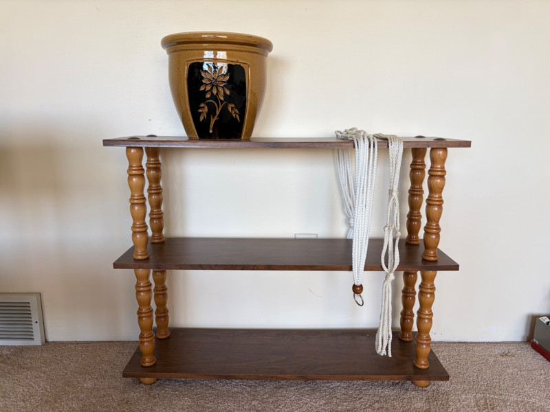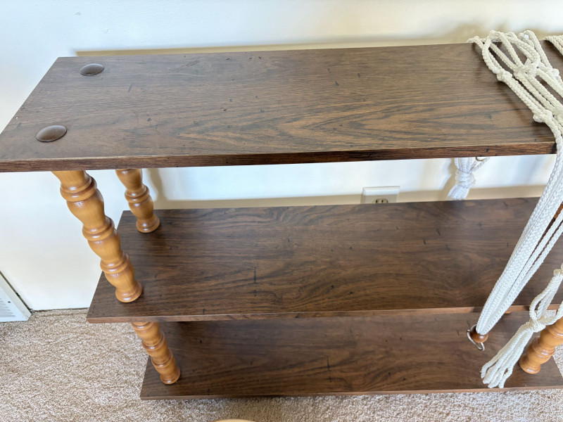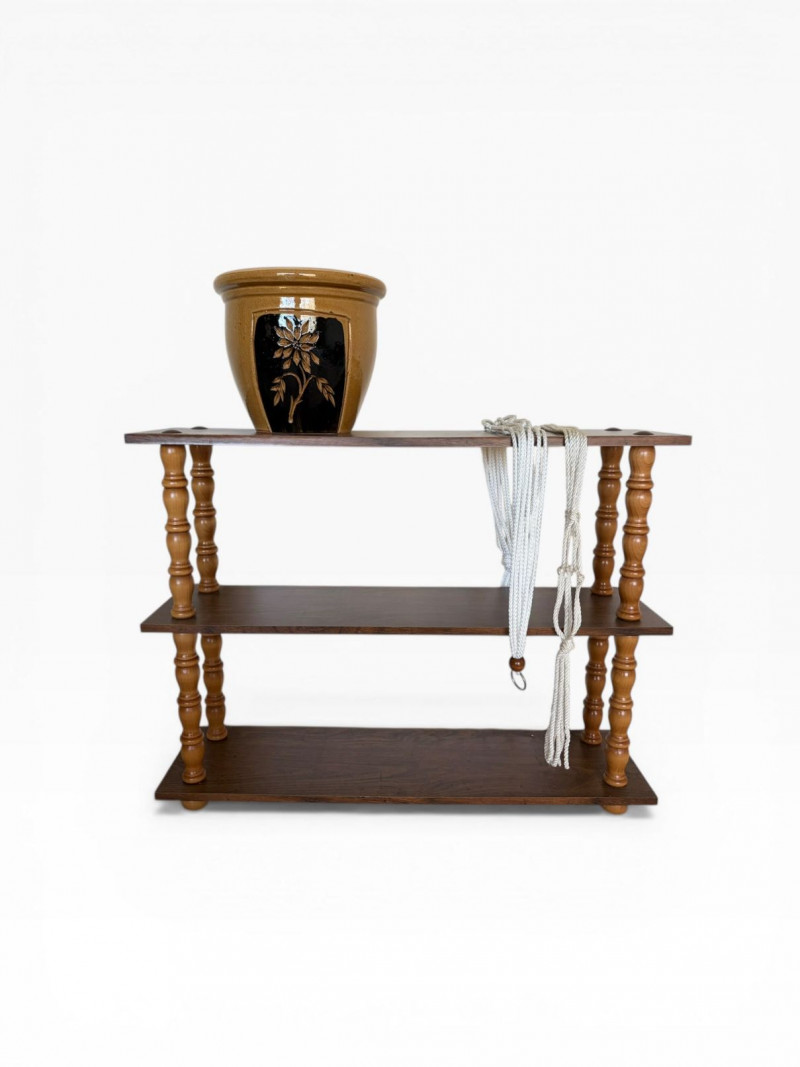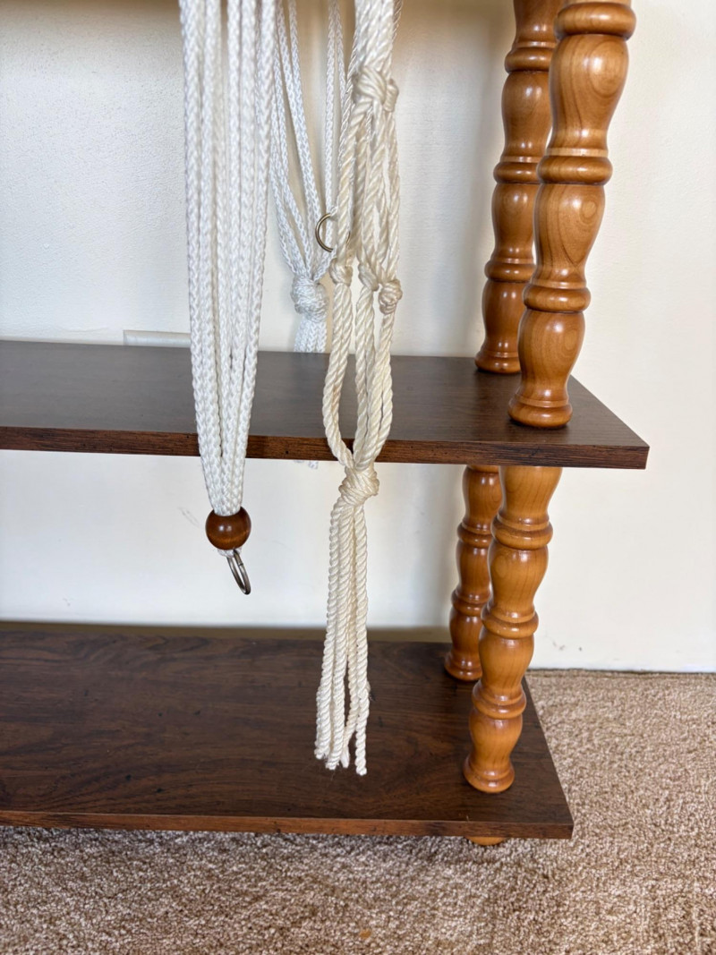 Vintage 3-Tier Wood Shelf w/ Turned Legs + Planter & Hangers.