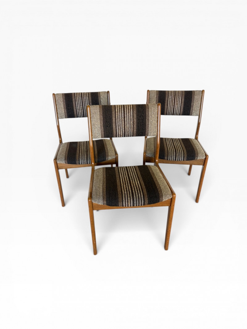 Lot # 74 - Set of 3 MCM Dining Chairs w/ Wood Frame & Striped Upholstery