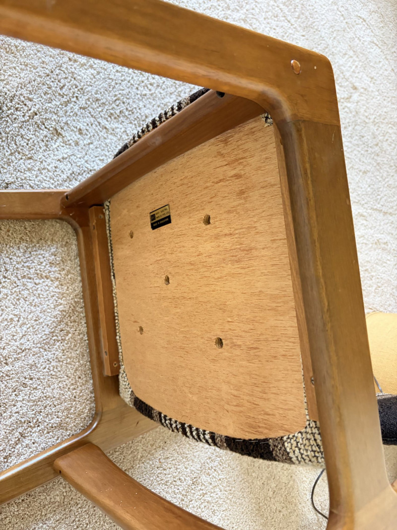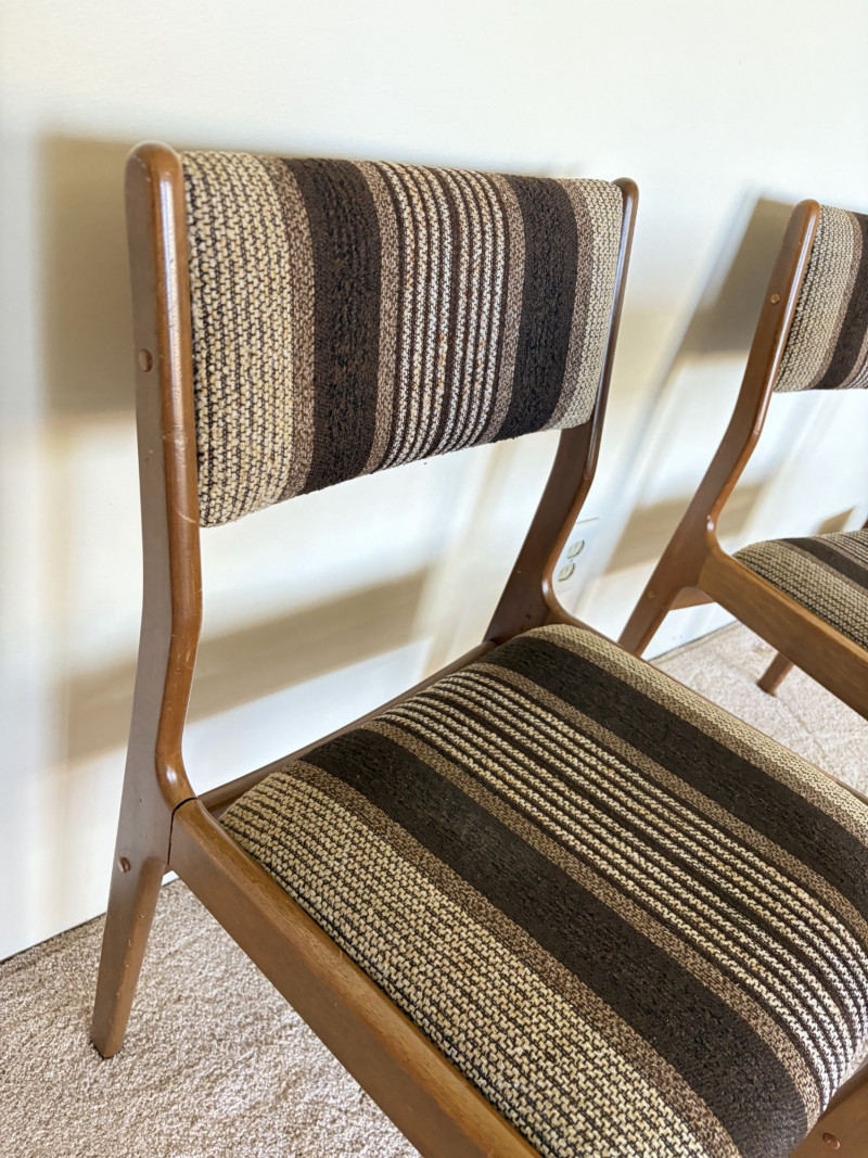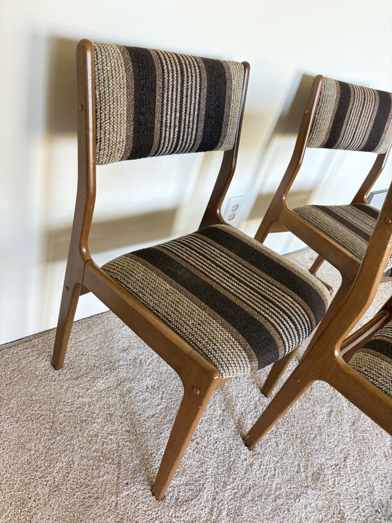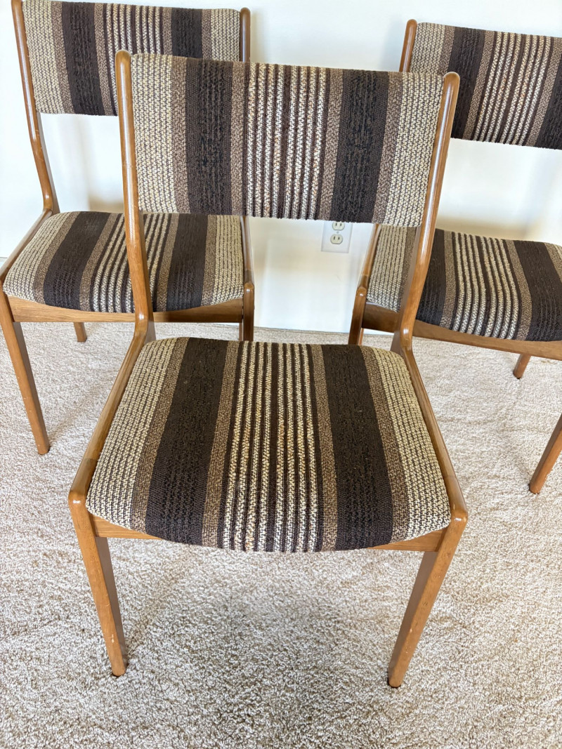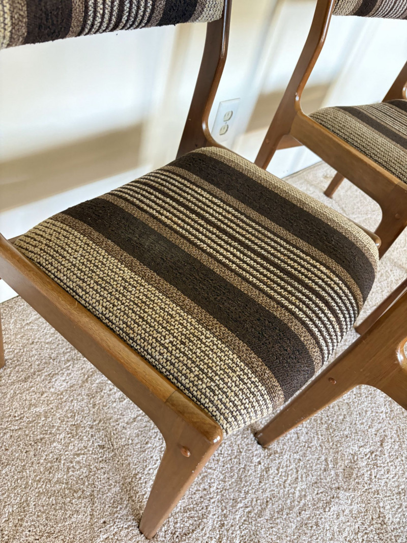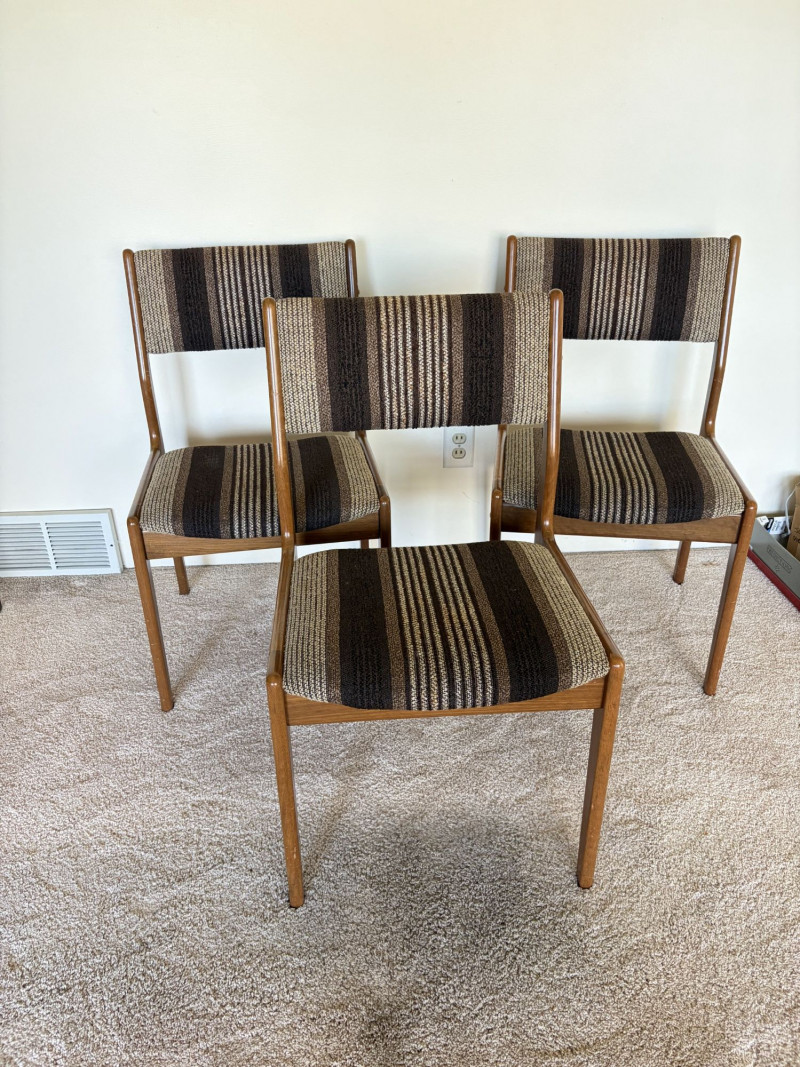 Set of 3 MCM Dining Chairs w/ Wood Frame & Striped Upholstery.