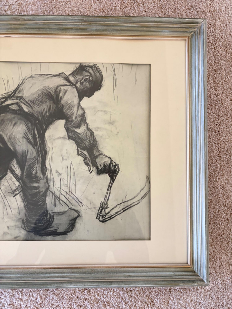 Vintage Van Gogh “Reaping Farmer” Reproduction Print - Framed.
