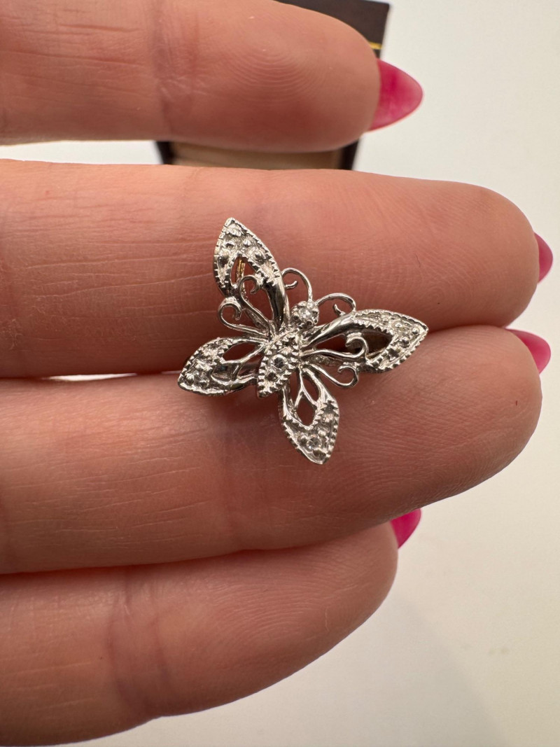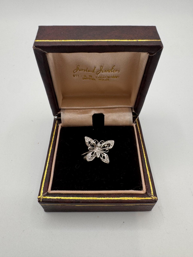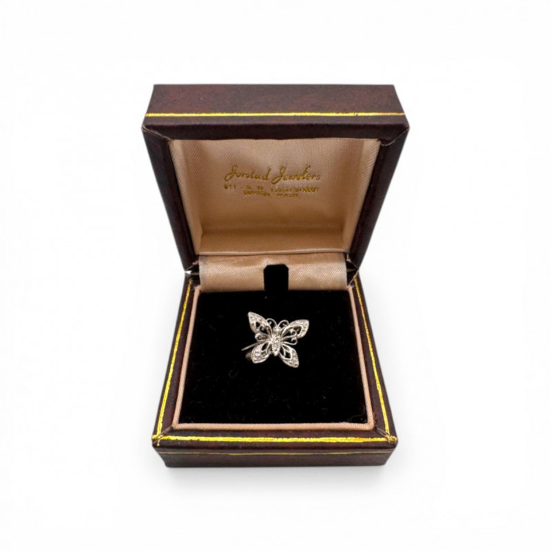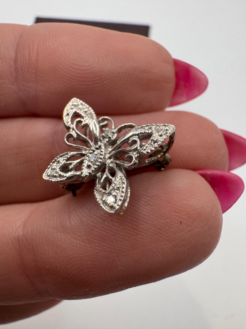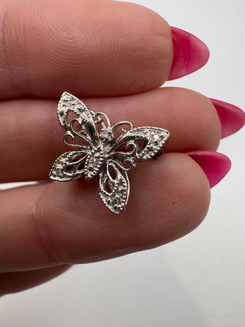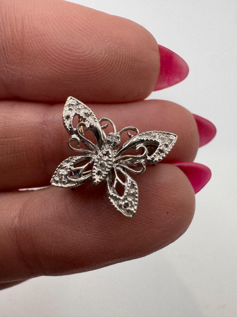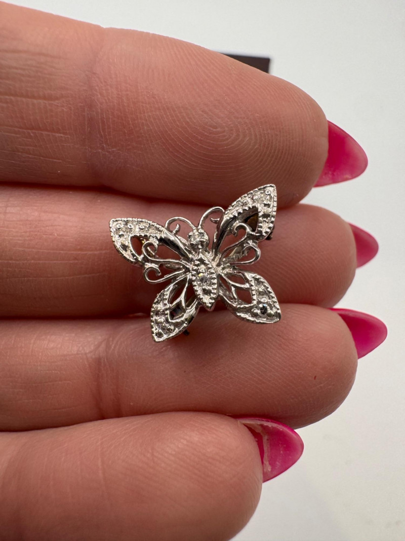 14K White Gold Diamond Butterfly Pin Filigree - 1.67g.