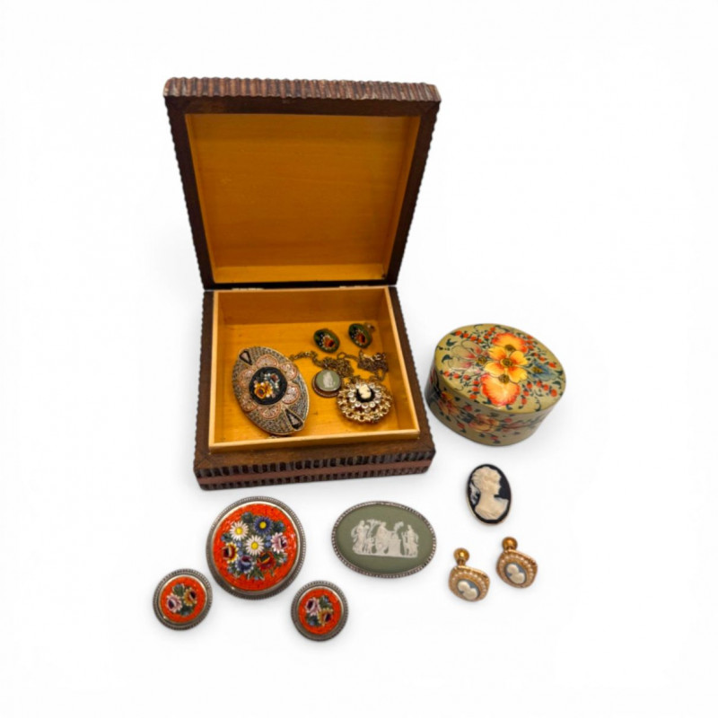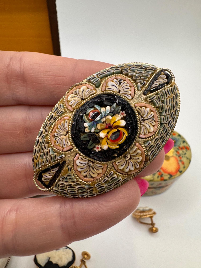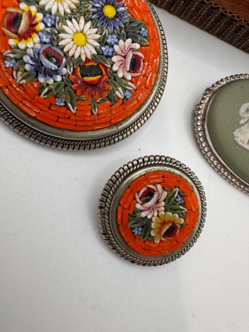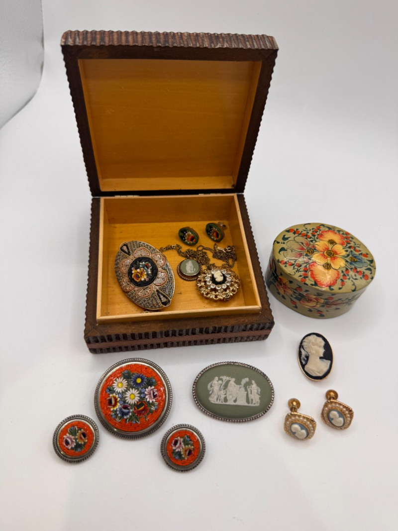 Lot # 85 - Wedgwood Cameo Brooch, Cameo Jewelry, Micro Mosaic Pins, Earrings +