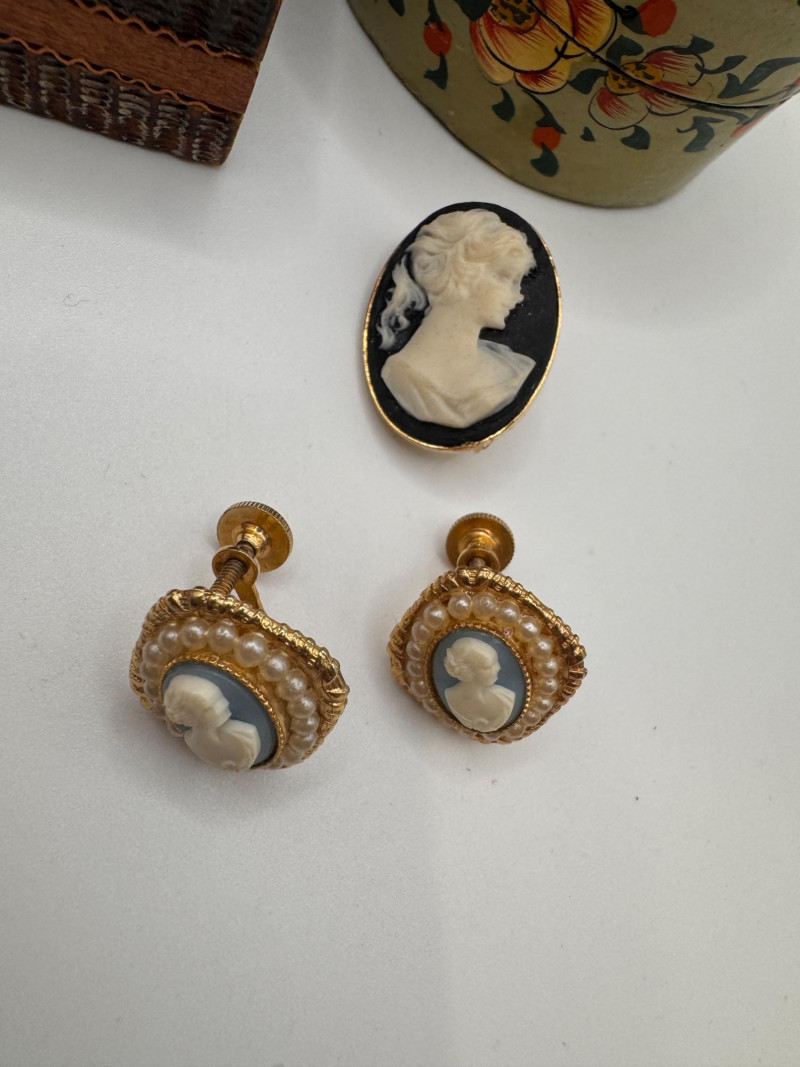 Wedgwood Cameo Brooch, Cameo Jewelry, Micro Mosaic Pins, Earrings +