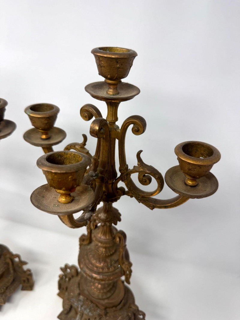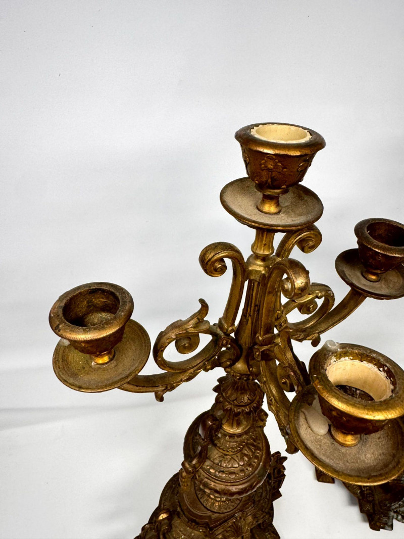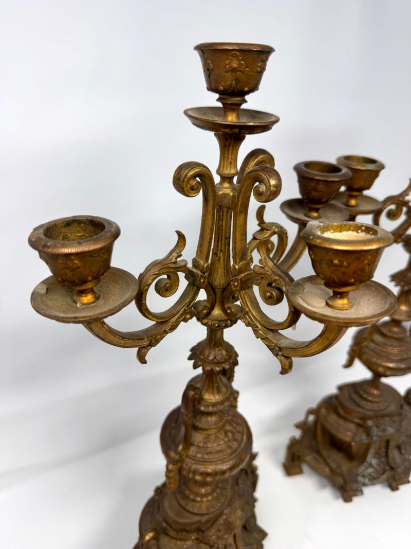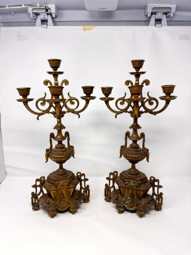 Pair of Antique Brass 4-Arm Candelabras Ornate Design.
