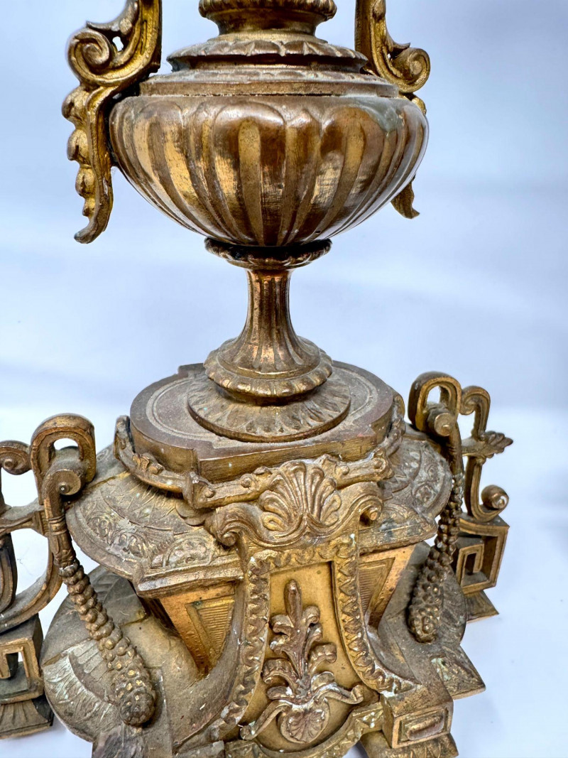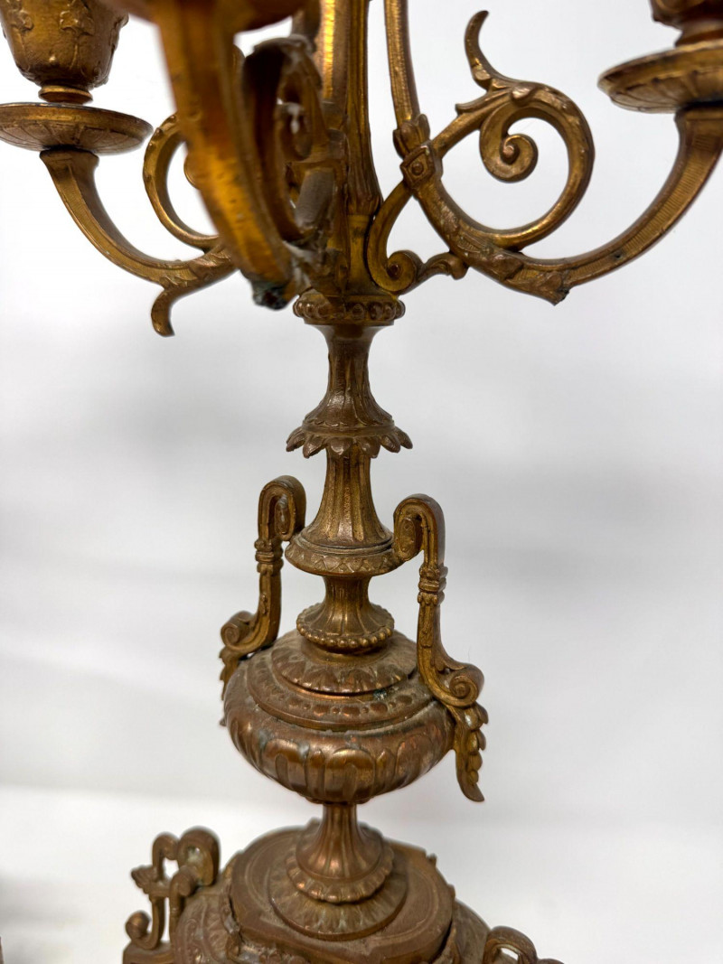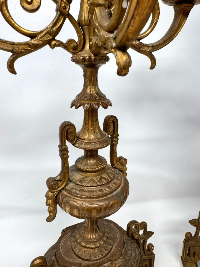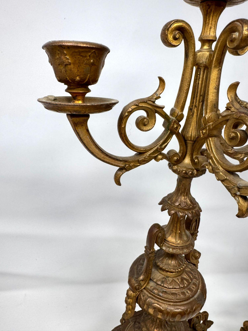Pair of Antique Brass 4-Arm Candelabras Ornate Design.
