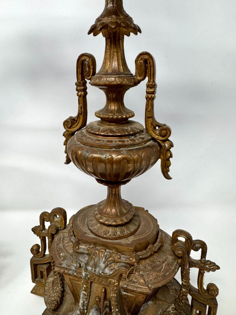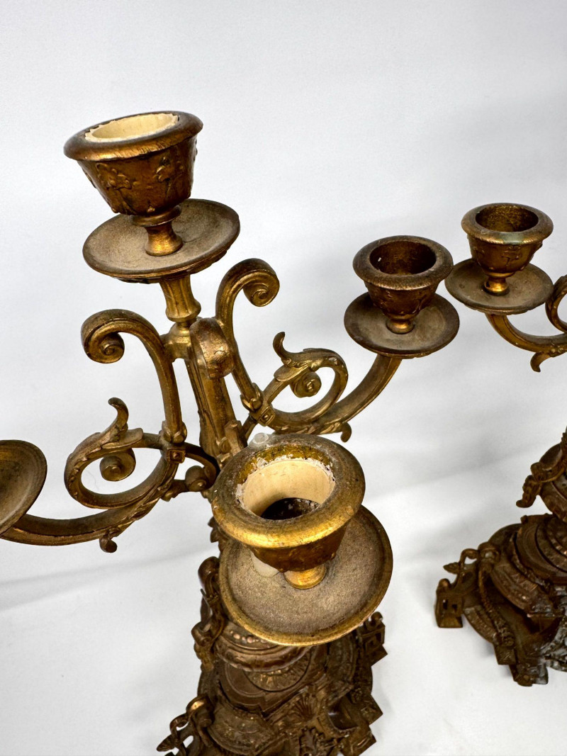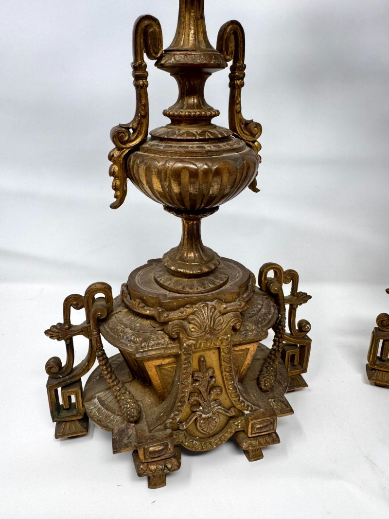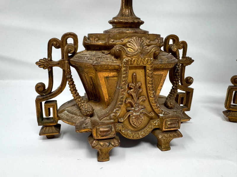 Lot # 3 - Pair of Antique Brass 4-Arm Candelabras Ornate Design