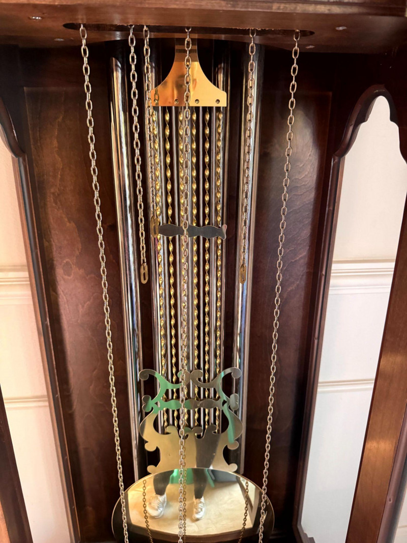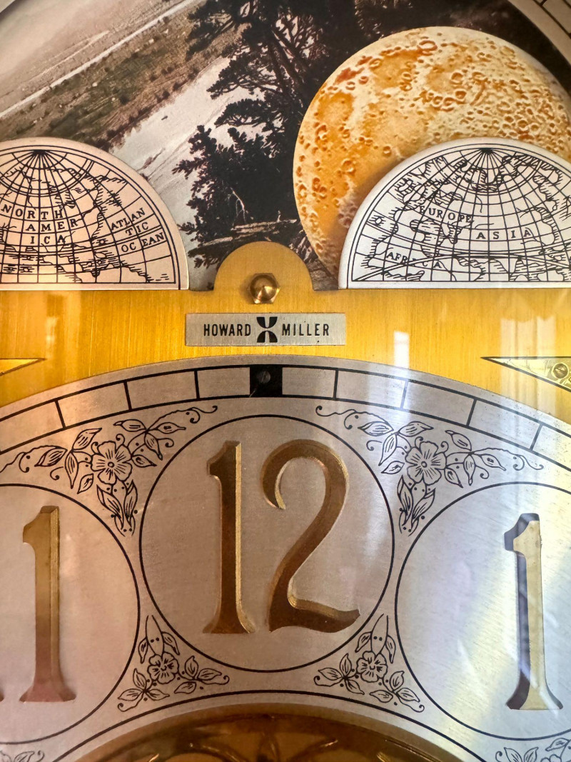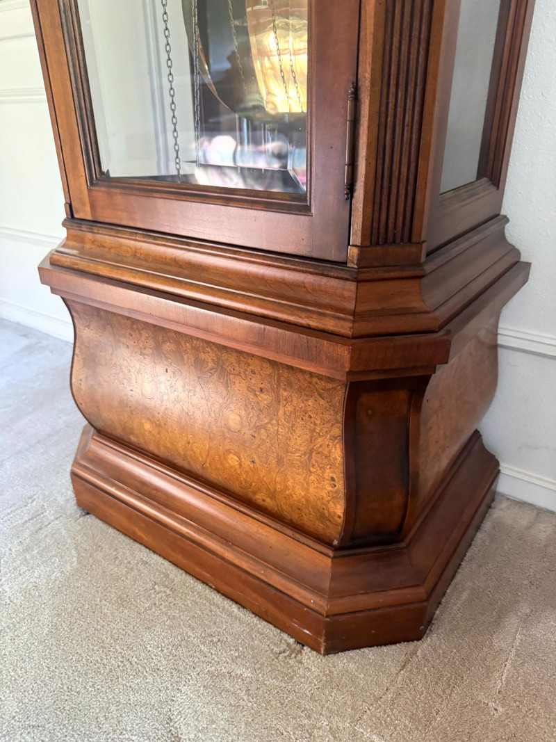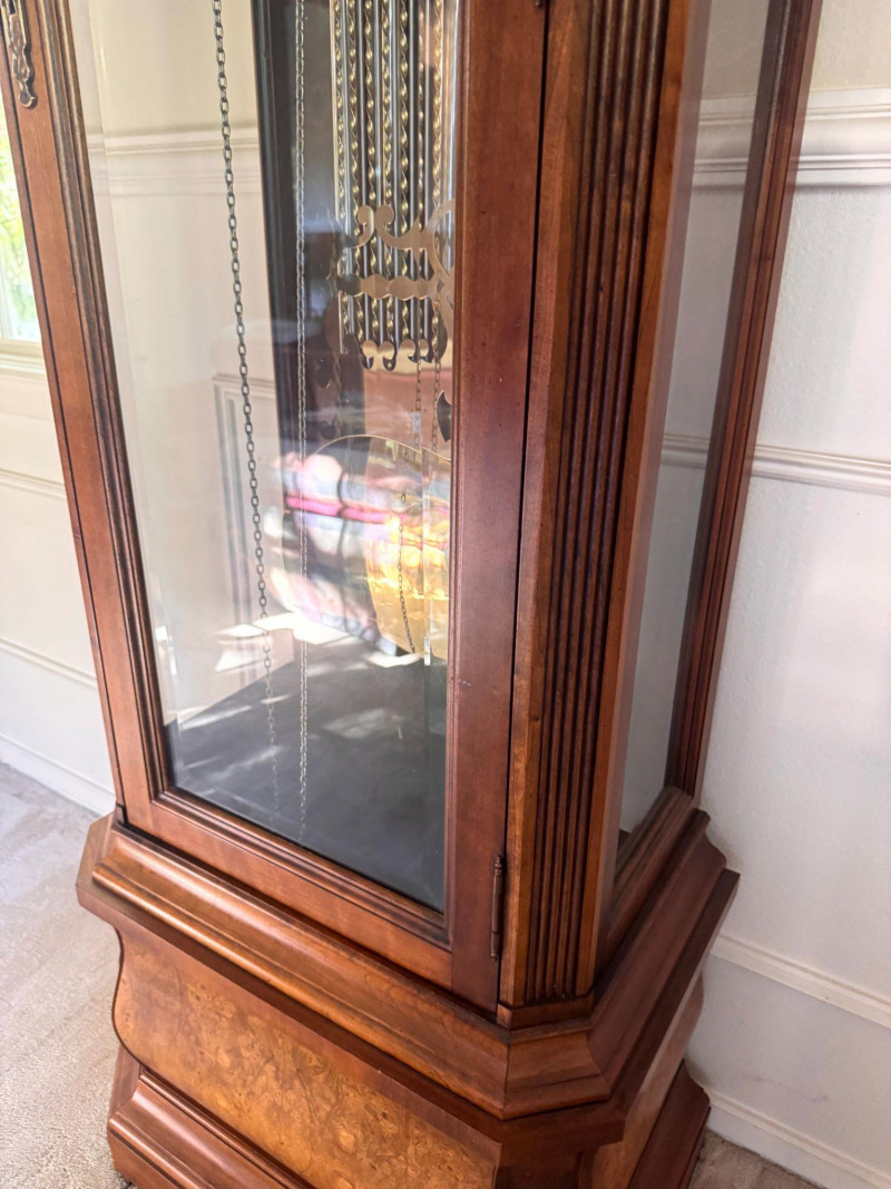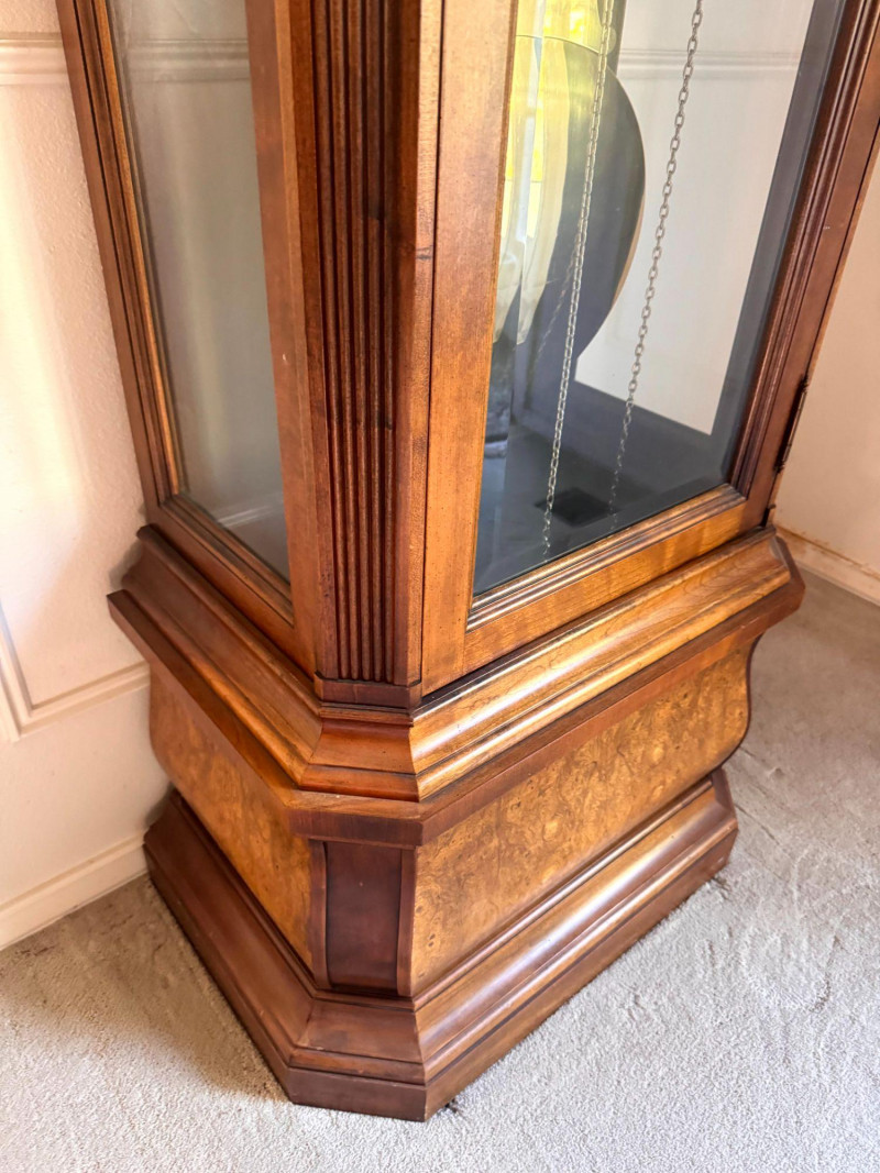 Antique-Style Howard Miller Grandfather Clock w/ Arched Top Design. Bidding on this lot is an agreement that: (1.) You will have at least 2 capable, able bodied persons to lift and load at a minimum. (2.) You will bring a hand truck and/or any other tools needed to remove this item. If these steps are not followed your item will be forfeit and no refund given.