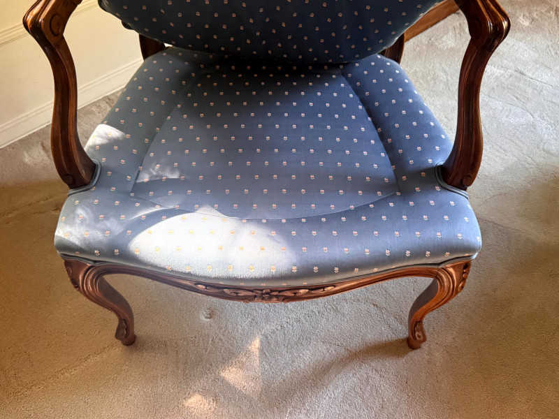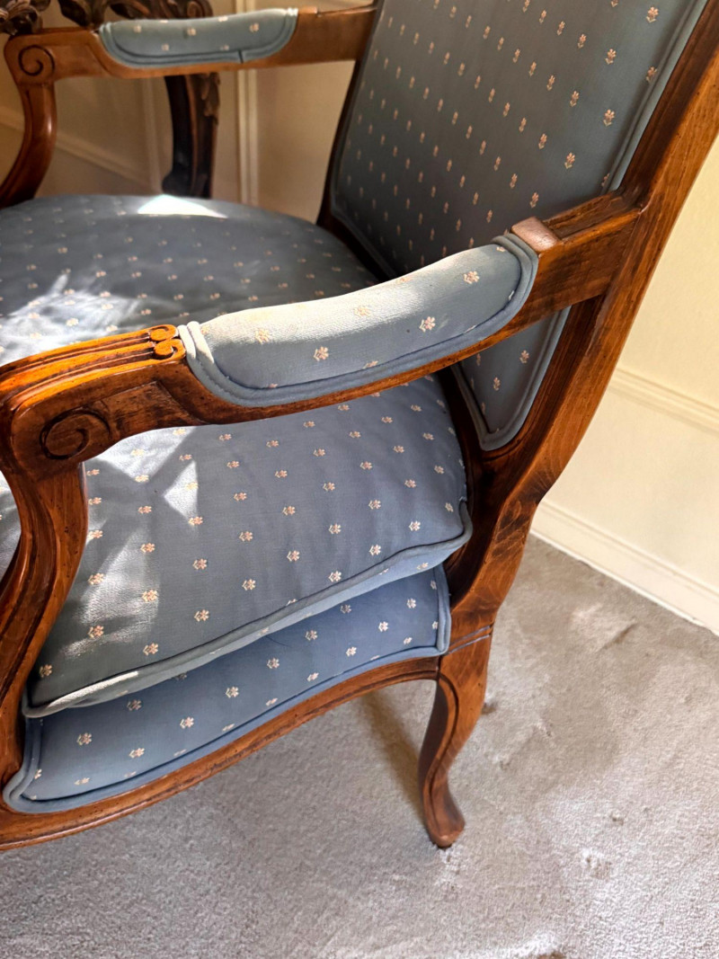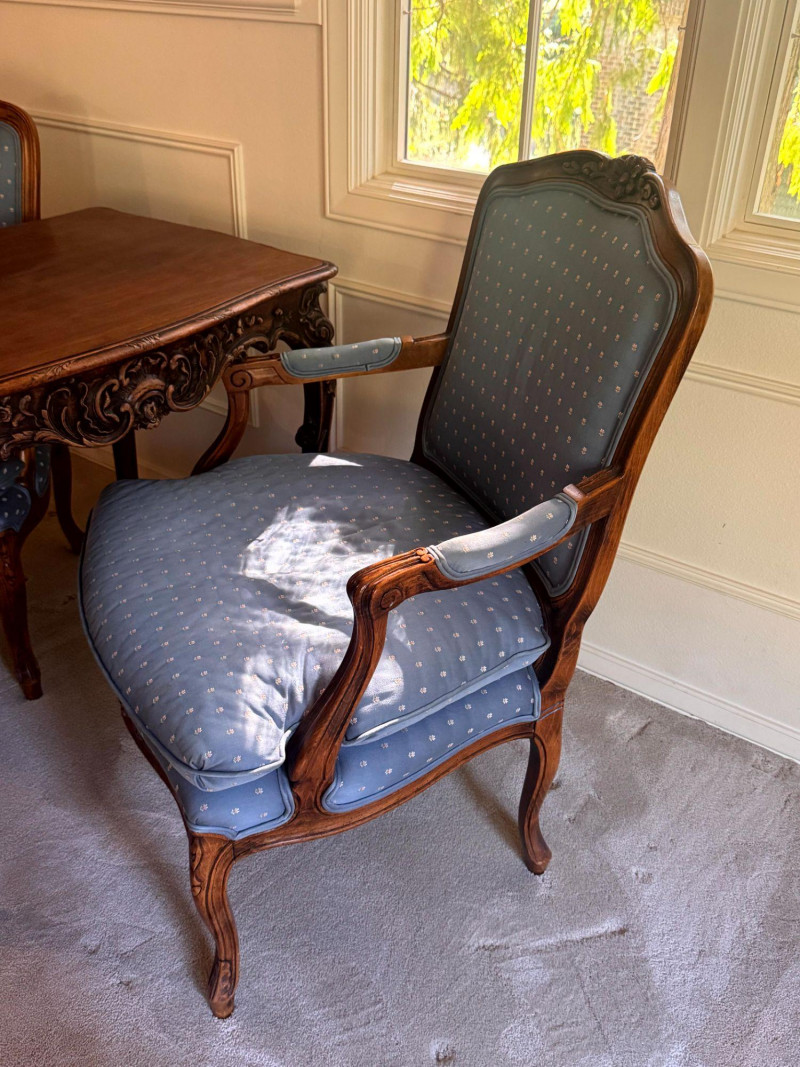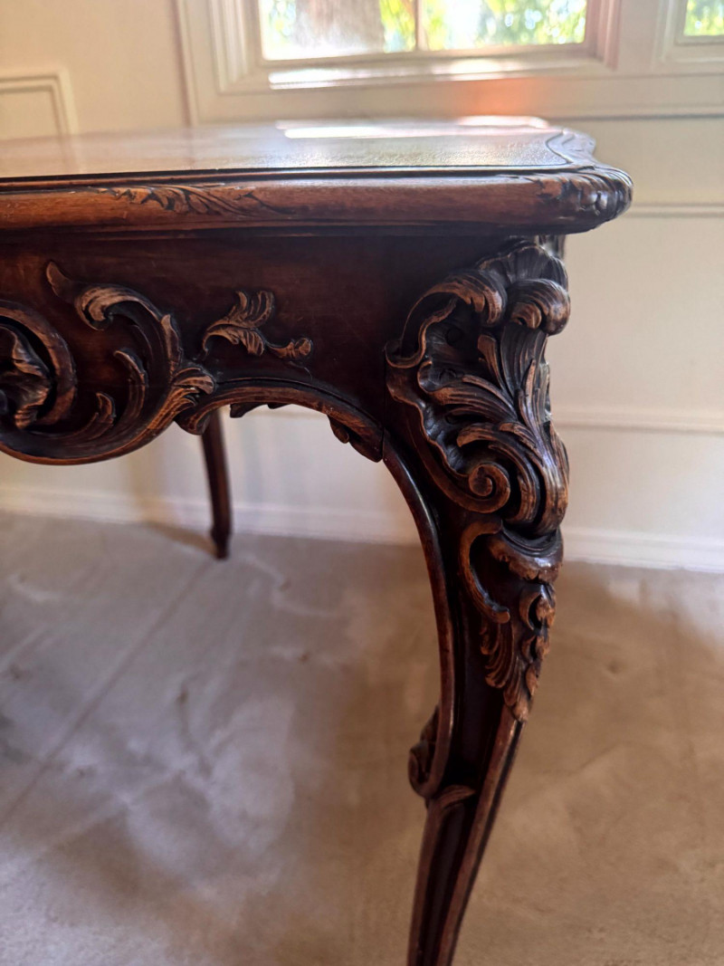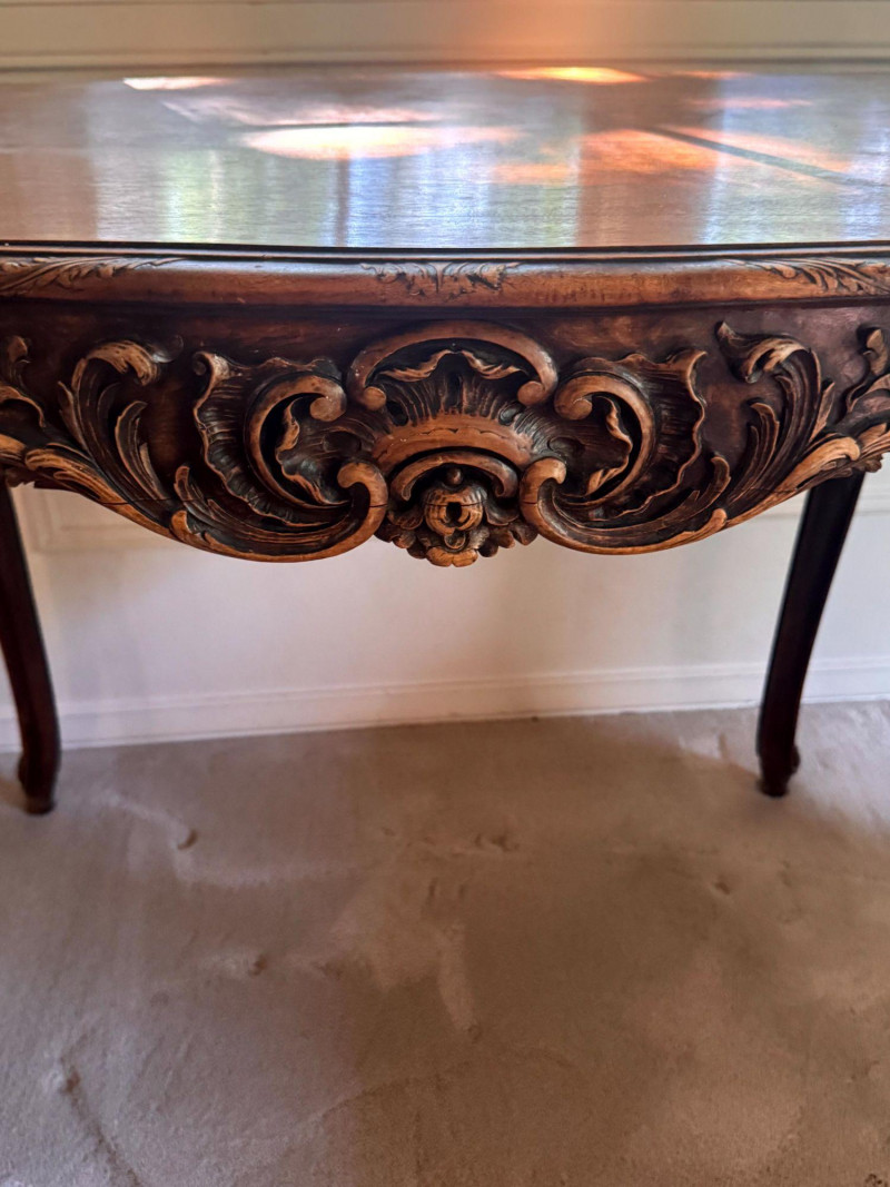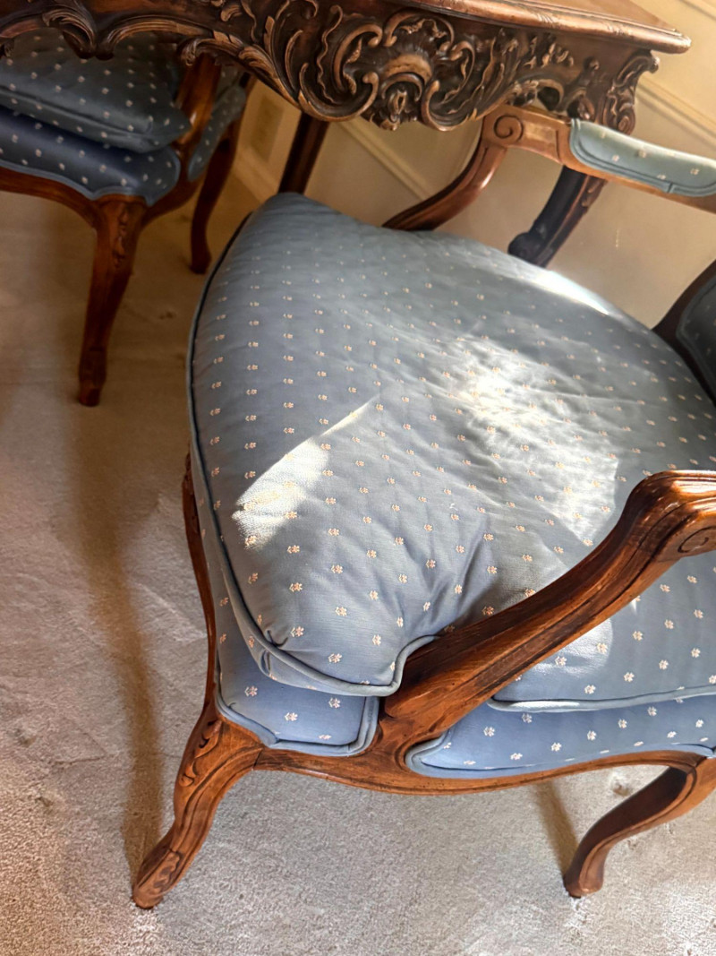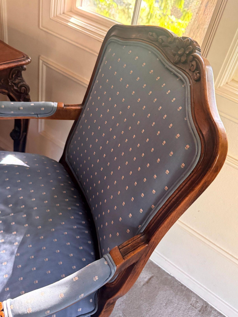 Lot # 30 - Antique Carved Side Table w/ 2 Antique French Louis Style Armchairs