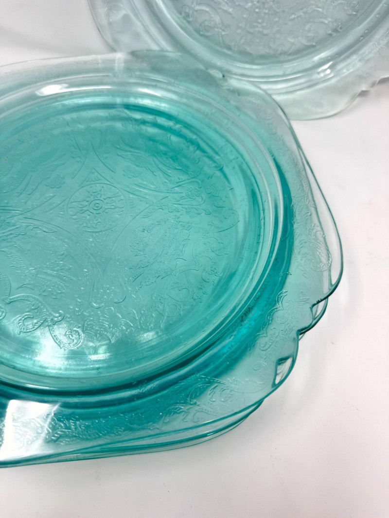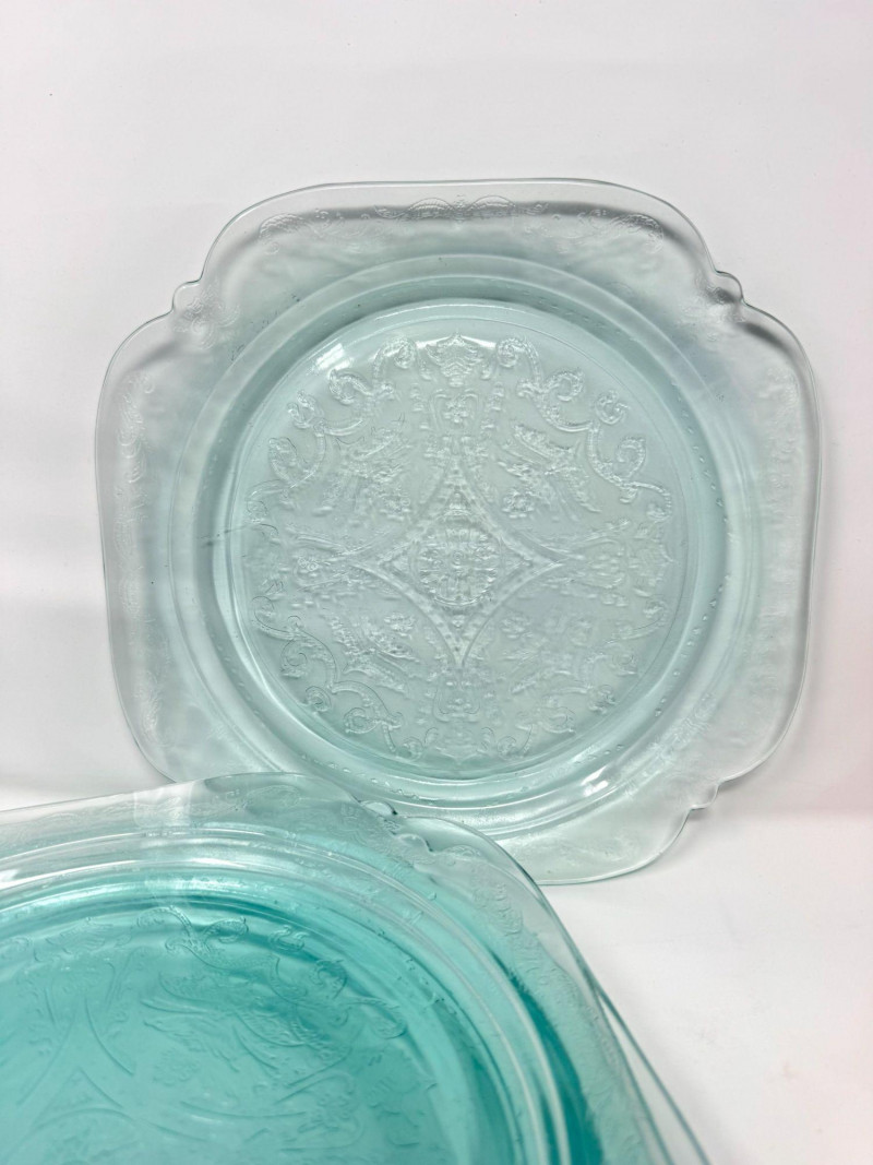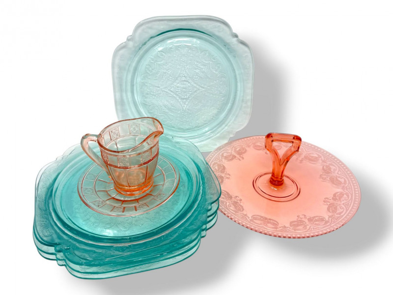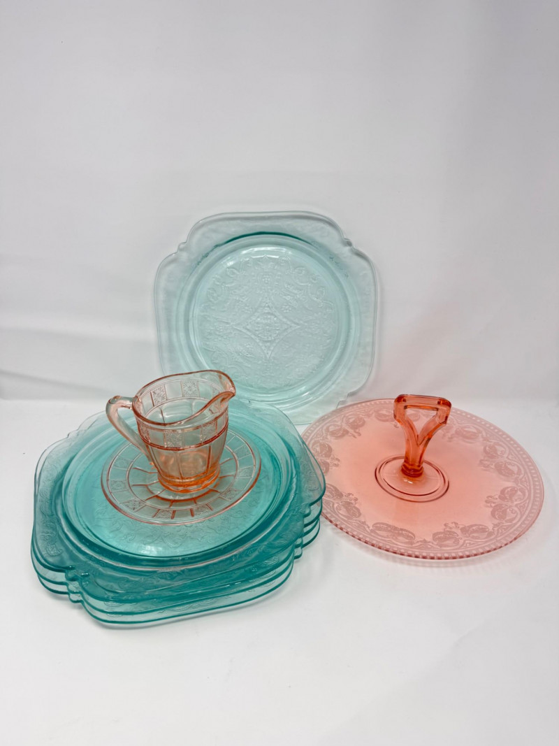 Lot # 35 - Pink & Teal Depression Glass Serving Set w/ Plates & Mini Pitcher