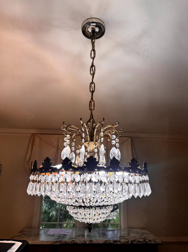 Lot # 42 - Vintage Hanging Chandelier w/ Tiered Plastic Crystal Drops