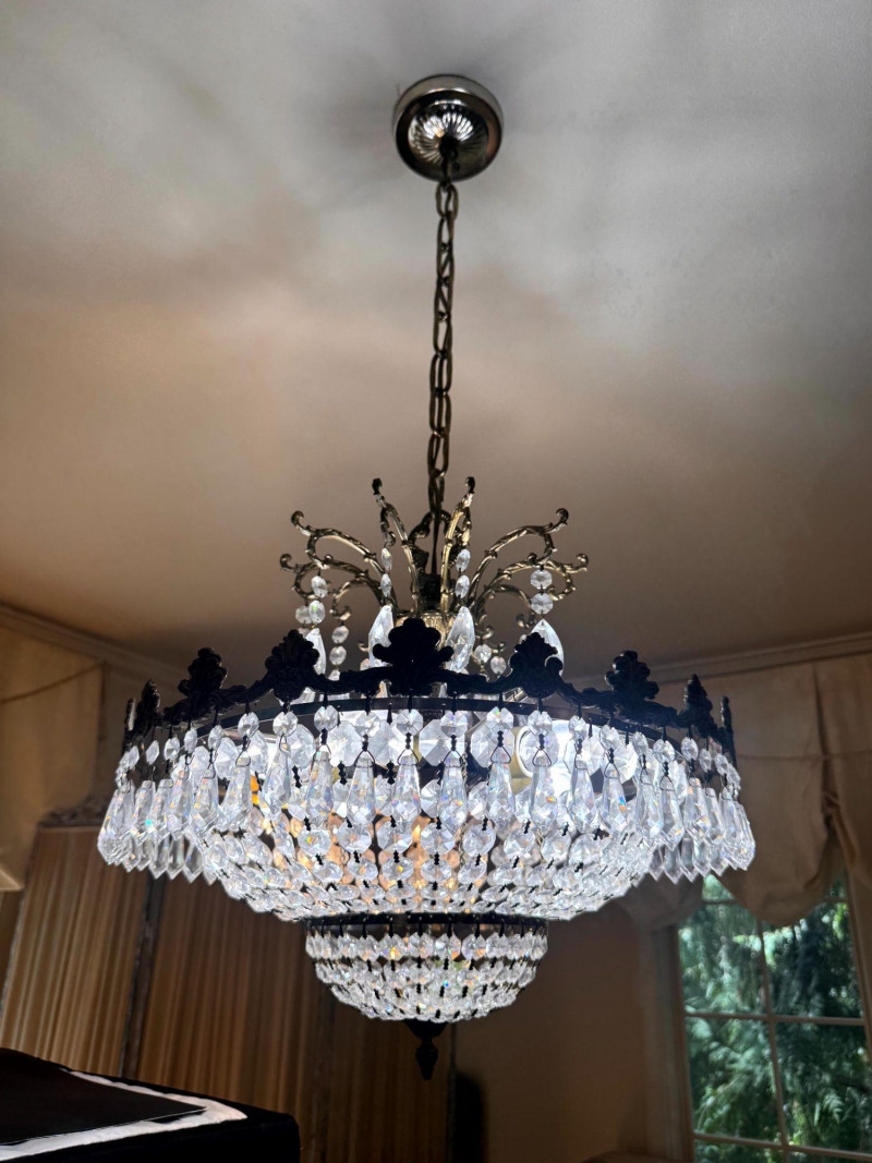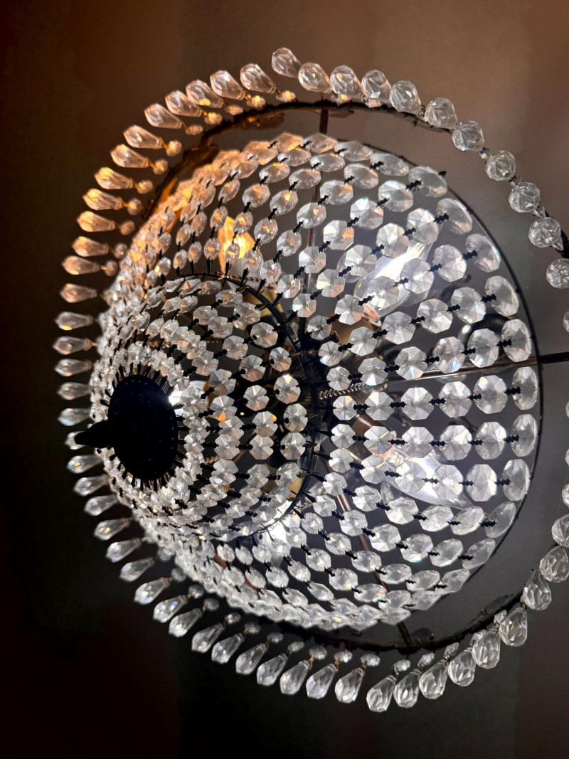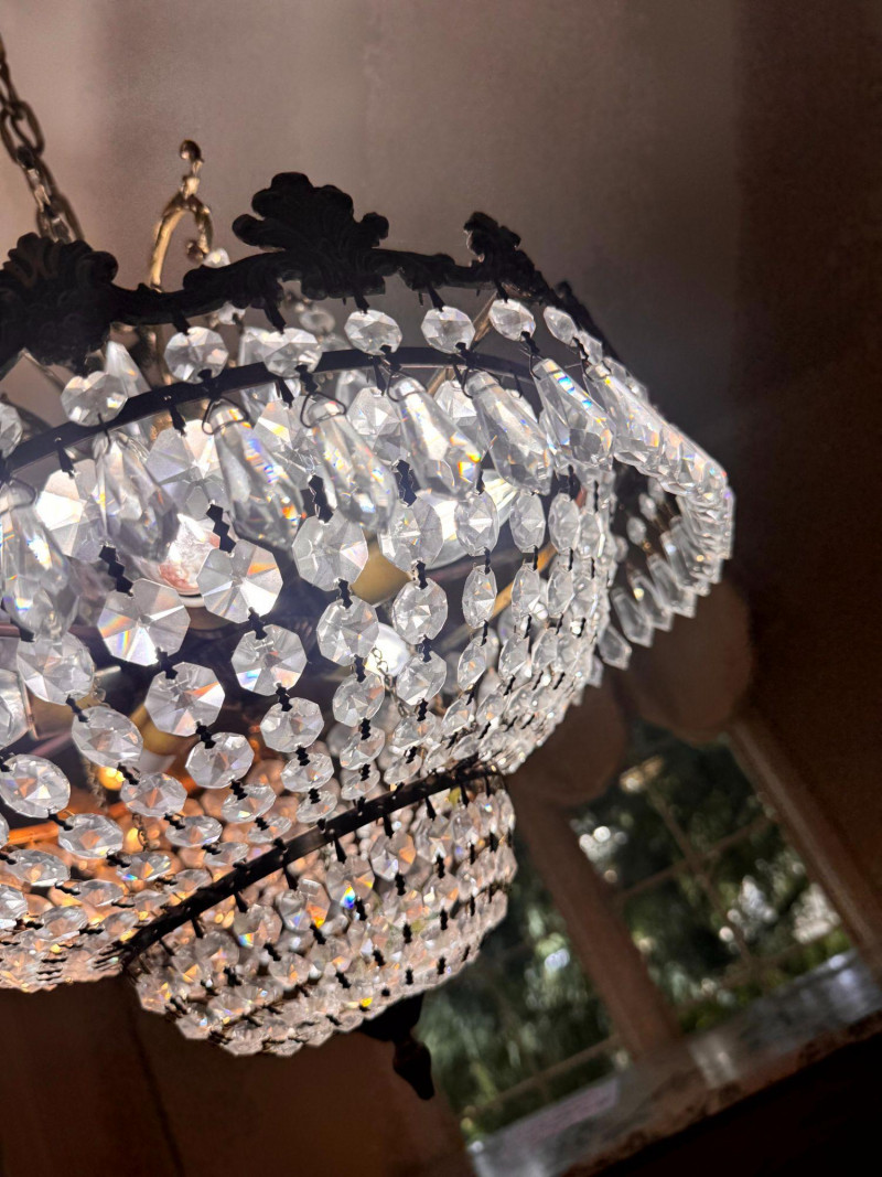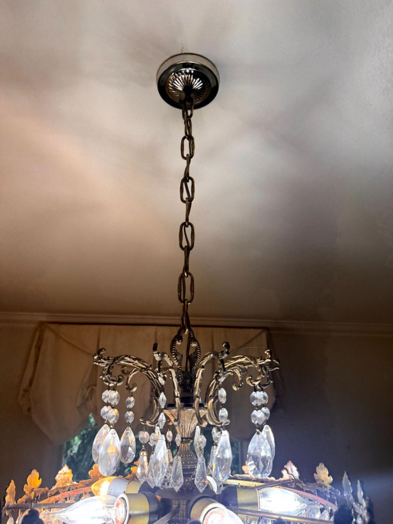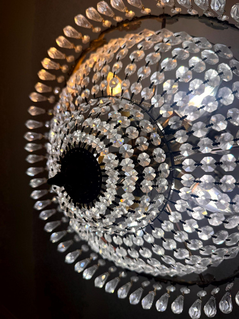 Vintage Hanging Chandelier w/ Tiered Plastic Crystal Drops