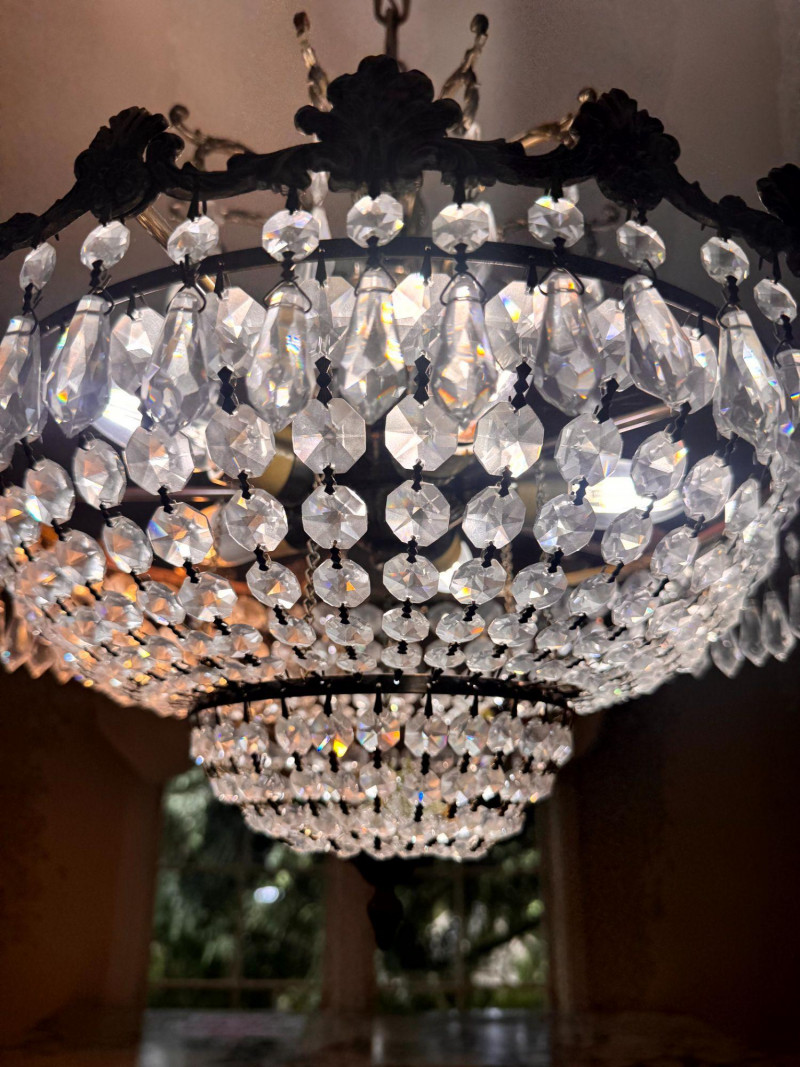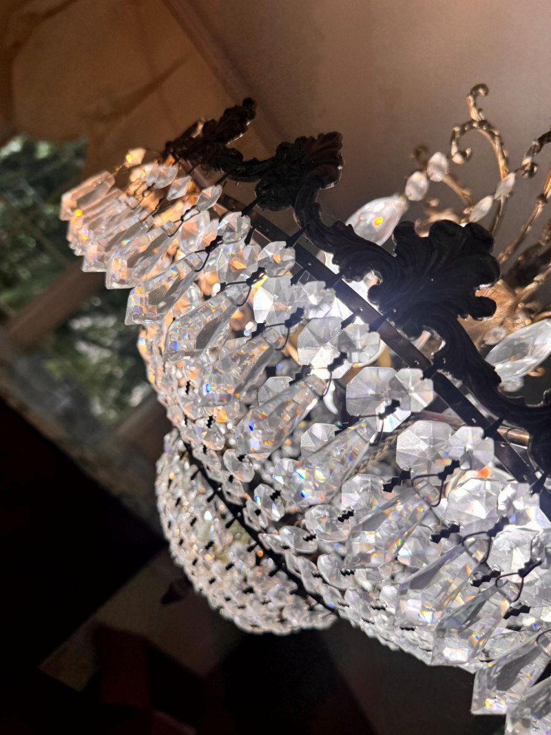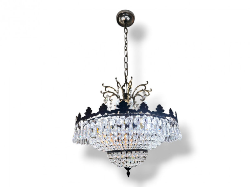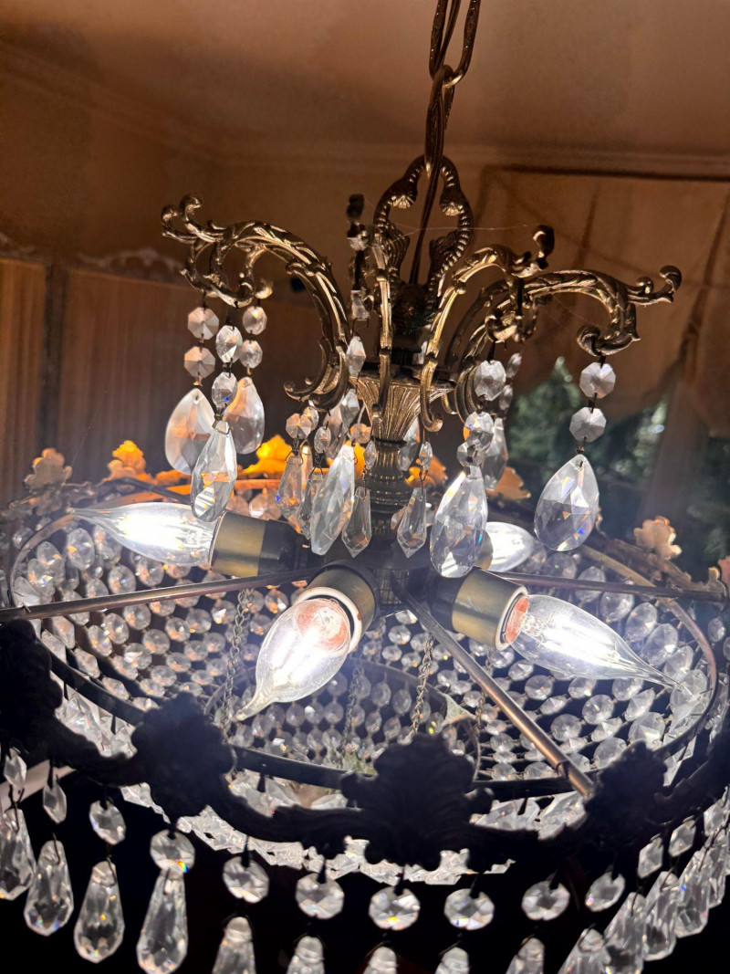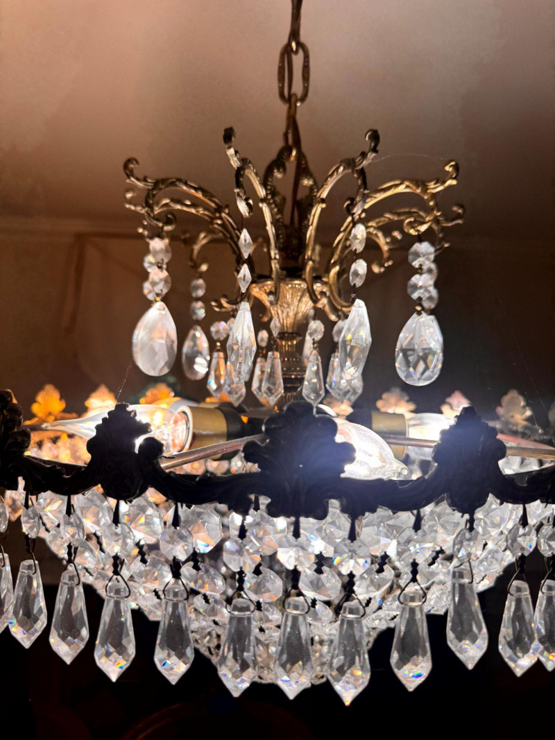 Vintage Hanging Chandelier w/ Tiered Plastic Crystal Drops