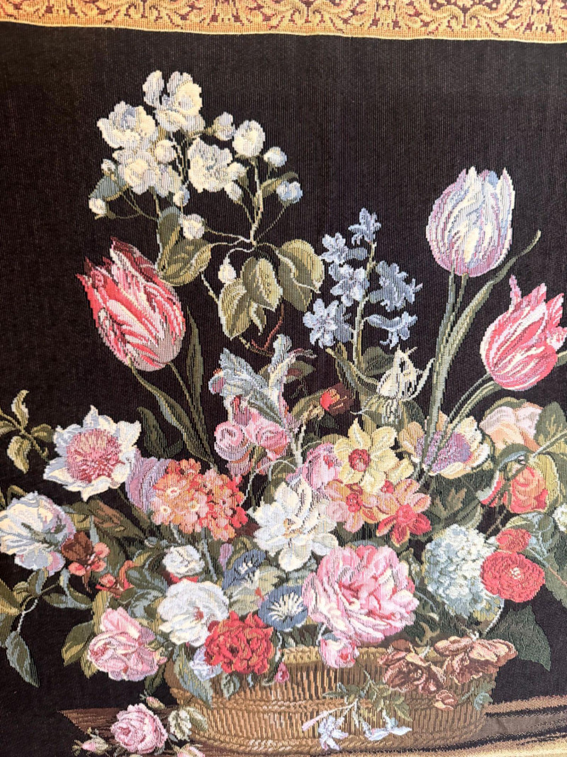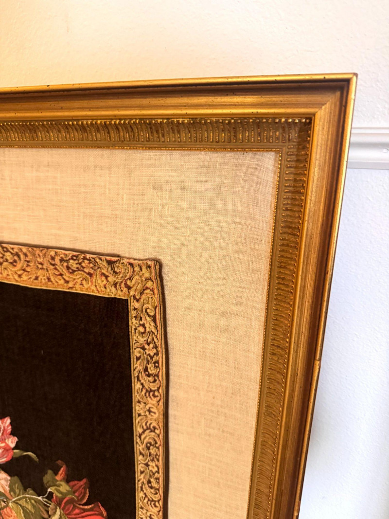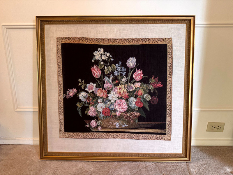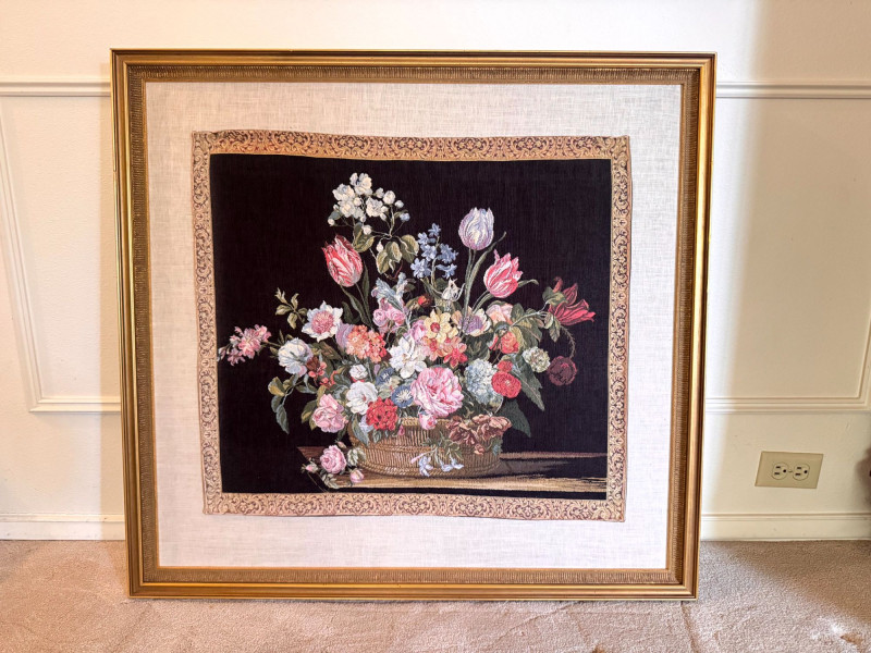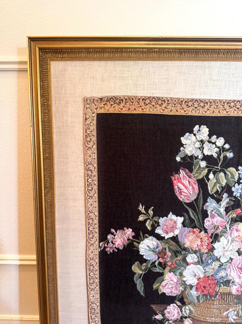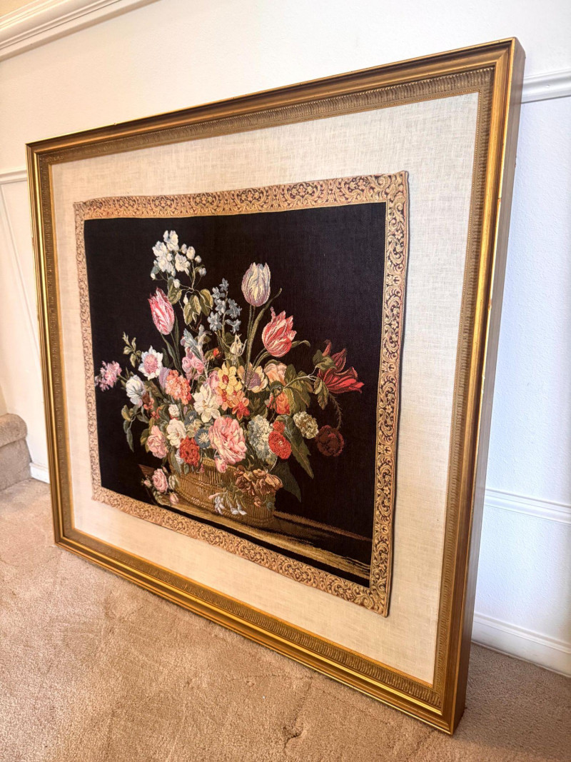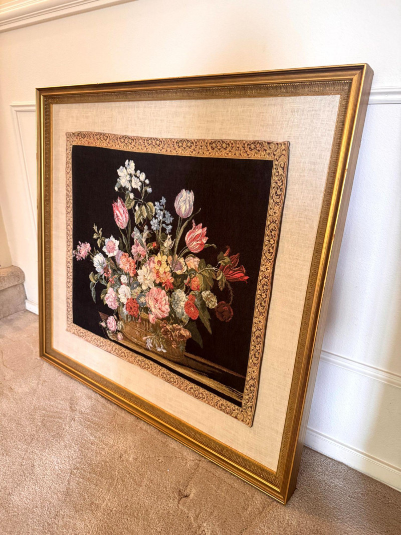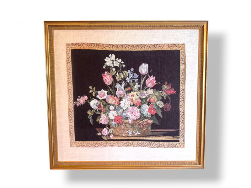Large Framed Floral Tapestry - French Style Bouquet in Gold Frame.
