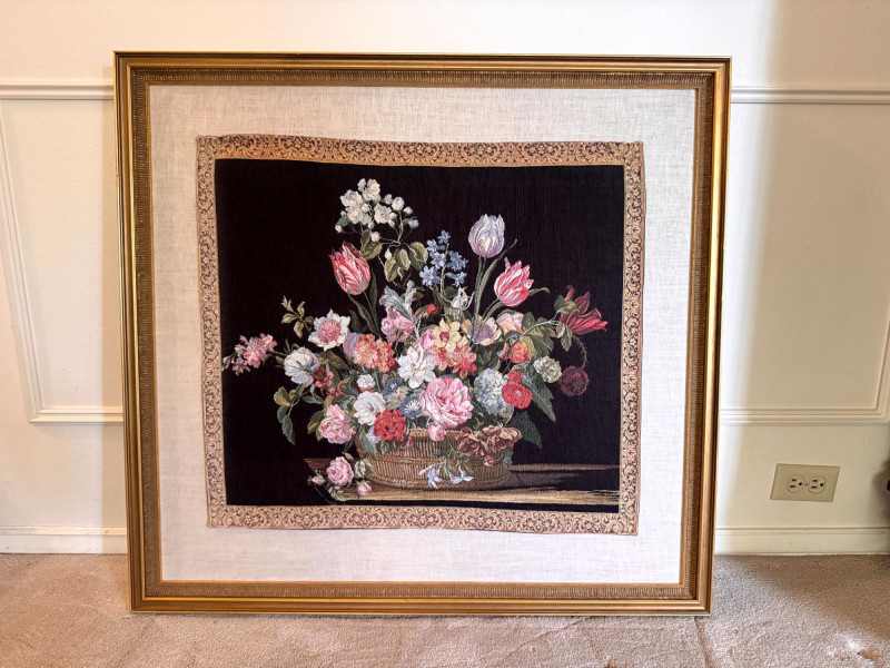Lot # 49 - Large Framed Floral Tapestry - French Style Bouquet in Gold Frame