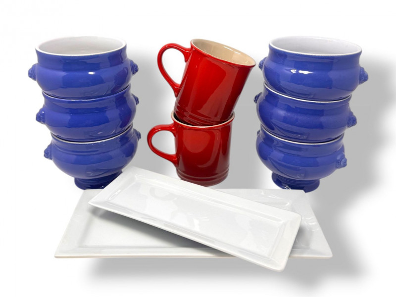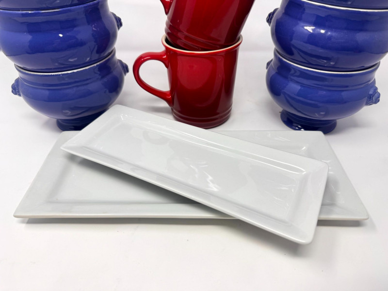 Lot # 51 - Le Creuset Mugs (Like New), Emile Henry Bowls, & Sur La Table Platters