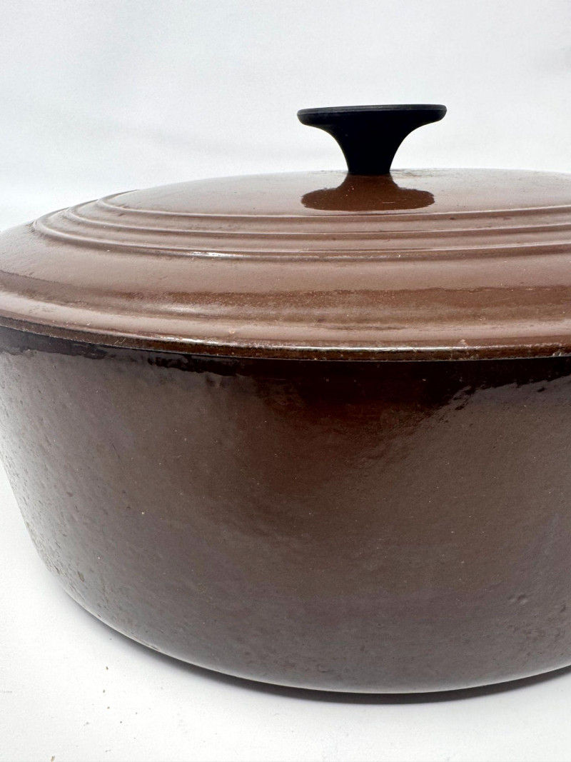 Large Vintage Le Creuset “G” Brown Oval Dutch Oven w/ Lid - France.