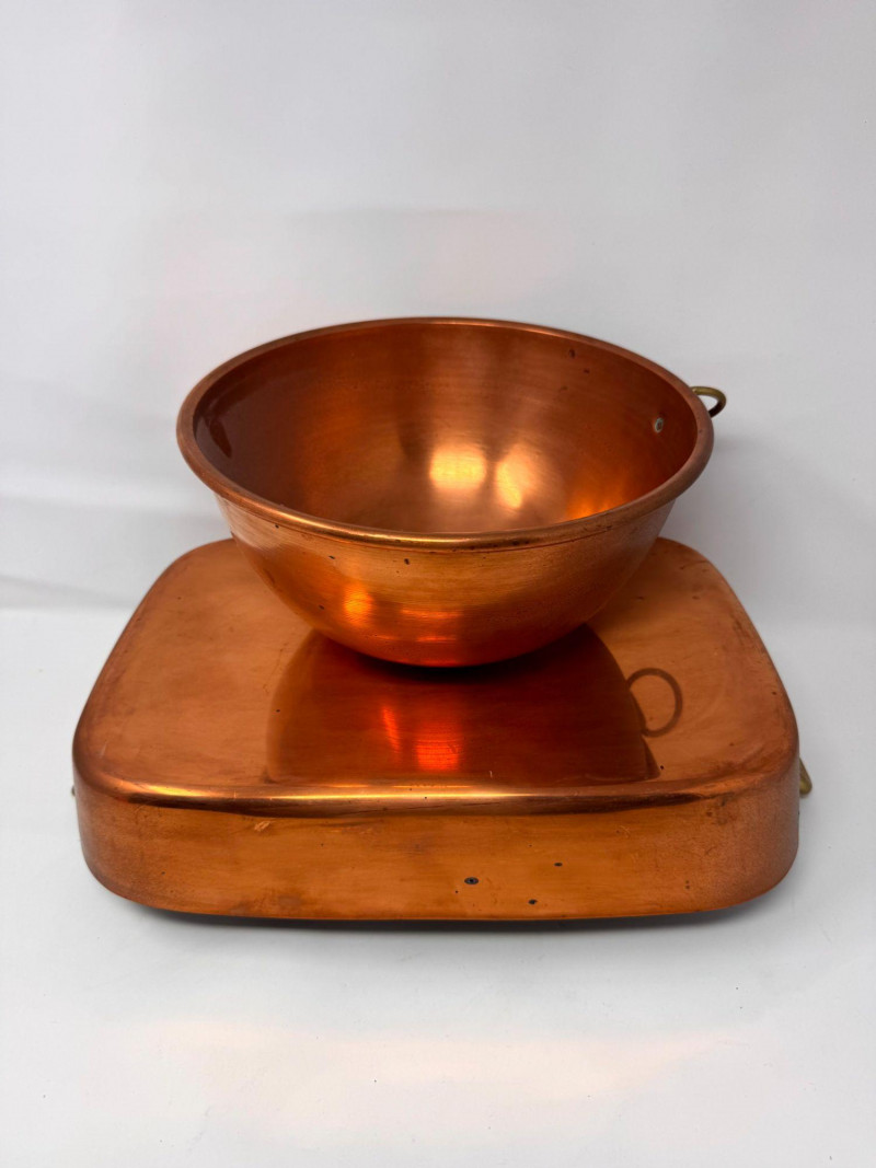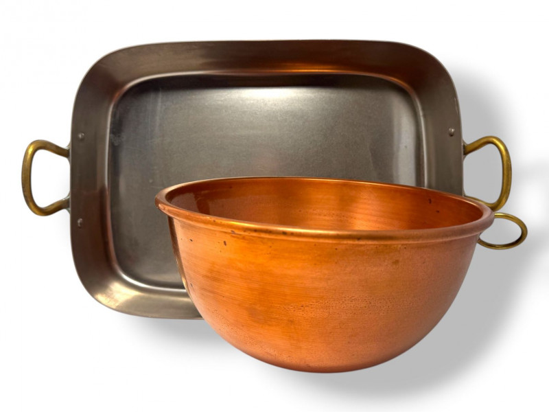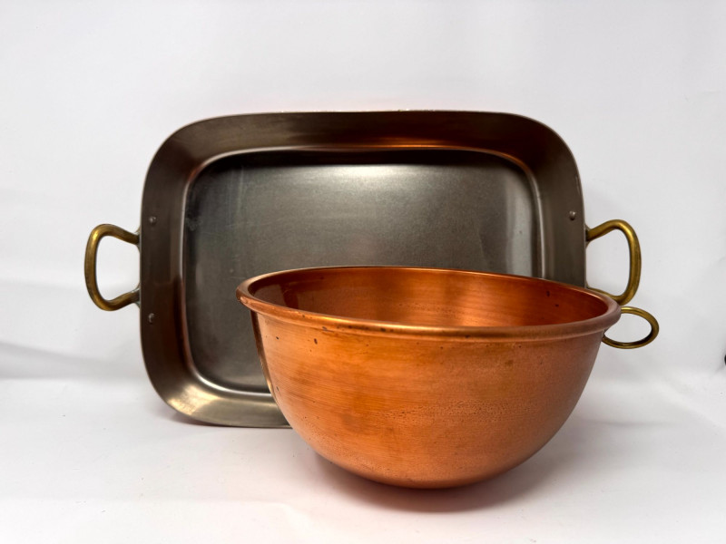 Vintage Copper Mixing Bowl & Rectangular Turkey Roasting Pan - Large.