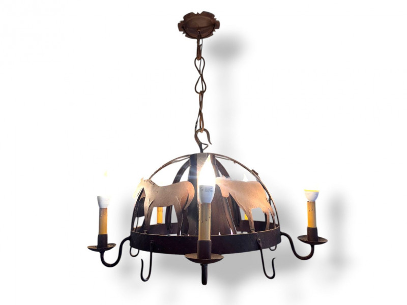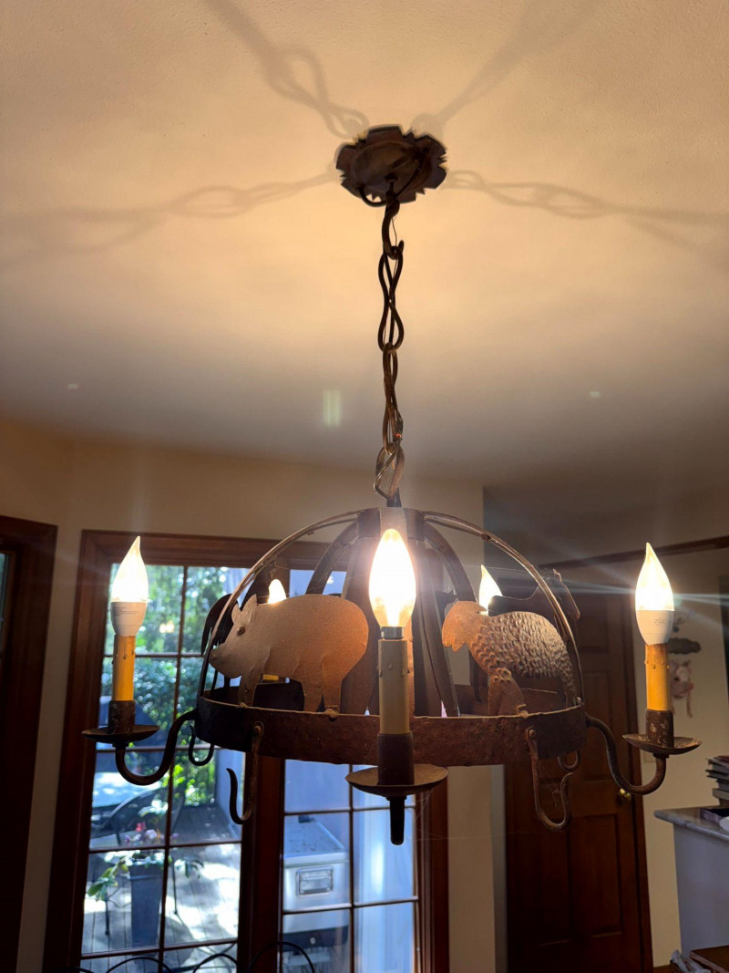 Lot # 68 - Rustic Iron Chandelier Farmhouse Animal Motif w/ Hooks