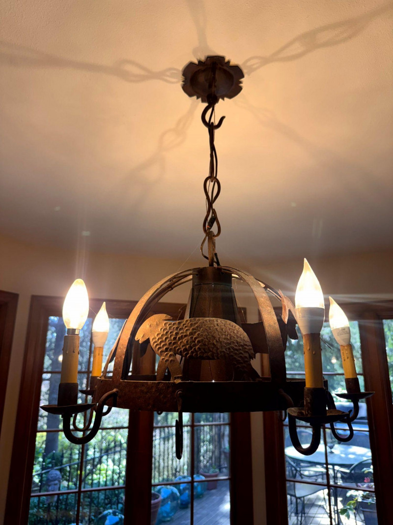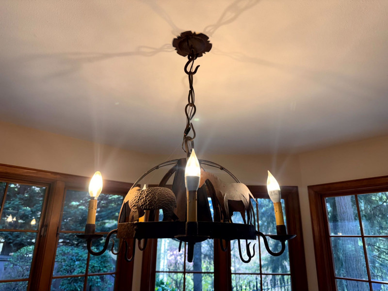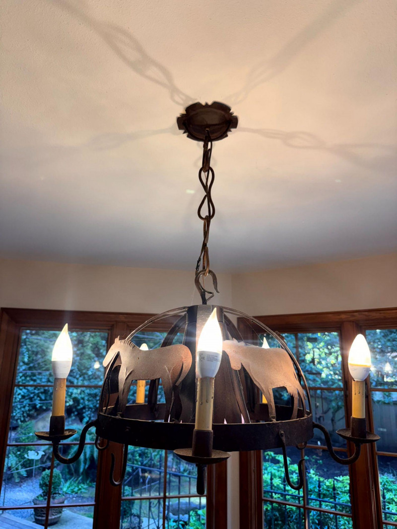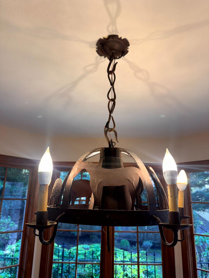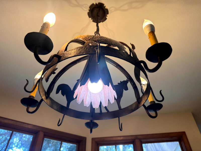Rustic Iron Chandelier Farmhouse Animal Motif w/ Hooks.