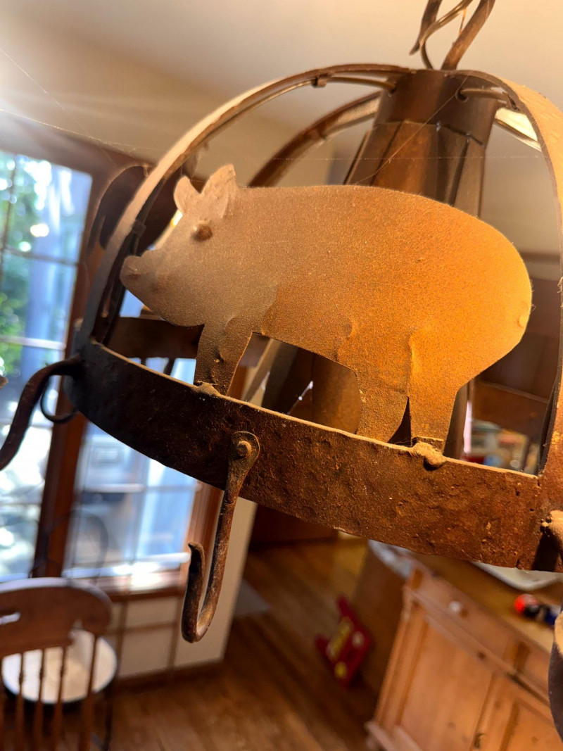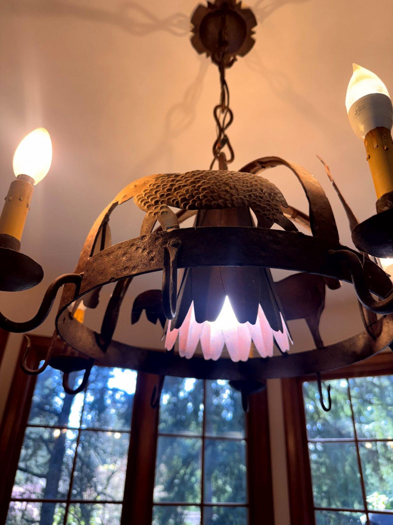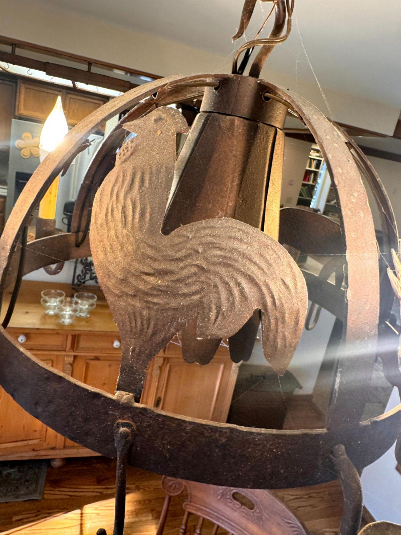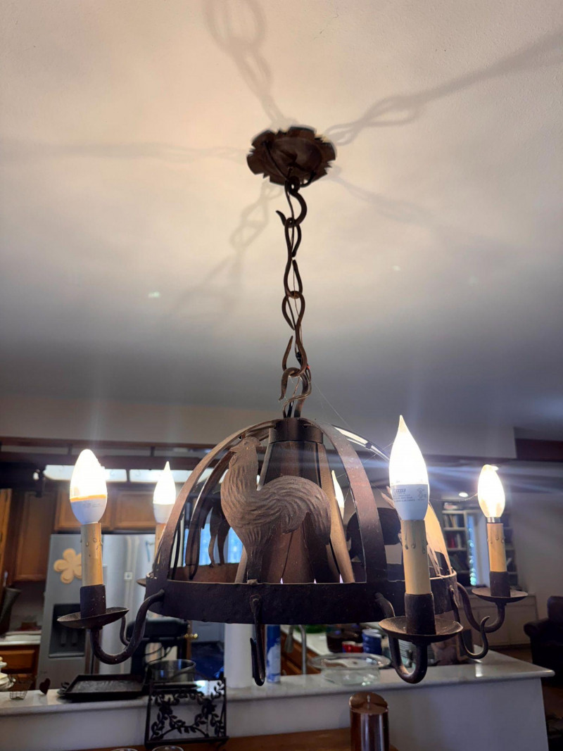 Rustic Iron Chandelier Farmhouse Animal Motif w/ Hooks.