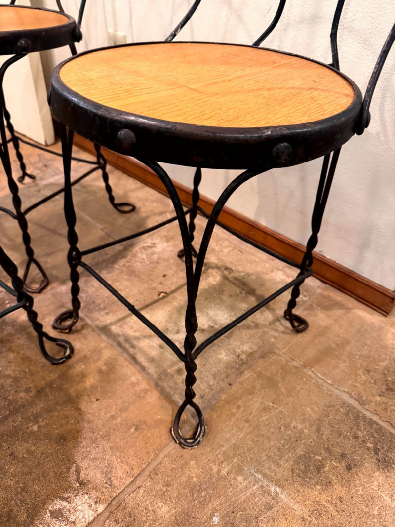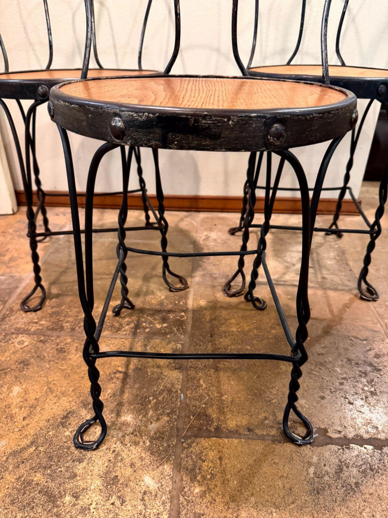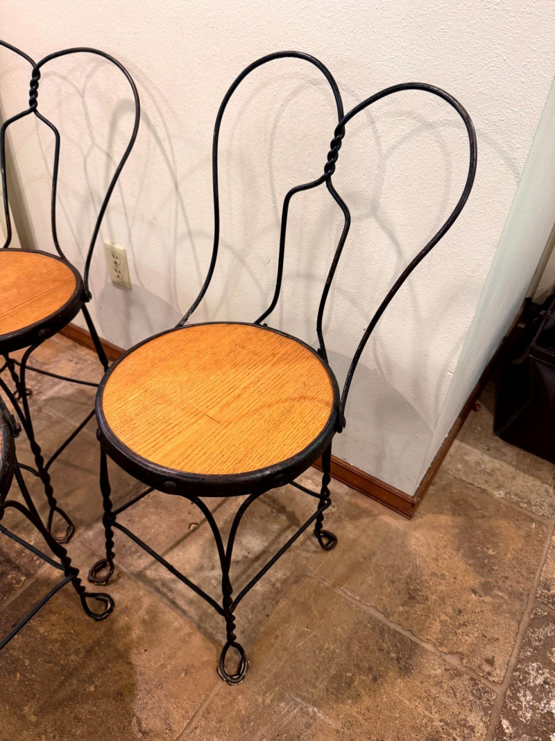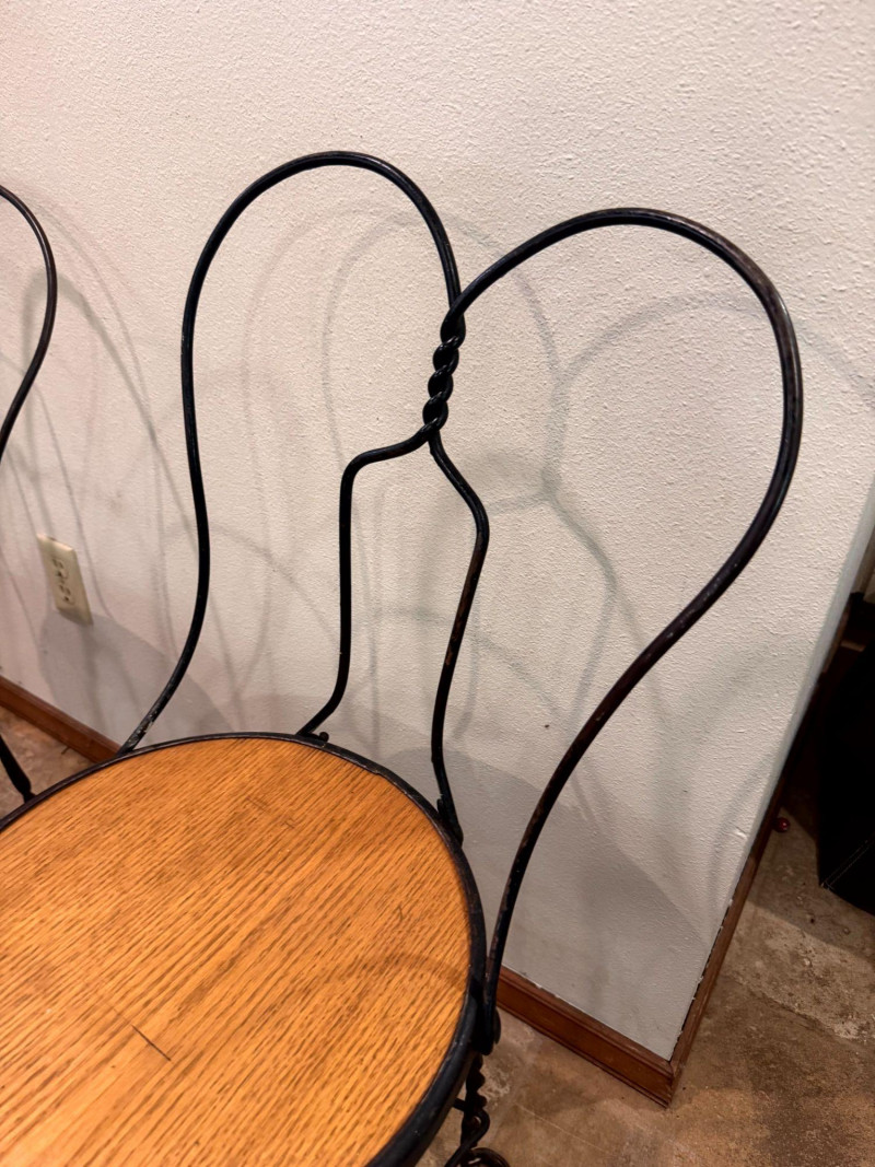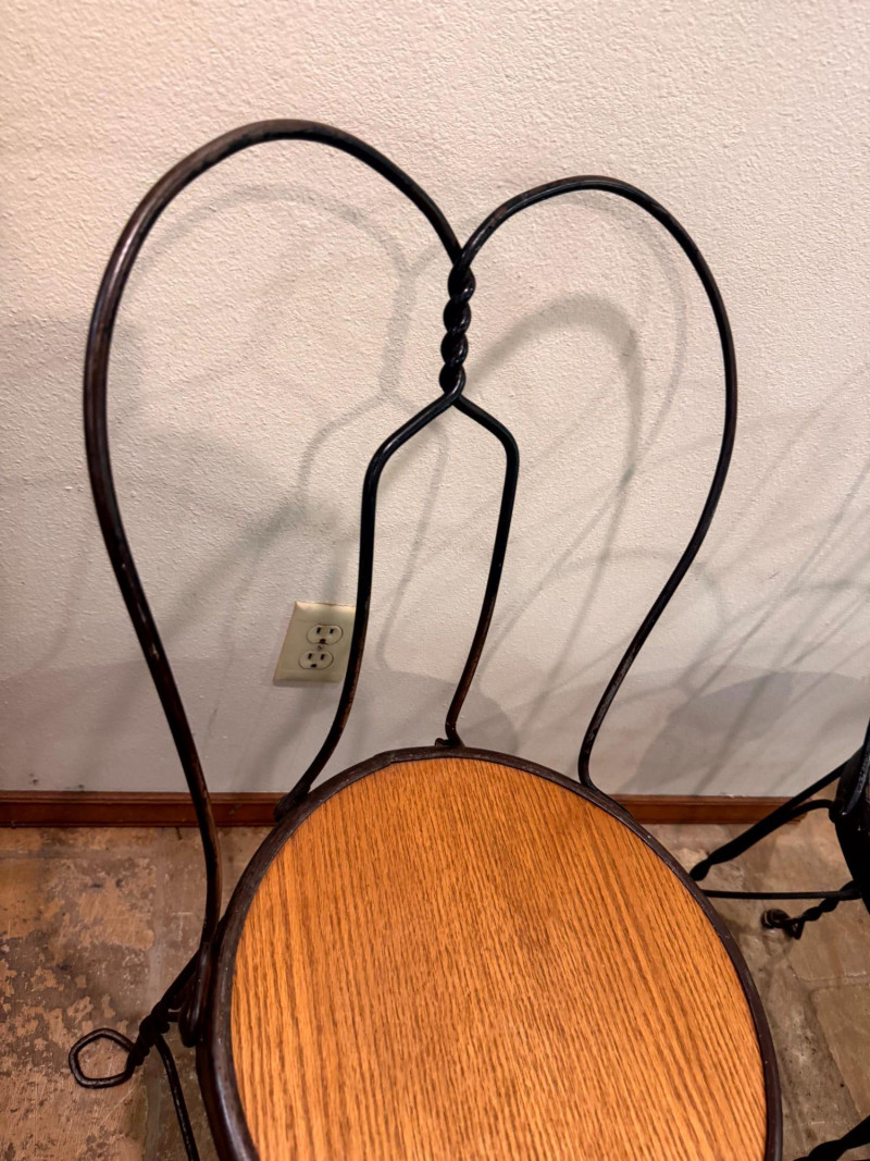 Antique Wrought Iron Chairs w/ Heart Back & Twisted Legs.