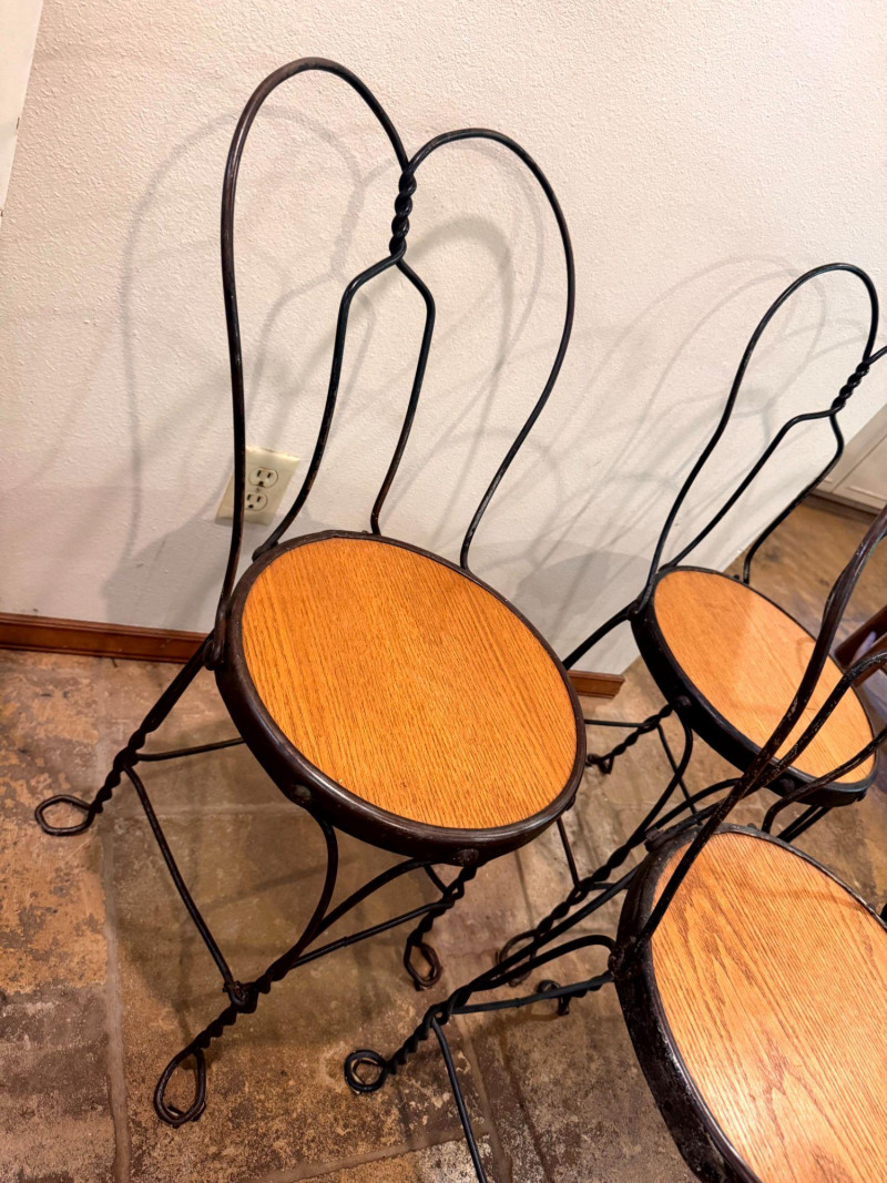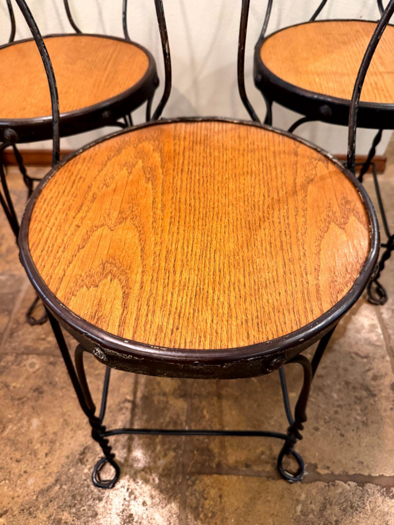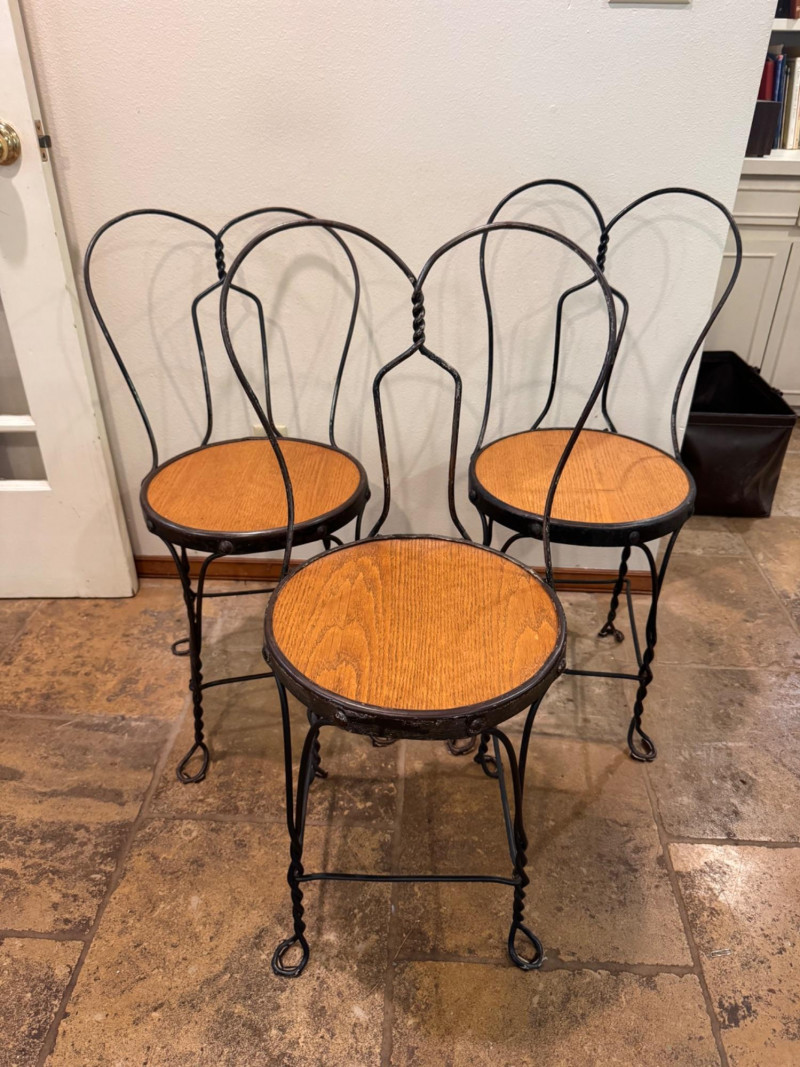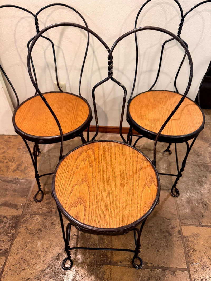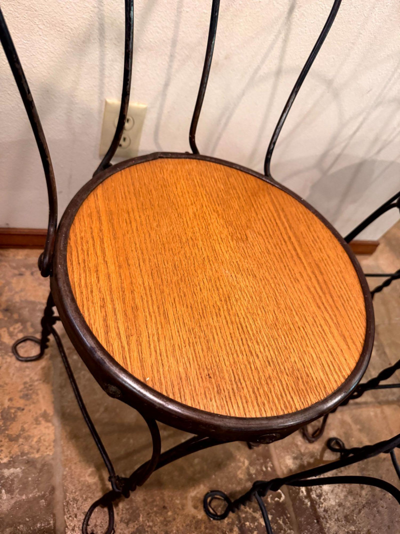 Antique Wrought Iron Chairs w/ Heart Back & Twisted Legs.