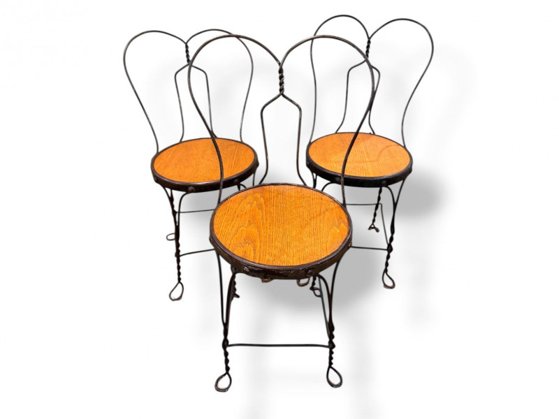 Lot # 71 - Antique Wrought Iron Chairs w/ Heart Back & Twisted Legs