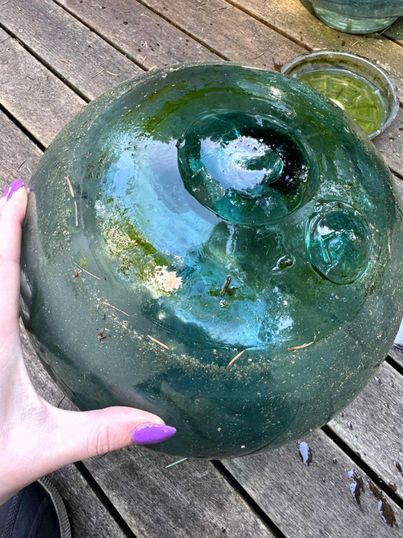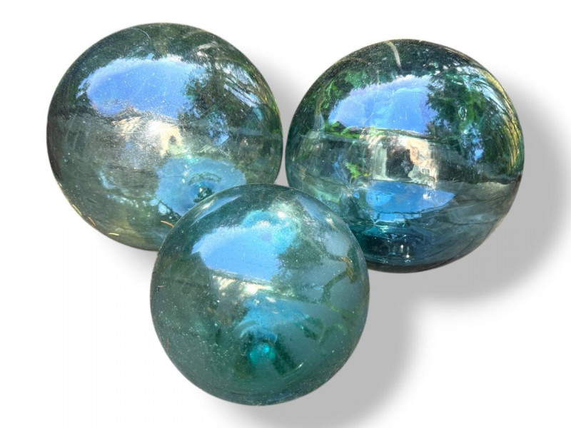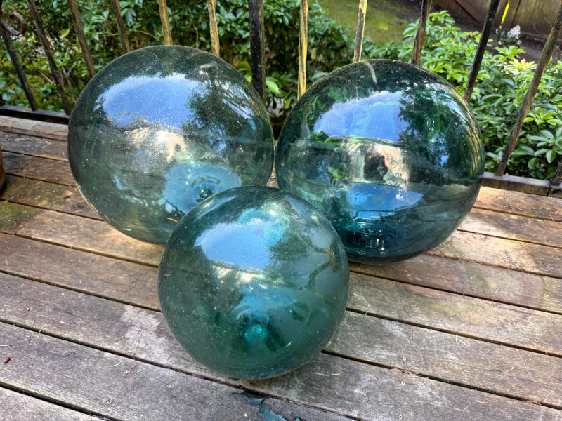 Extra Large Vintage Green Glass Fishing Floats (3) - Set 2.