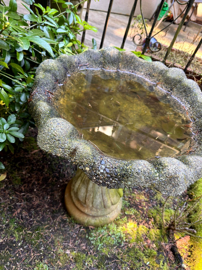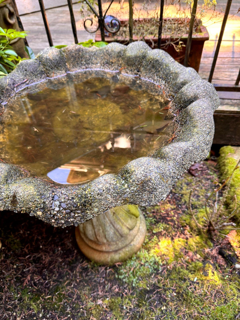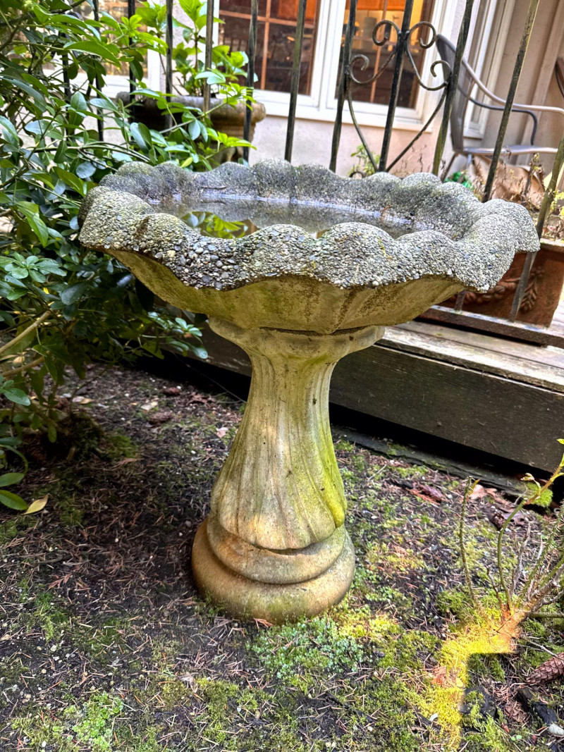 Lot # 77 - Concrete Garden Bird Bath w/ Scalloped Basin
