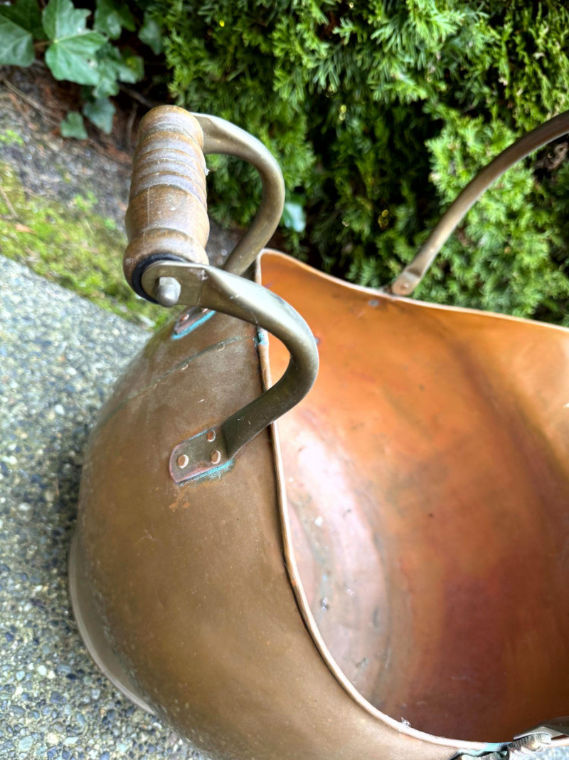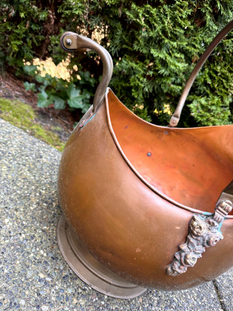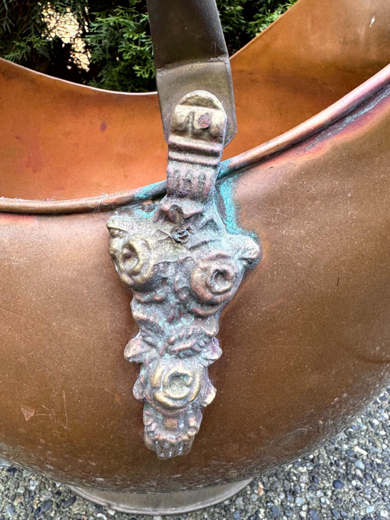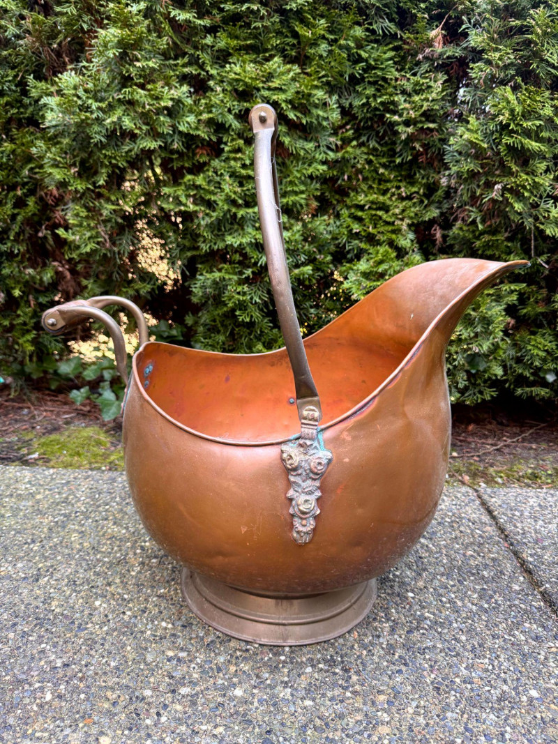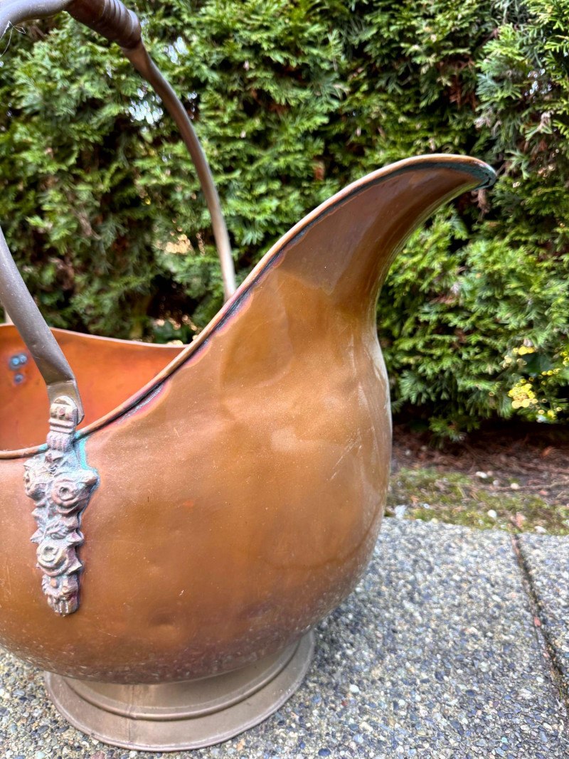 Oversized Copper Coal Scuttle Bucket w/ Handle.