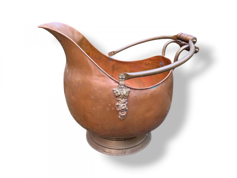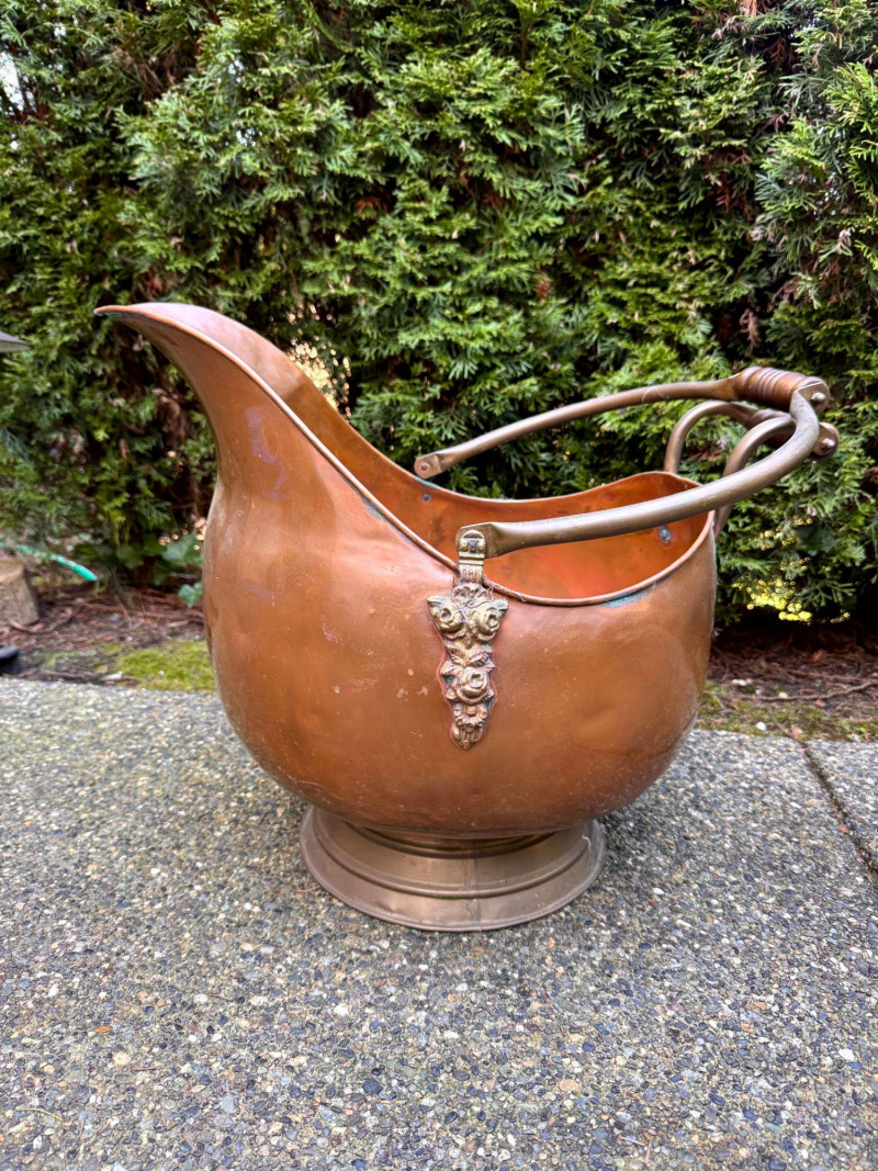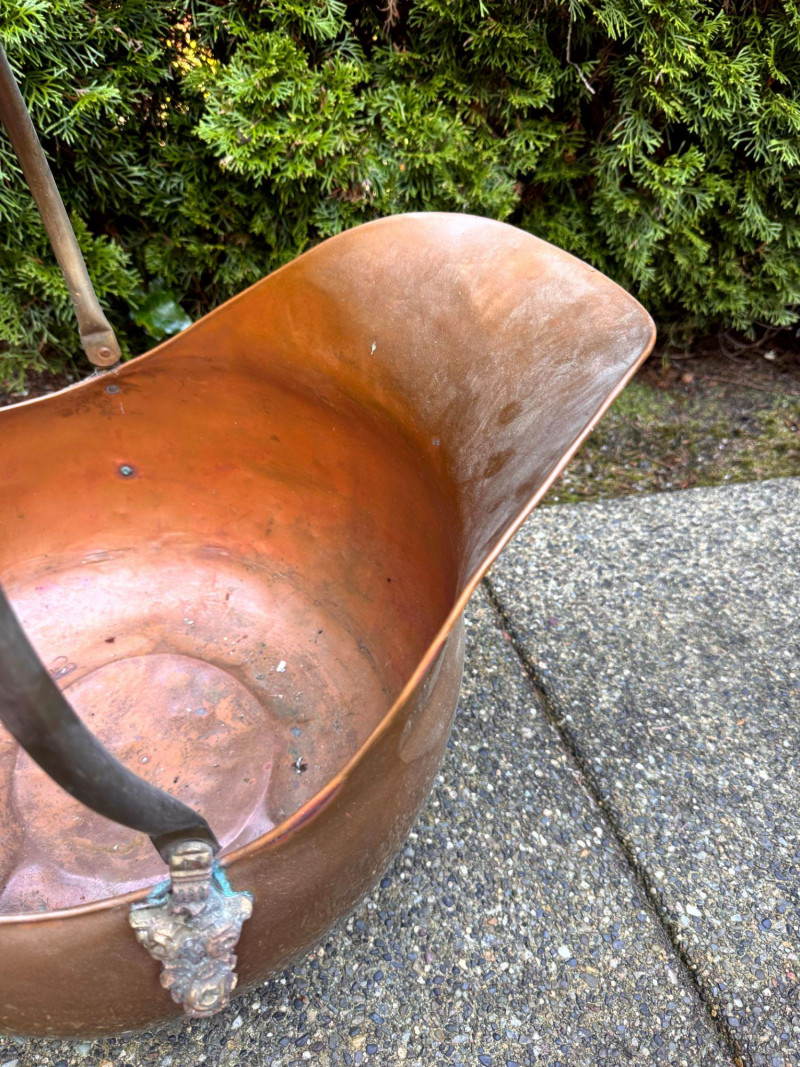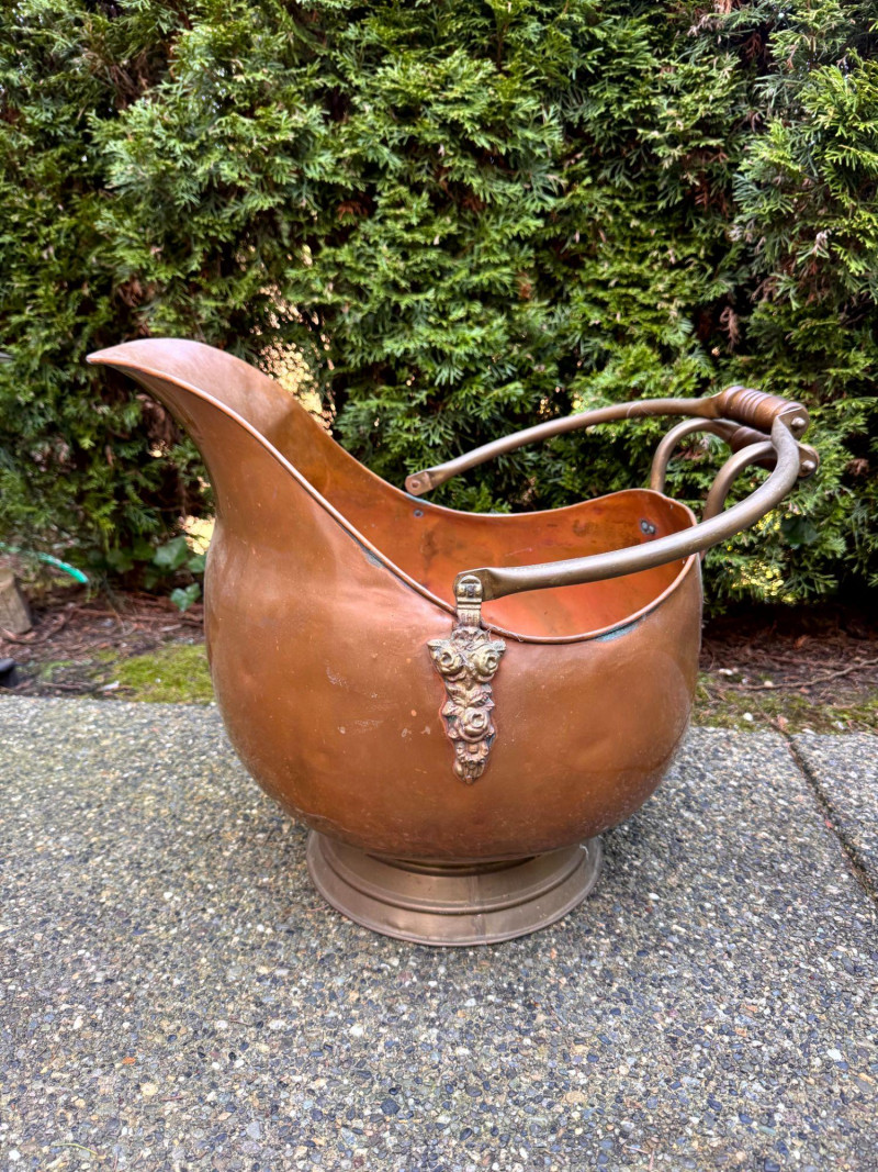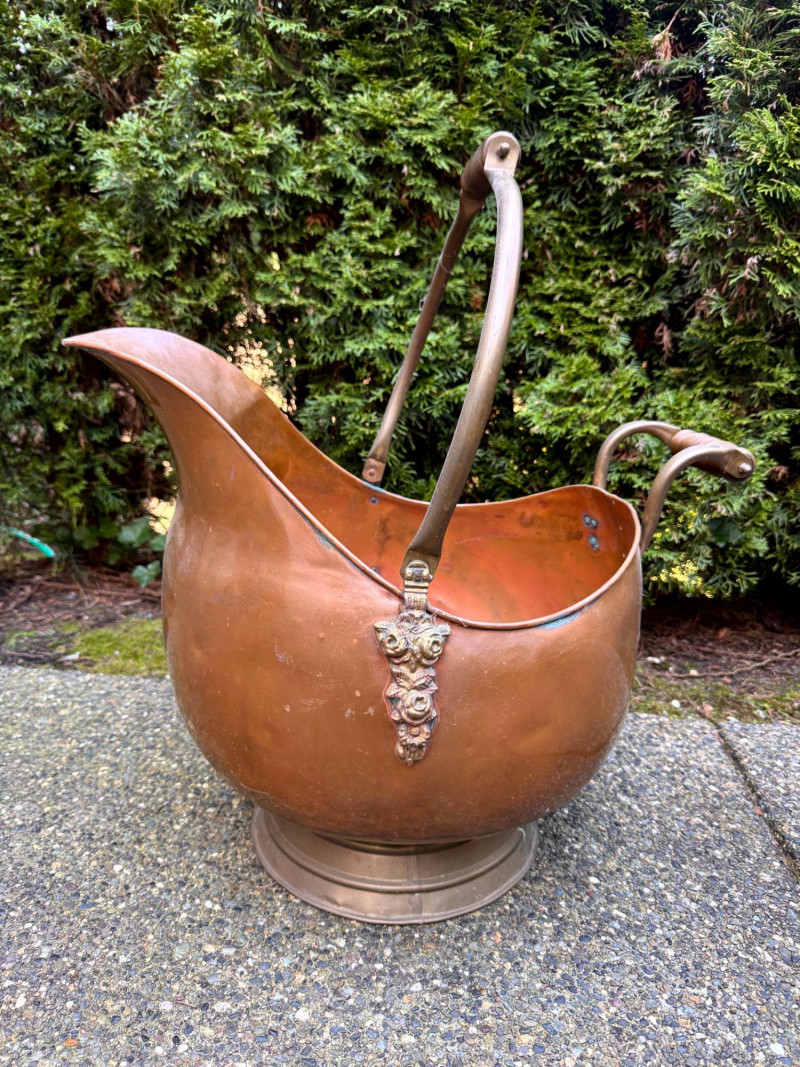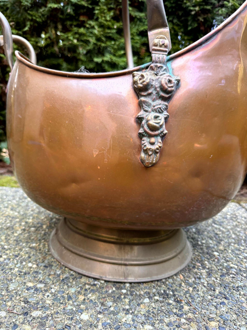 Oversized Copper Coal Scuttle Bucket w/ Handle.