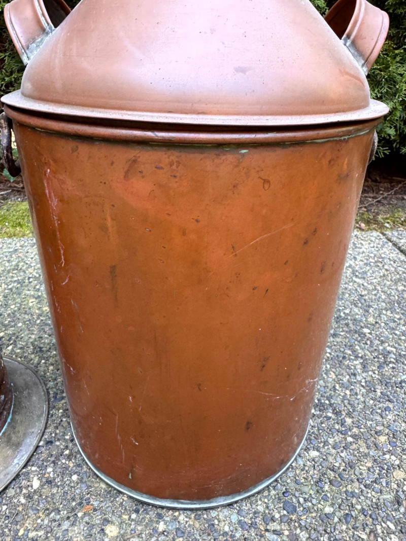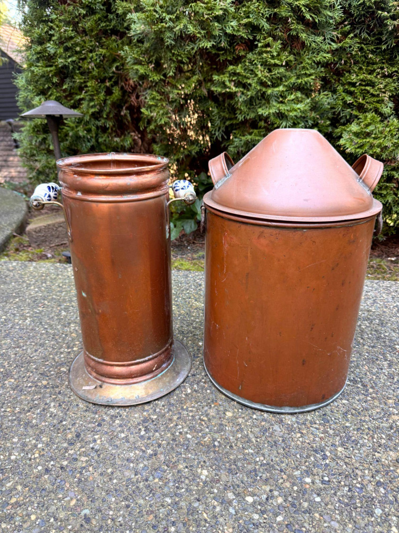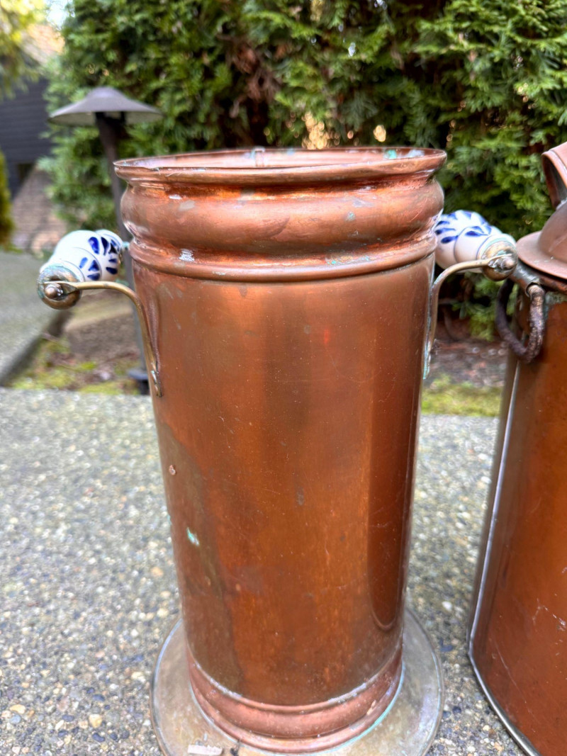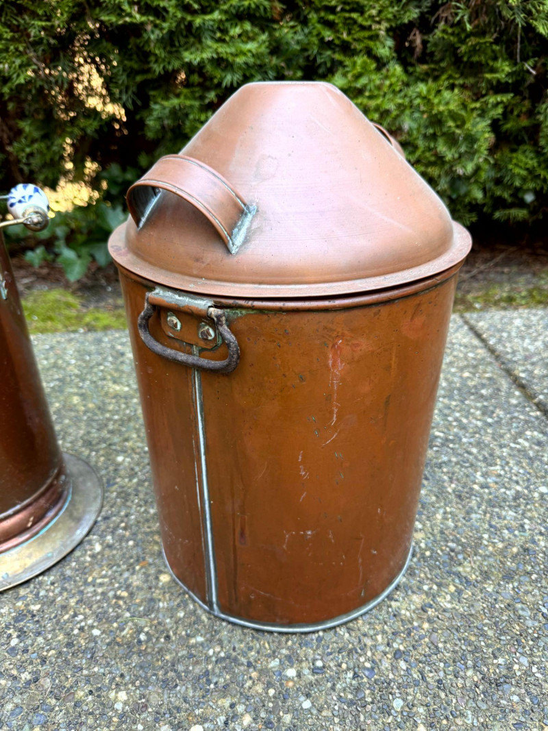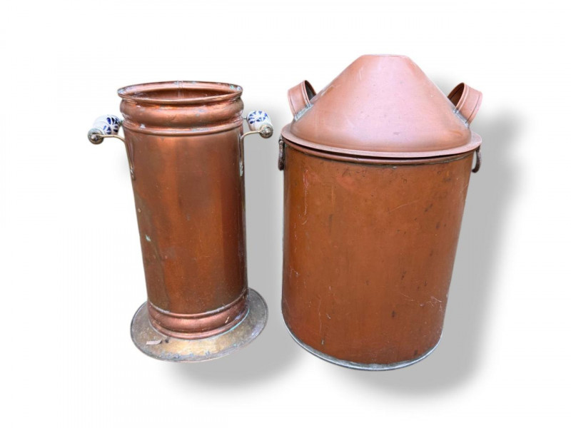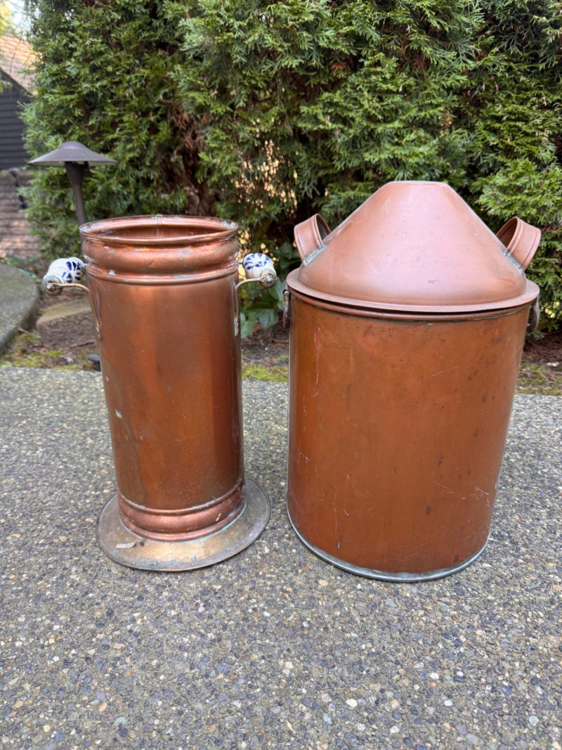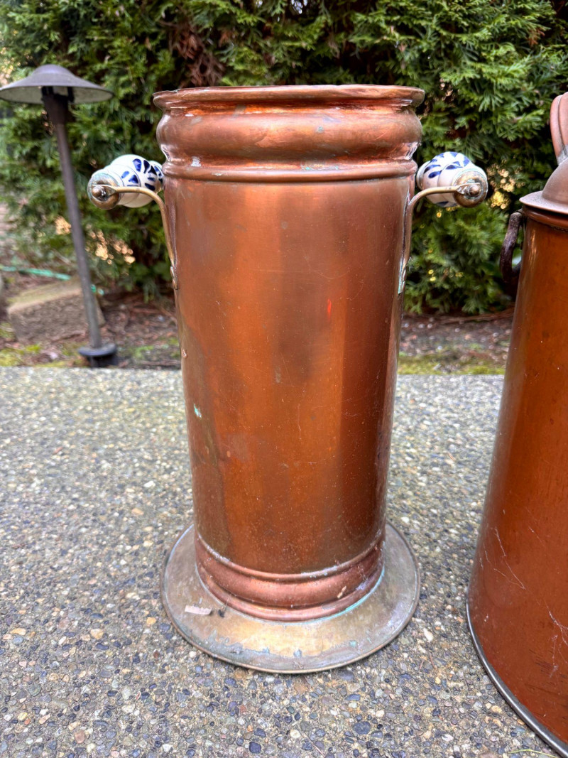 Copper Umbrella Stand & Lidded Bucket w/ Handles.