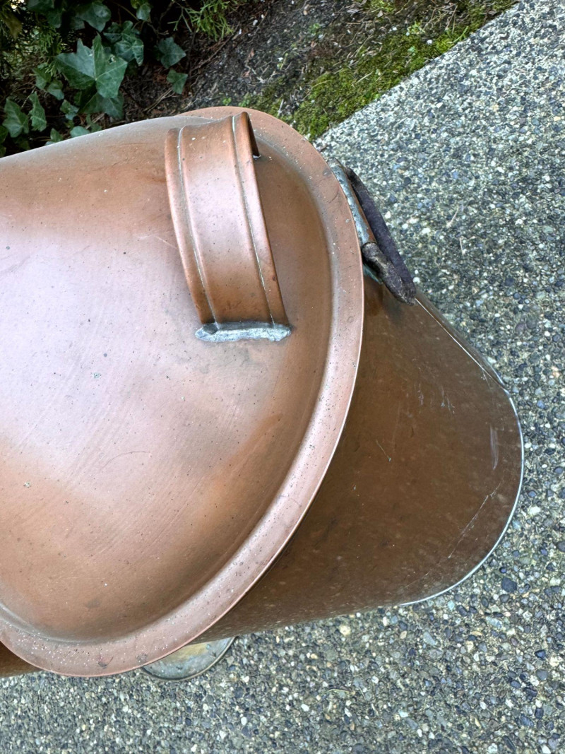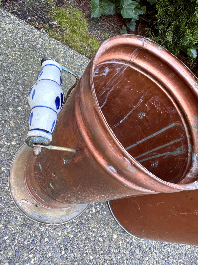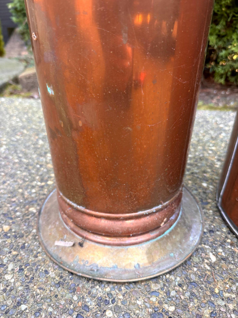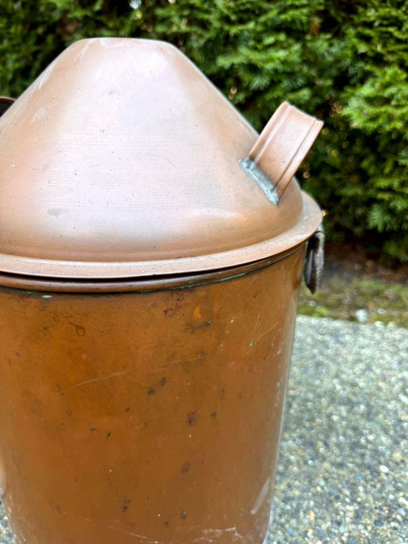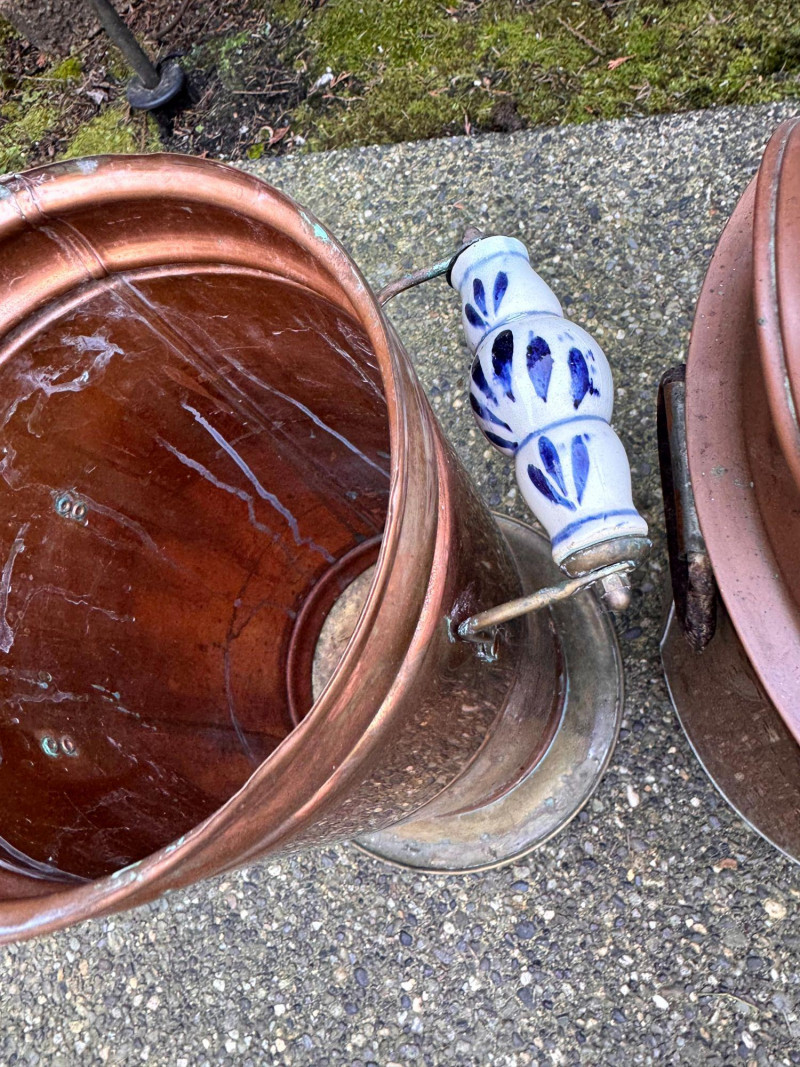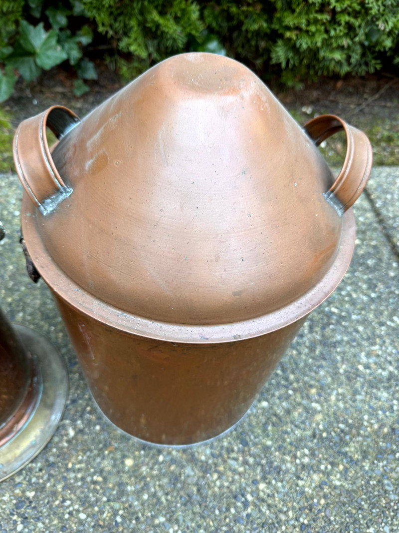 Copper Umbrella Stand & Lidded Bucket w/ Handles.