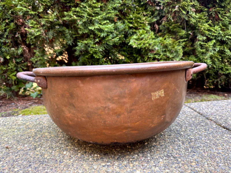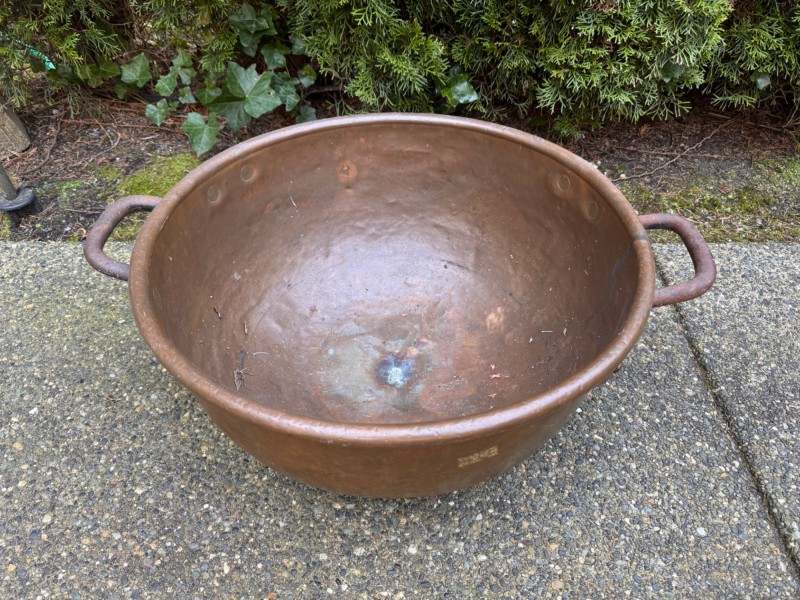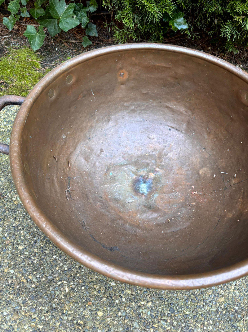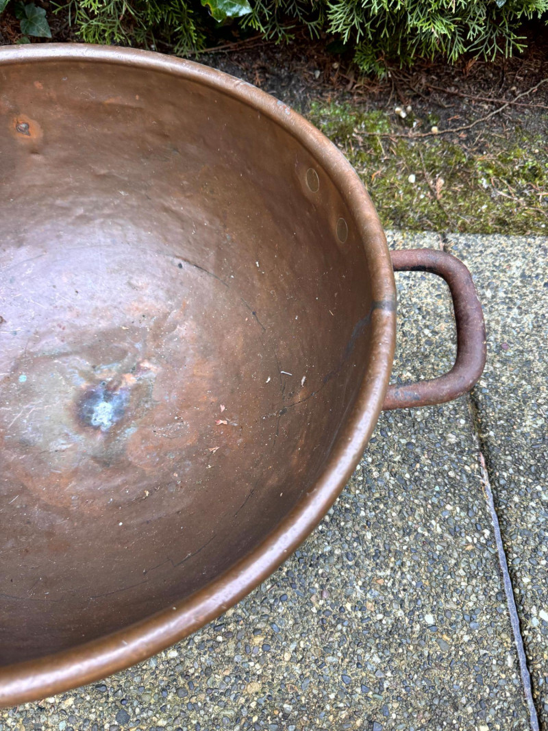 Oversized Copper Jam/Preserving Bowl w/ Iron Handles.